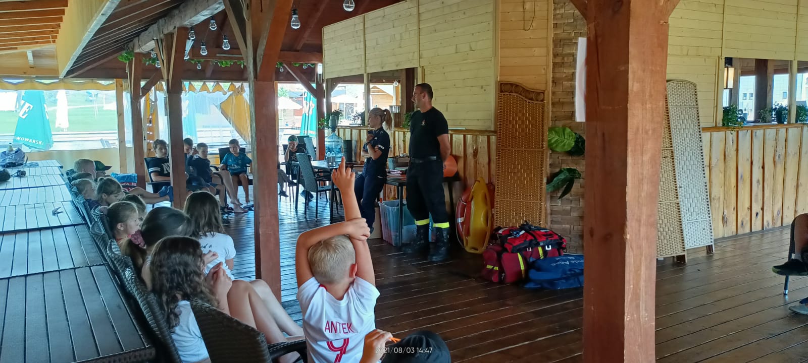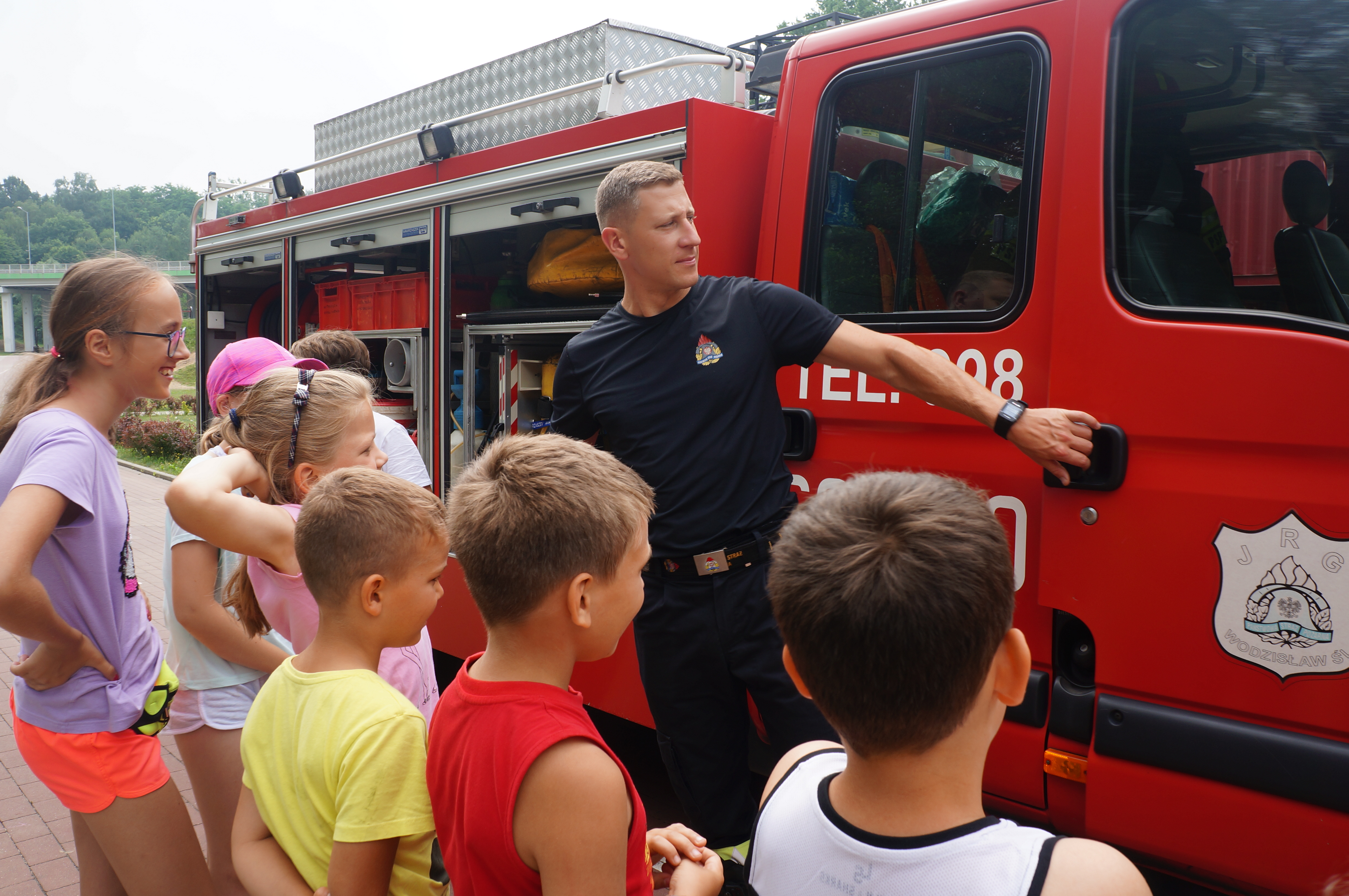 Od początku wakacji strażacy we współpracy z policjantami prowadzą prelekcje dla uczestników półkolonii na terenie powiatu wodzisławskiego. Spotkania edukacyjne dotyczą bezpieczeństwa podczas wakacji, w tym prawidłowego wzywania służb ratunkowych czy zasad bezpiecznego wypoczynku nad wodą. Podczas spotkań dzieci mogą zapoznać się ze sprzętem strażackim oraz nauczyć się poprawnych zachowań w przypadku zauważenia zagrożenia.