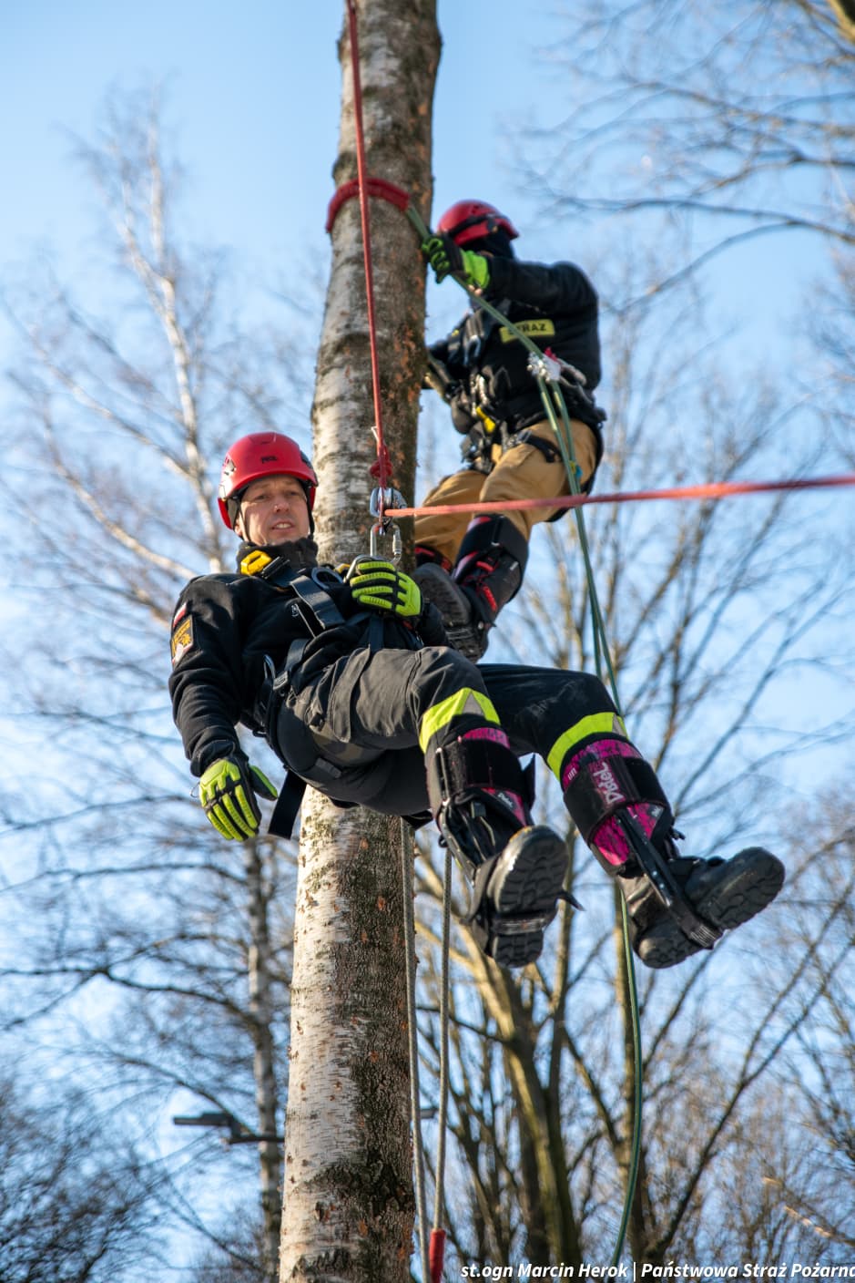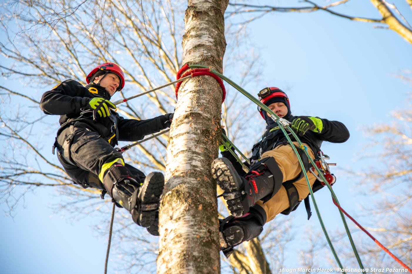 Istotnym elementem szkolenia była także wymiana doświadczeń z pracownikami lokalnej firmy Skywork, specjalizującej się na co dzień w arborystyce. Dzięki współpracy z praktykami strażacy mieli możliwość zapoznania się z profesjonalnymi rozwiązaniami stosowanymi podczas prac na wysokości oraz specyfiką działań prowadzonych w koronach drzew.