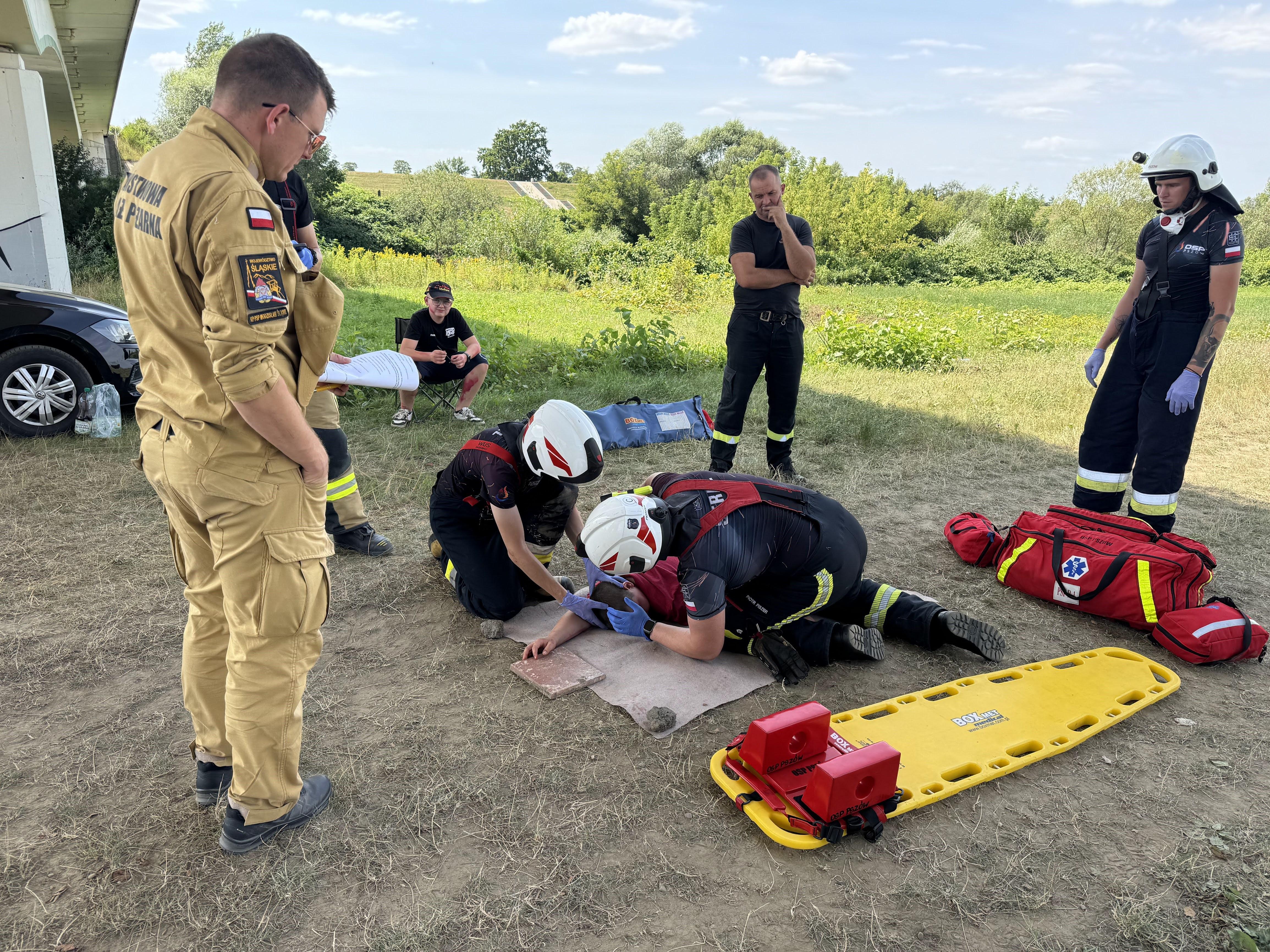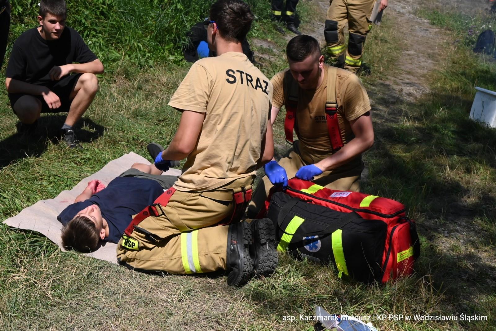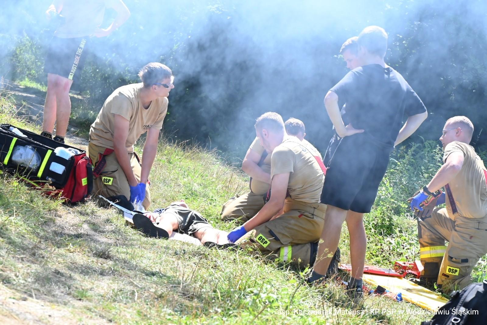 W środę 31 lipca 2024 roku na terenie polderu "Buków" odbyły się ćwiczenia Kompanii Odwodowej OSP nr 13 "Wodzisław", które miały na celu praktyczne przygotowanie strażaków Ochotniczych Straży Pożarnych do udzielania kwalifikowanej pierwszej pomocy w warunkach zbliżonych do rzeczywistych.