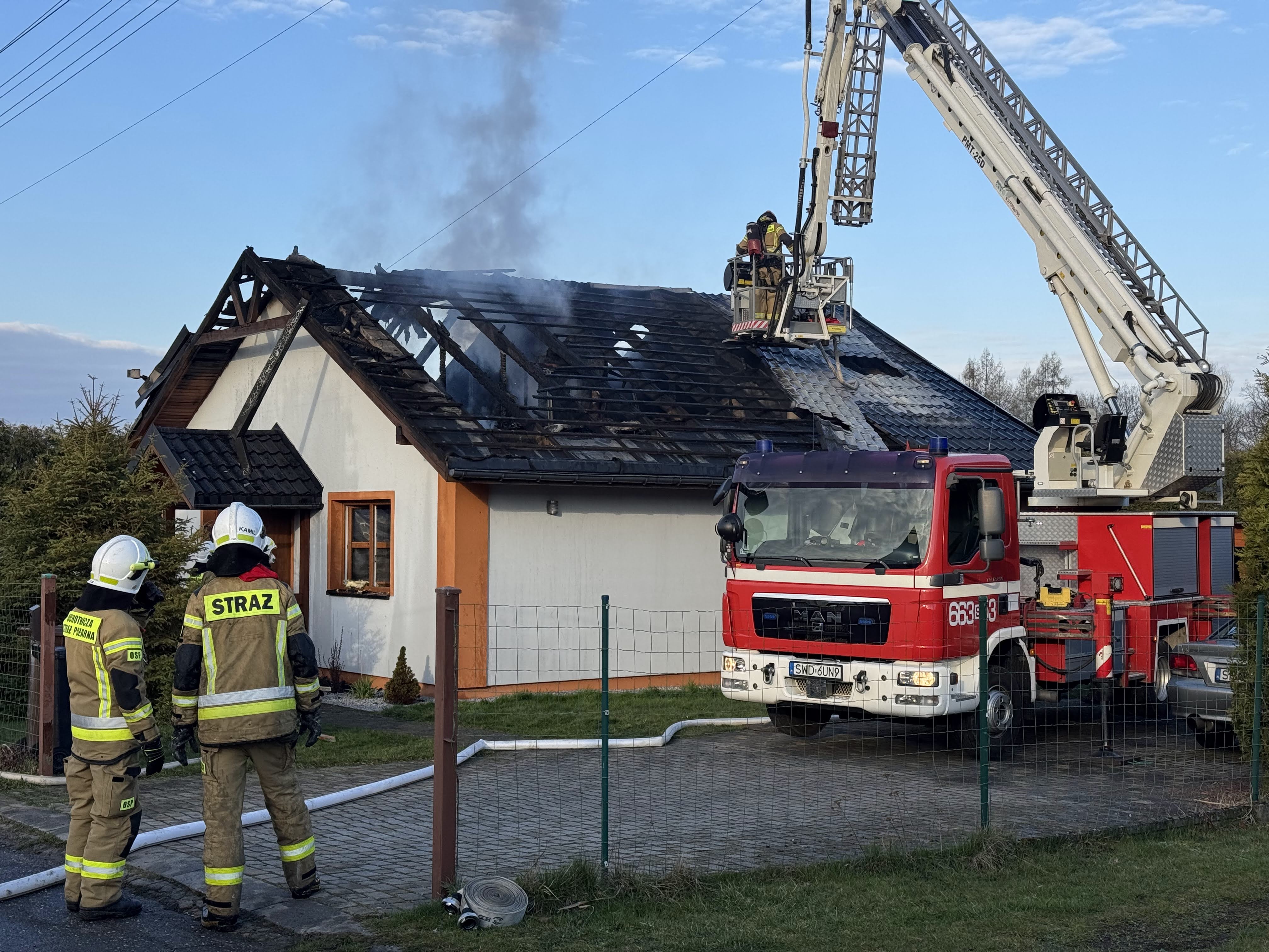 W sobotę, 5 kwietnia, w godzinach porannych doszło do pożaru budynku jednorodzinnego w miejscowości Skrzyszów. Po przybyciu na miejsce strażacy zastali w pełni rozwinięty pożar obejmujący poddasze oraz dach budynku. Na szczęście mieszkańcy zdążyli opuścić dom przed rozprzestrzenieniem się ognia, dzięki czemu nikt nie odniósł obrażeń. W działaniach gaśniczych uczestniczyło łącznie 14 zastępów Państwowej i Ochotniczej Straży Pożarnej.