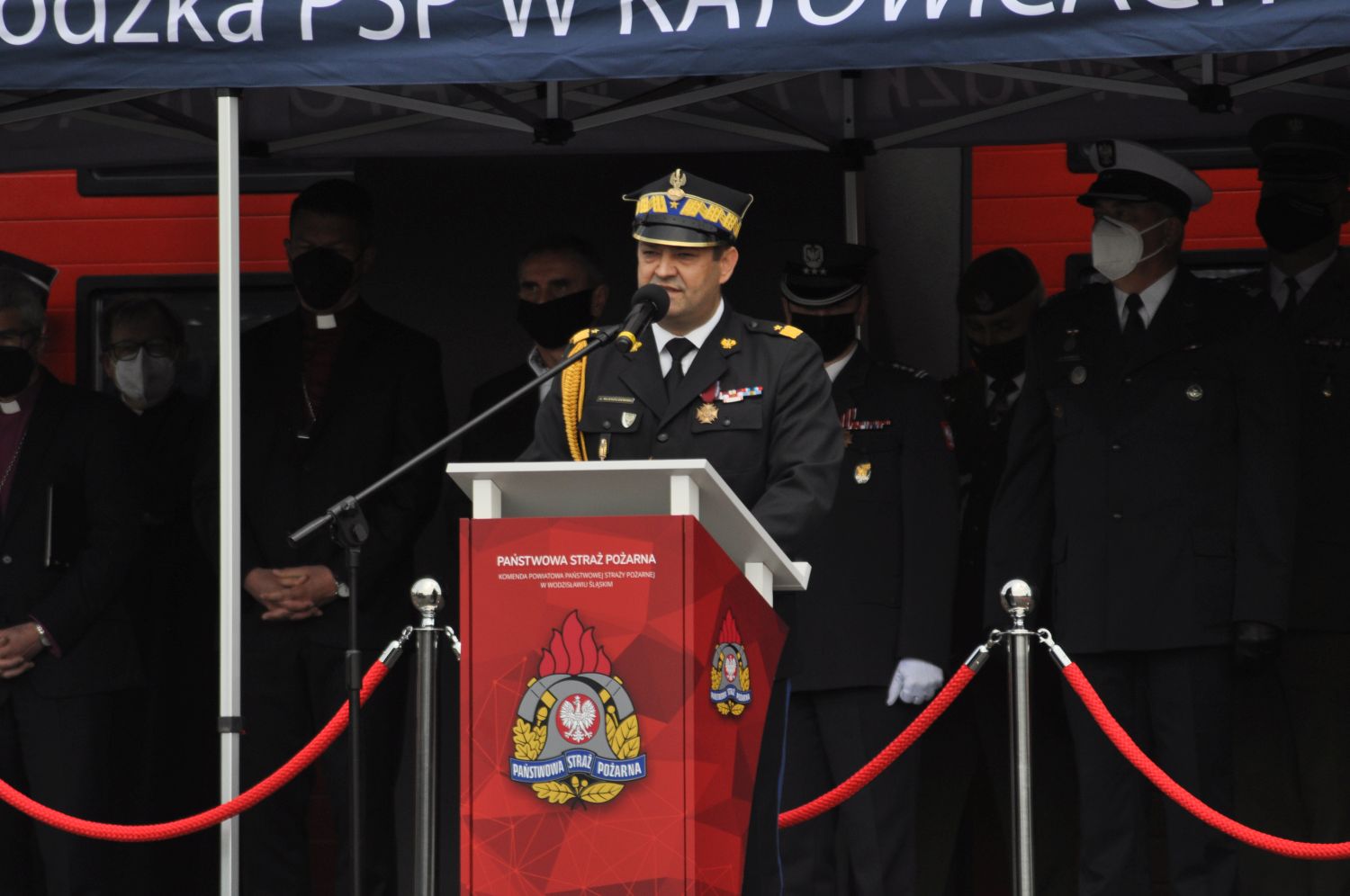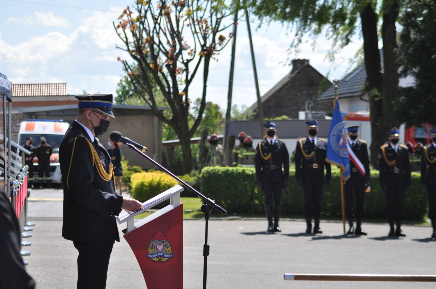 Uroczystość uświetnili: kompania honorowa Komendy Wojewódzkiej Państwowej Straży Pożarnej w Katowicach, poczet sztandarowy Oddziału Powiatowego Związku Ochotniczych Straży Pożarnych Powiatu Wodzisławskiego oraz Orkiestra Reprezentacyjna Komendy Wojewódzkiej Policji w Katowicach.