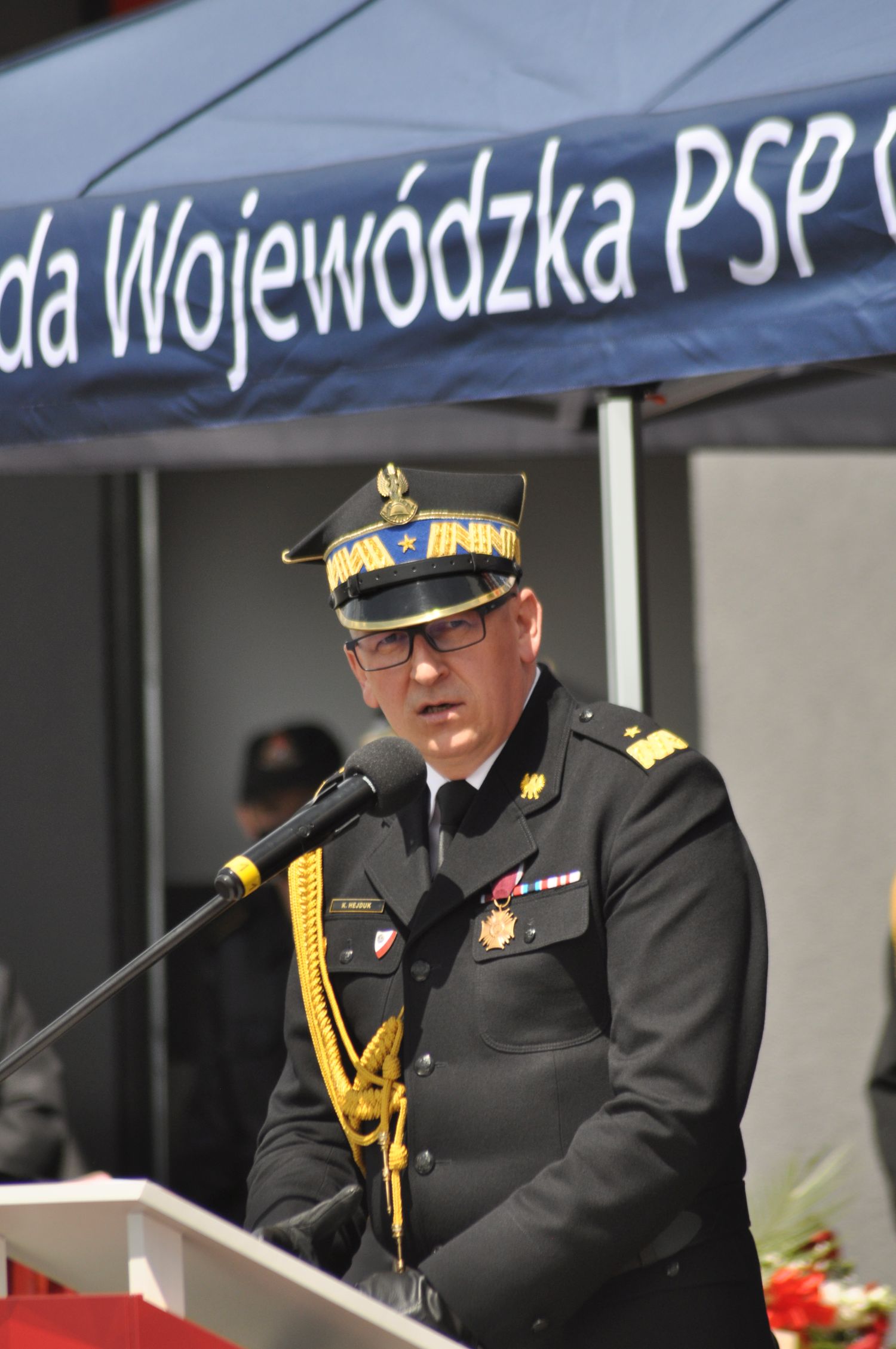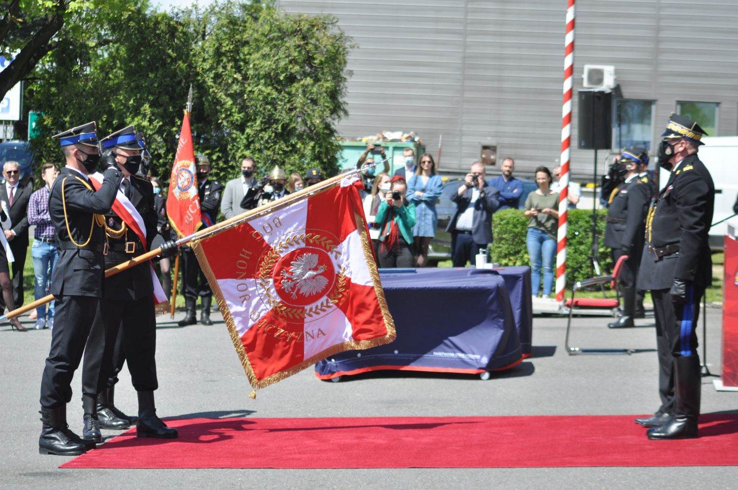 Uroczysty apel rozpoczął się złożeniem meldunku przez dowódcę uroczystości bryg.Jacka Filasa zastępcy komendanta głównego PSP nadbryg. Krzysztofowi Hejdukowi, który dokonał przeglądu i powitania pododdziałów. Po podniesieniu flagi państwowej na maszt i odśpiewaniu hymnu państwowego, minutą ciszy uczczono wszystkich poległych strażaków, a także członków ich rodzin, szczególnie ofiary koronawirusa. W dalszej części komendant powiatowy PSP mł.bryg.Marek Misiura jako gospodarz miejsca powitał przybyłych gości po czym nastąpiła ceremonia wręczenia sztandaru.
