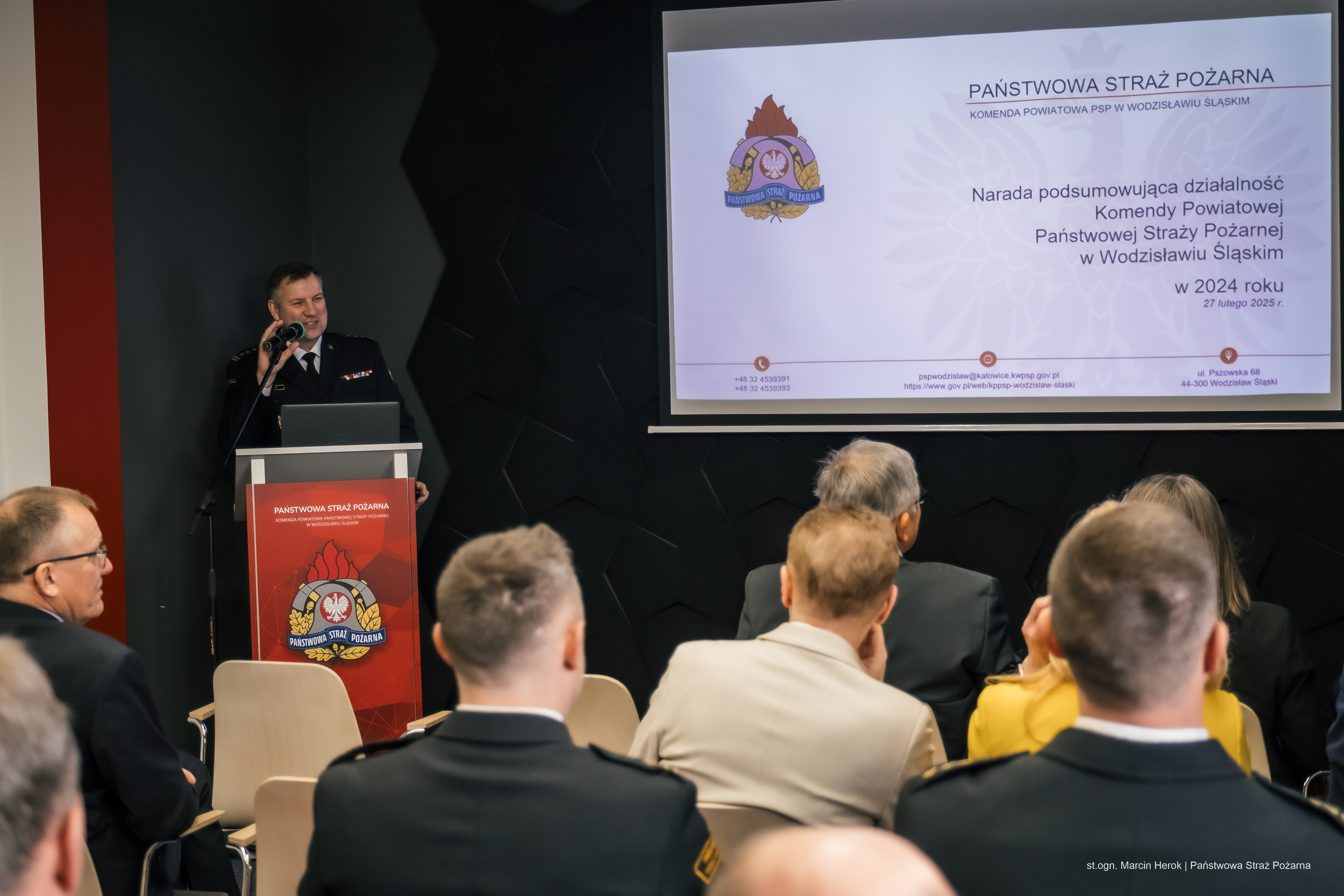 27 lutego 2025 roku w Komendzie Powiatowej Państwowej Straży Pożarnej w Wodzisławiu Śląskim odbyła się narada roczna podsumowująca działania wodzisławskich strażaków w roku 2024.