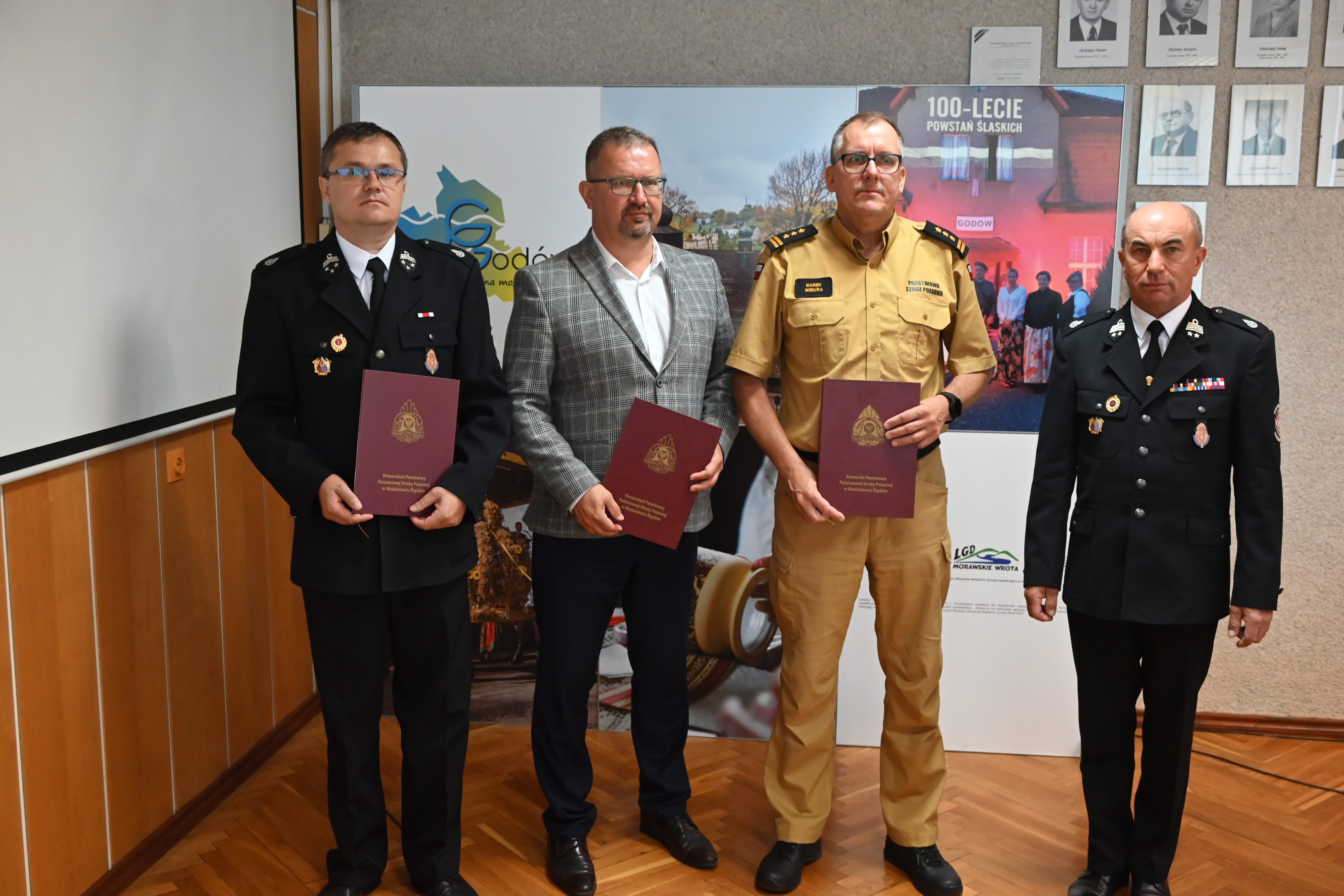 12 września 2023 roku w siedzibie Urzędu Gminy w Godowie Komendant Powiatowy PSP st. bryg. Marek Misiura, Wójt gminy Godów Mariusz Adamczyk oraz Prezes OSP Godów Krzysztof Krzyżok podpisali porozumienie w sprawie ustalenia obszaru chronionego dla jednostki Ochotniczej Straży Pożarnej w Godowie.