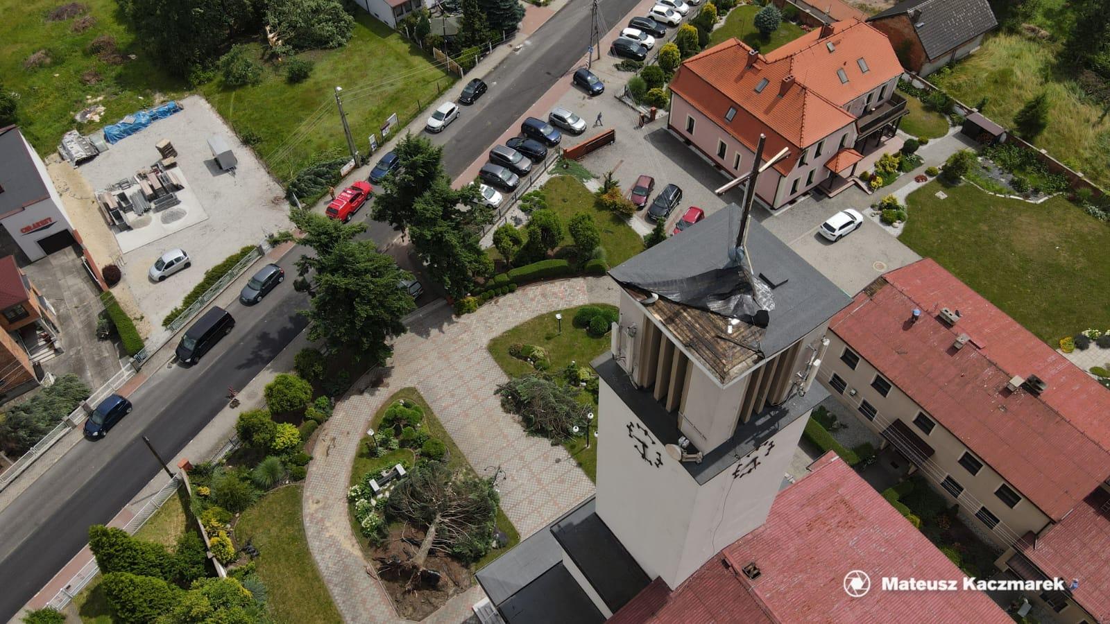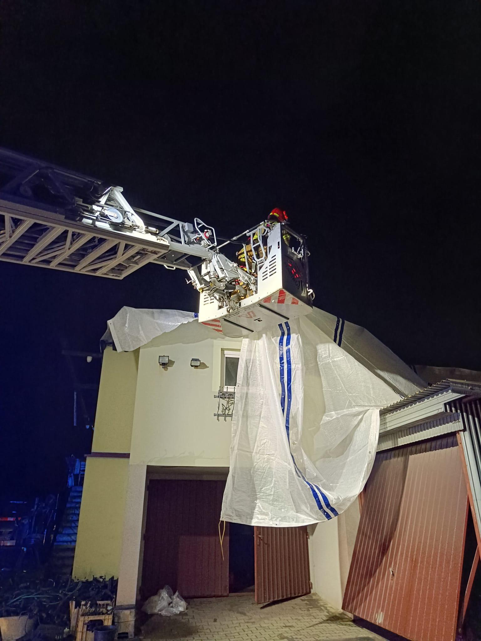 Silny wiatr oraz towarzyszące mu opady deszczu spowodowały uszkodzenia w postaci: