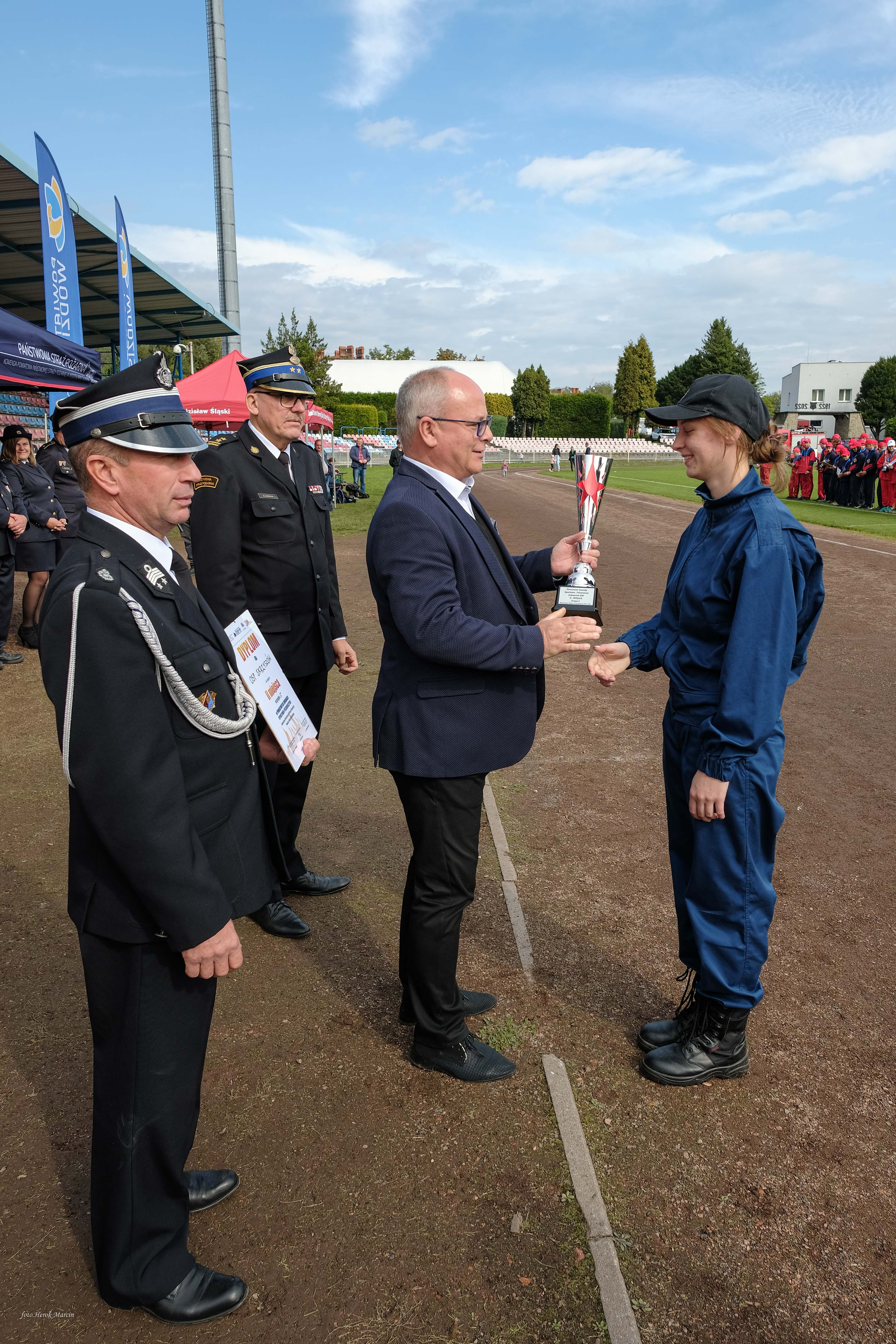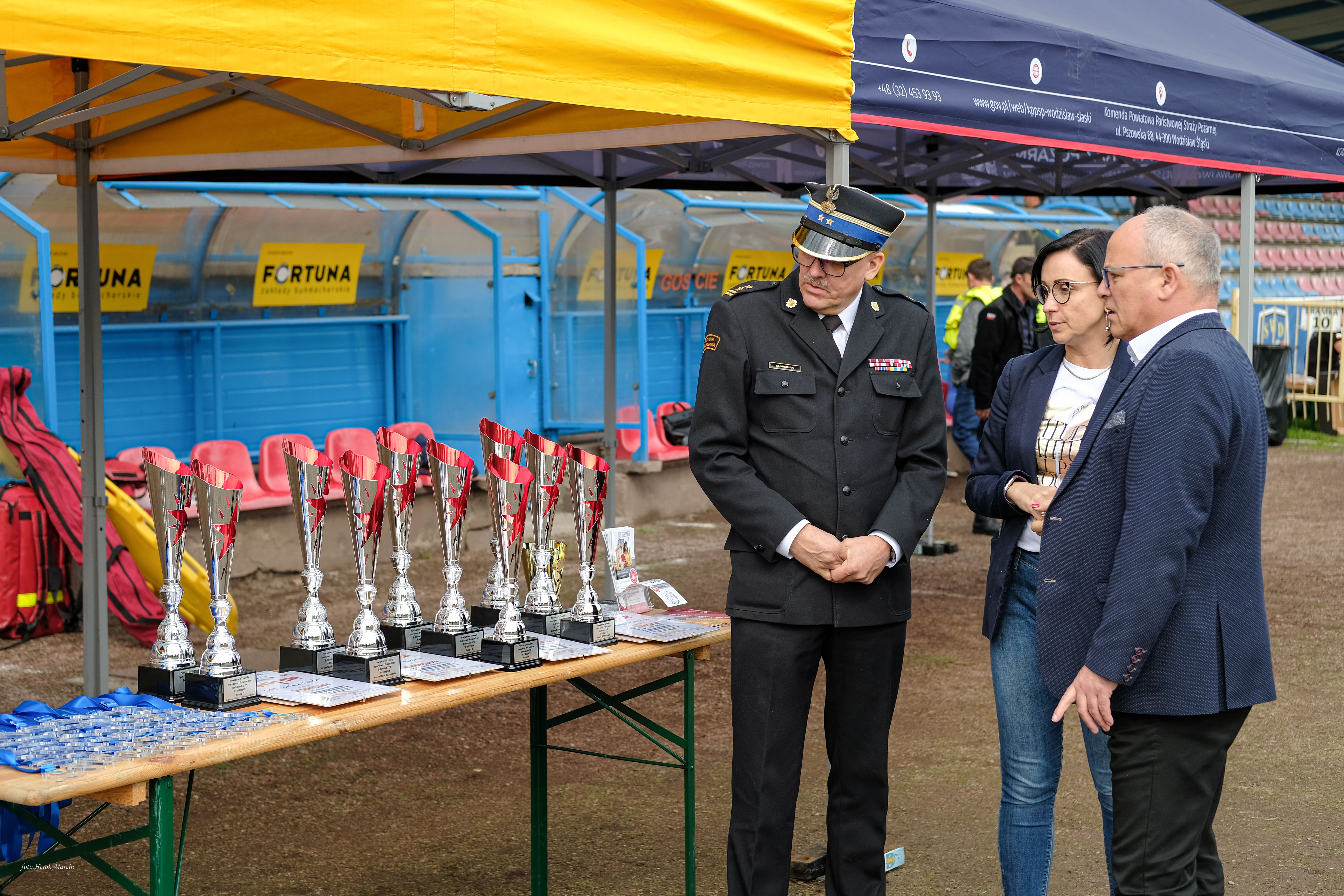 Na zakończenie zawodów odbyła się zbiórka, w trakcie której dokonano wręczenia pucharów, dyplomów oraz nagród. Uroczystego wręczenia dokonali bryg. Marek Misiura – Komendant Powiatowy PSP w Wodzisławiu Śląskim, Pan Leszek Bizoń – Starosta Wodzisławski, druh Zbigniew Radecki – Prezes Zarządu Oddziału Powiatowego Związku Ochotniczych Straży Pożarnych RP w Wodzisławiu Śląskim oraz Pani Justyna Matyjak - Prodziekan Wydziału Nauk Społecznych w Wyższej Szkole Bezpieczeństwa w Jastrzębiu-Zdroju.