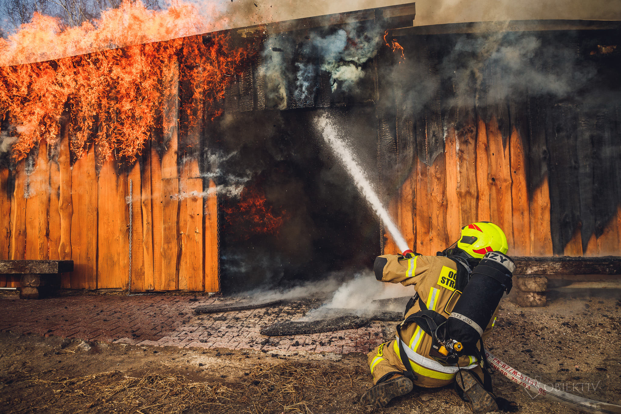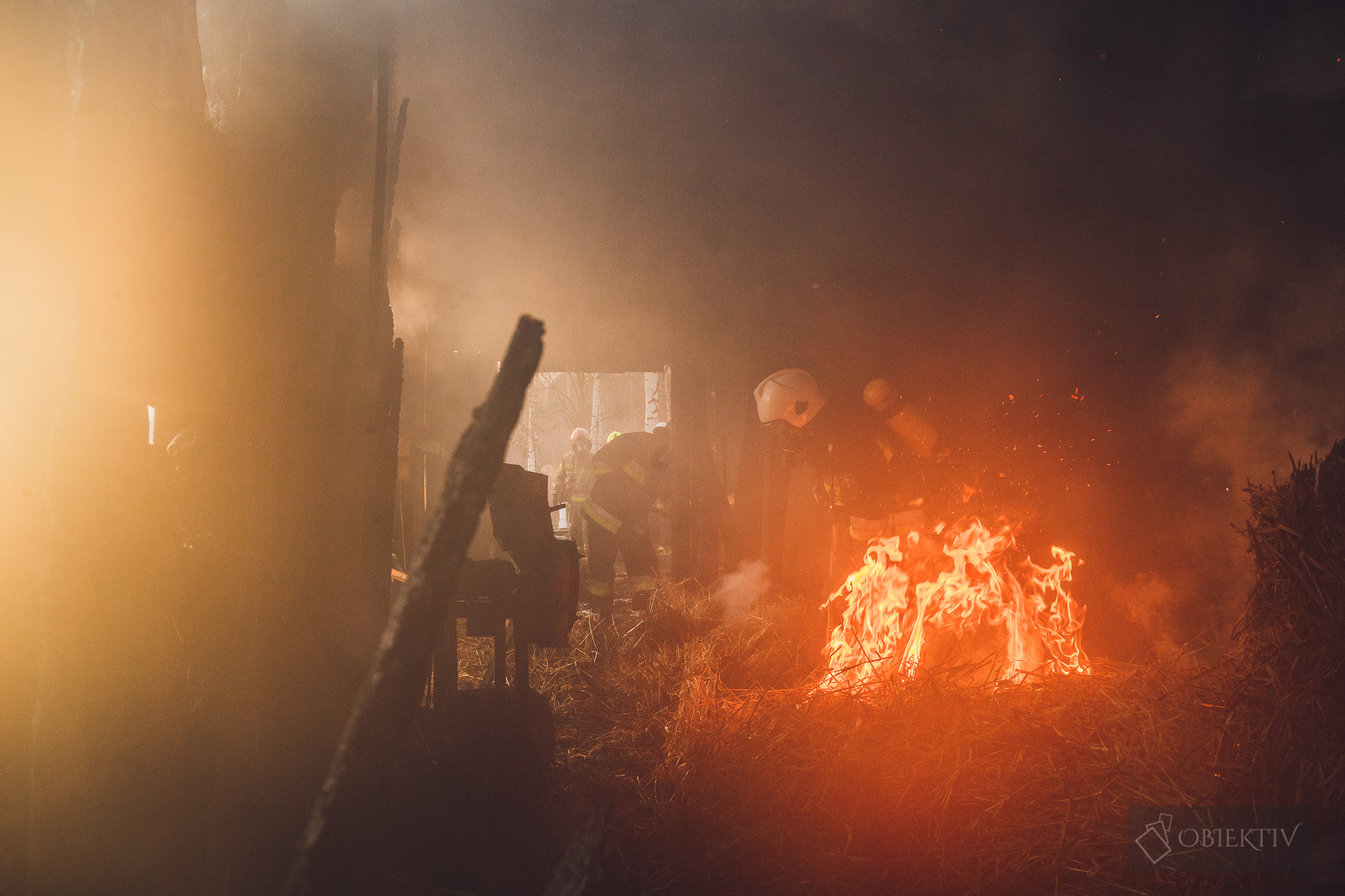Pożar zgłoszony został o godzinie 14.59. Kiedy na miejsce dotarły pierwsze zastępy straży pożarnej, niemal cały budynek był już w ogniu. Był to obiekt wykonany w głównej mierze z drewna, zarówno ściany zewnętrzne jak i działowe. Budynek wykorzystywany był jako stajnia dla koni, posiadał wydzieloną częścią magazynową i socjalną. Na szczęście w czasie powstania pożaru zwierzęta były na zewnątrz, na wybiegu. W budynku w pożarze znajdowały się dwie butle gazowe propan-butan oraz jedna butla na dwutlenek węgla. Zostały one w trakcie działań wyniesione na zewnątrz. Podano pięć prądów gaśniczych. W działania zaangażowanych było 15 pojazdów pożarniczych w tym 11 gaśniczych. W akcji udział brało 56 strażaków. Działania na miejscu zdarzenia trwały łącznie ponad dwie godziny.
