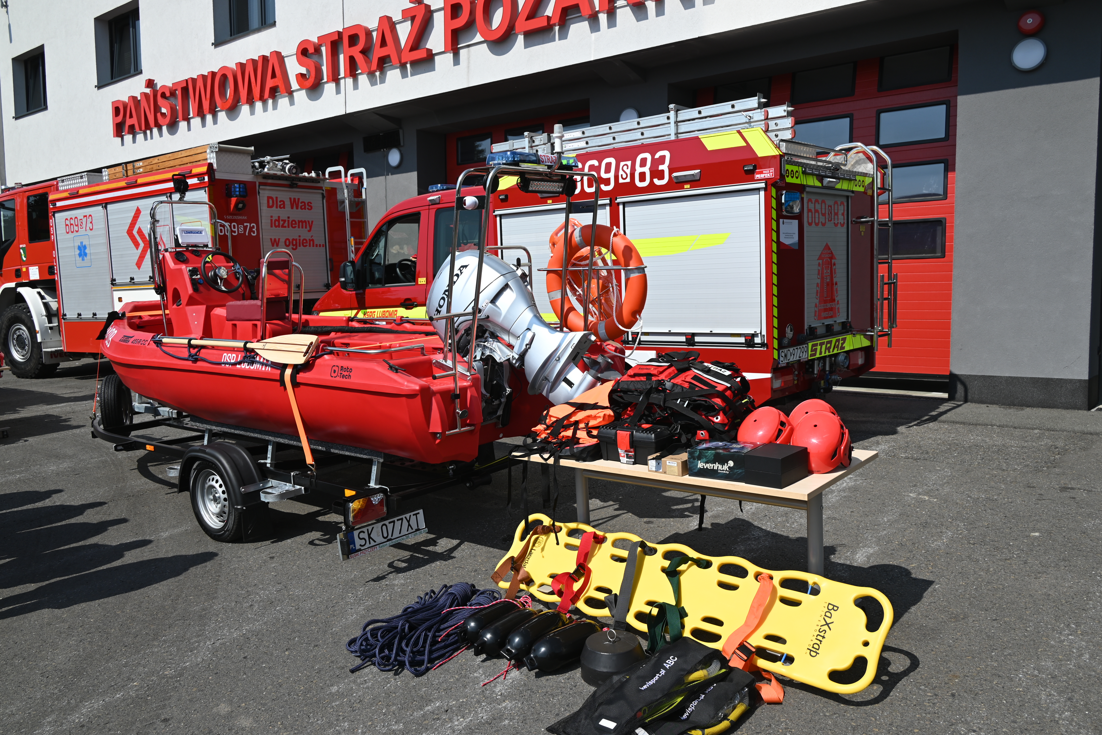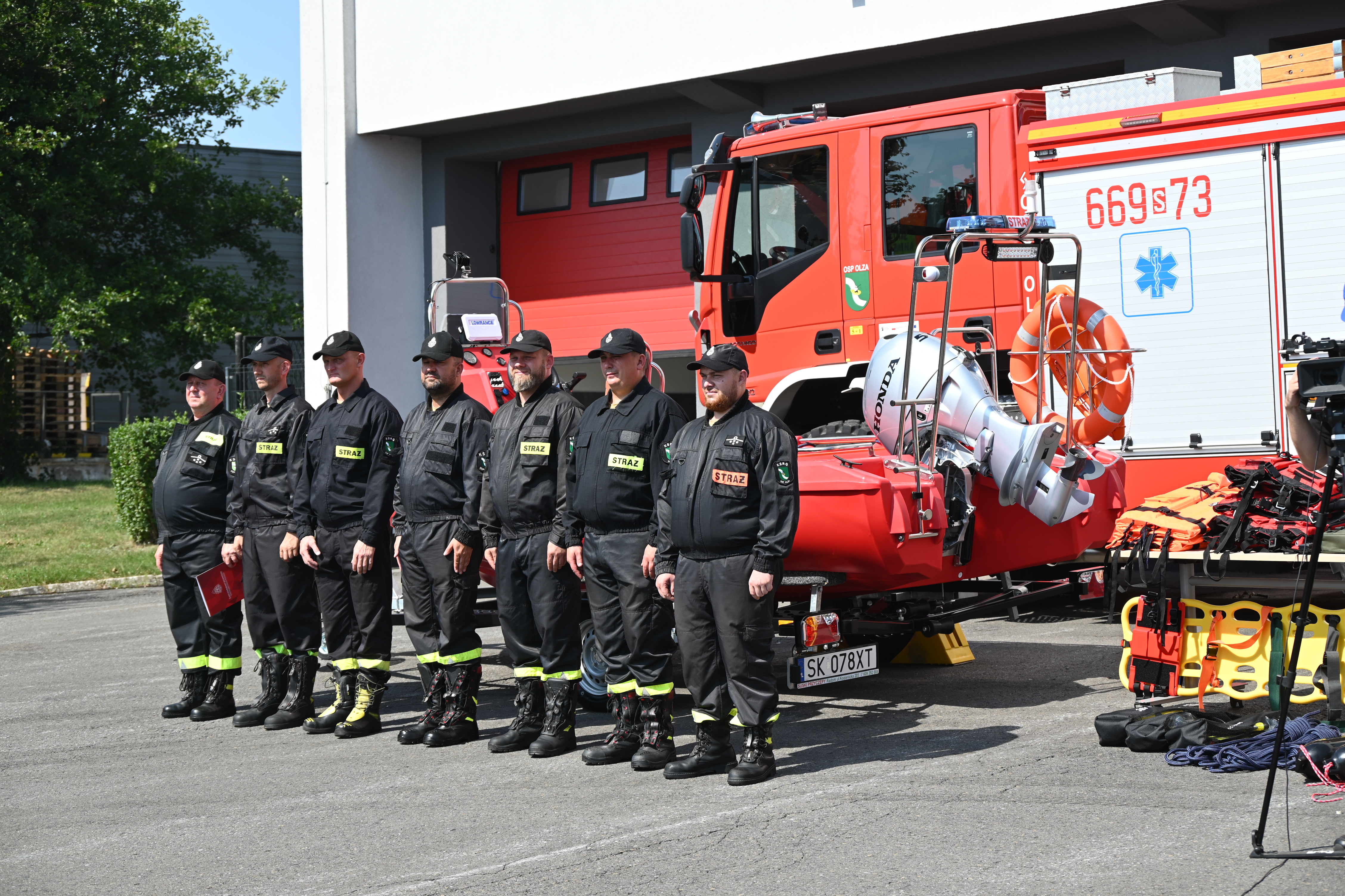 Dnia 22 sierpnia w siedzibie Komendy Powiatowej Państwowej Straży Pożarnej w Wodzisławiu Śląskim odbyło się uroczyste przekazanie łodzi ratowniczych wraz z wyposażeniem dla jednostek OSP Olza oraz OSP Lubomia.