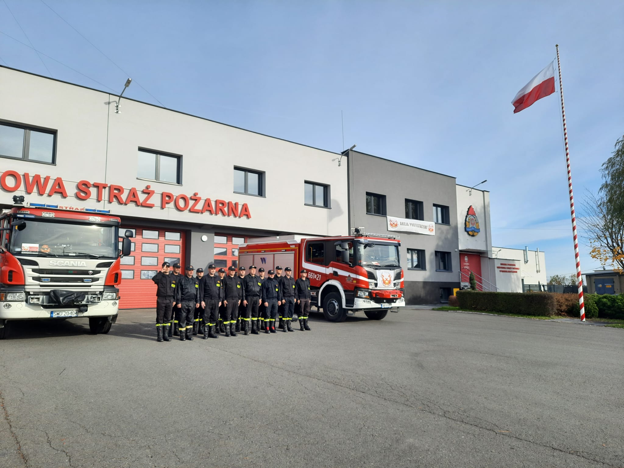 Z okazji obchodów Narodowego Święta Niepodległości przed budynkiem Komendy Powiatowej Państwowej Straży Pożarnej w Wodzisławiu Śląskim strażacy z Jednostki Ratowniczo-Gaśniczej w Rydułtowach i Wodzisławiu Śląskim wzięli udział w zbiórce, w trakcie której dokonano uroczystego podniesienia flagi państwowej oraz w ramach ogólnopolskiej akcji "Niepodległa do Hymnu" odśpiewano hymn państwowy. W ten sposób strażacy powiatu wodzisławskiego upamiętnili 104 rocznicę odzyskania przez Polskę niepodległości.