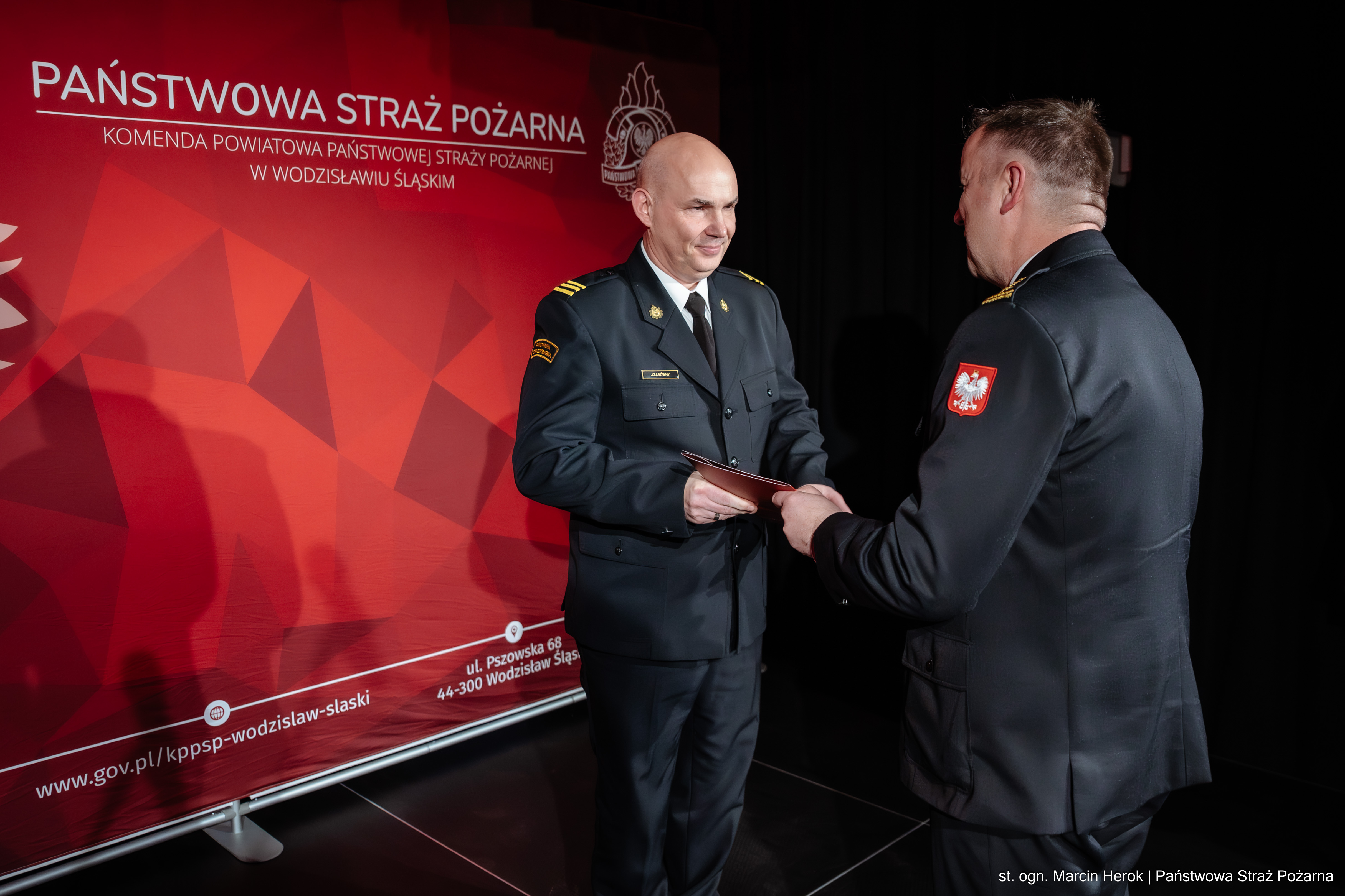 Podczas uroczystości zaprezentowano historię pożarnictwa na ziemi wodzisławskiej oraz rozwój Krajowego Systemu Ratowniczo-Gaśniczego na przestrzeni ostatnich trzech dekad. W trakcie uroczystości wręczono awanse służbowe strażakom PSP oraz pamiątkowe dyplomy dla przedstawicieli jednostek OSP włączonych do KSRG. Uhonorowano także zasłużone osoby szczególnie zaangażowane w rozwój systemu ratowniczego w powiecie.