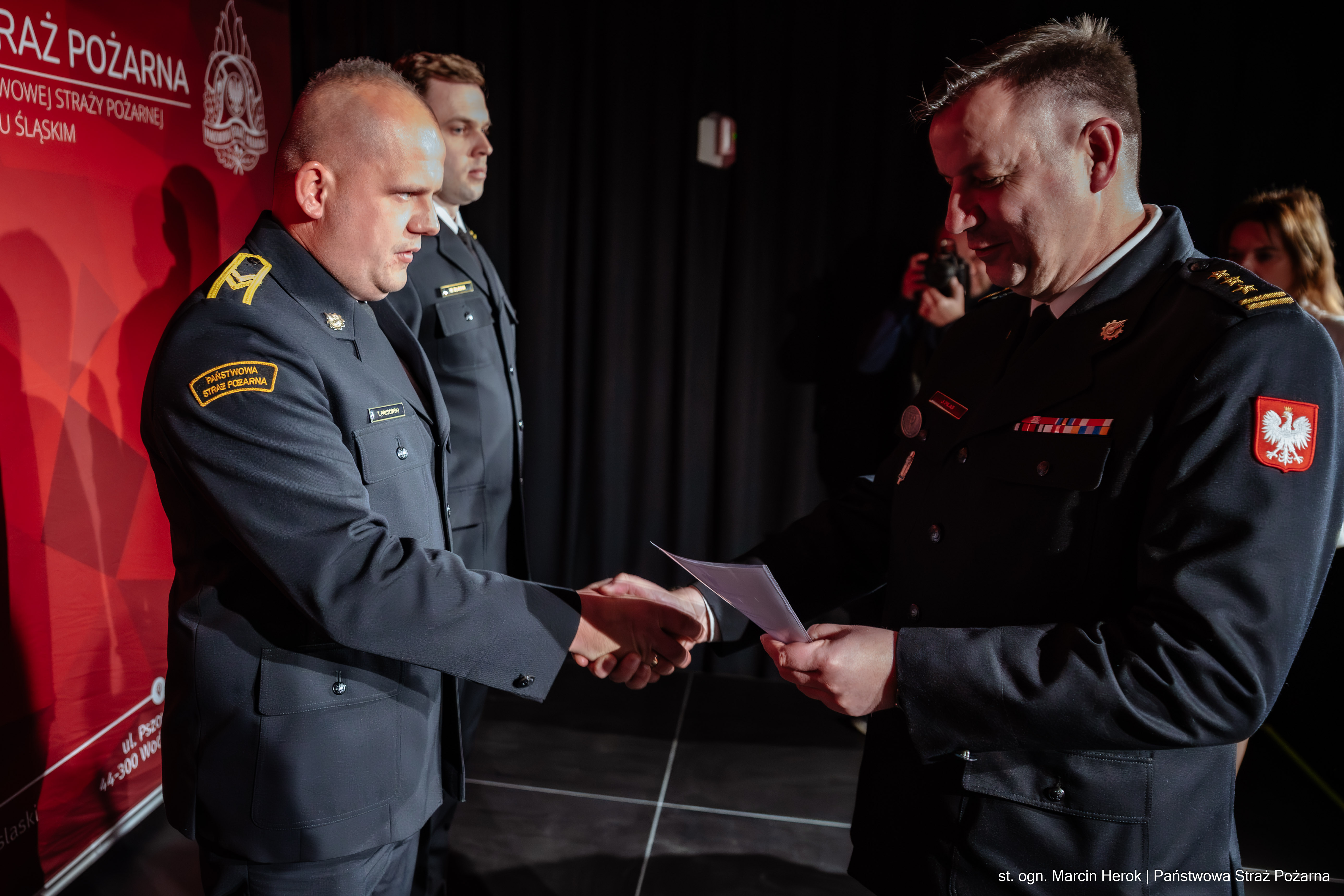 Szczególne miejsce w programie zajęło podziękowanie strażakowi, który uratował życie poszkodowanemu w wypadku na autostradzie, oraz funkcjonariuszowi, który udzielił pomocy ofiarom zdarzenia drogowego w Raciborzu. Obaj zostali wyróżnieni za wzorową postawę i odwagę. Przekazano również nagrody uznaniowe Śląskiego Komendanta Wojewódzkiego dla strażaków wyróżniających się w wykonywaniu obowiązków służbowych. Uroczystość uświetniły występy artystyczne młodych wykonawców, którym wręczono pamiątkowe upominki.