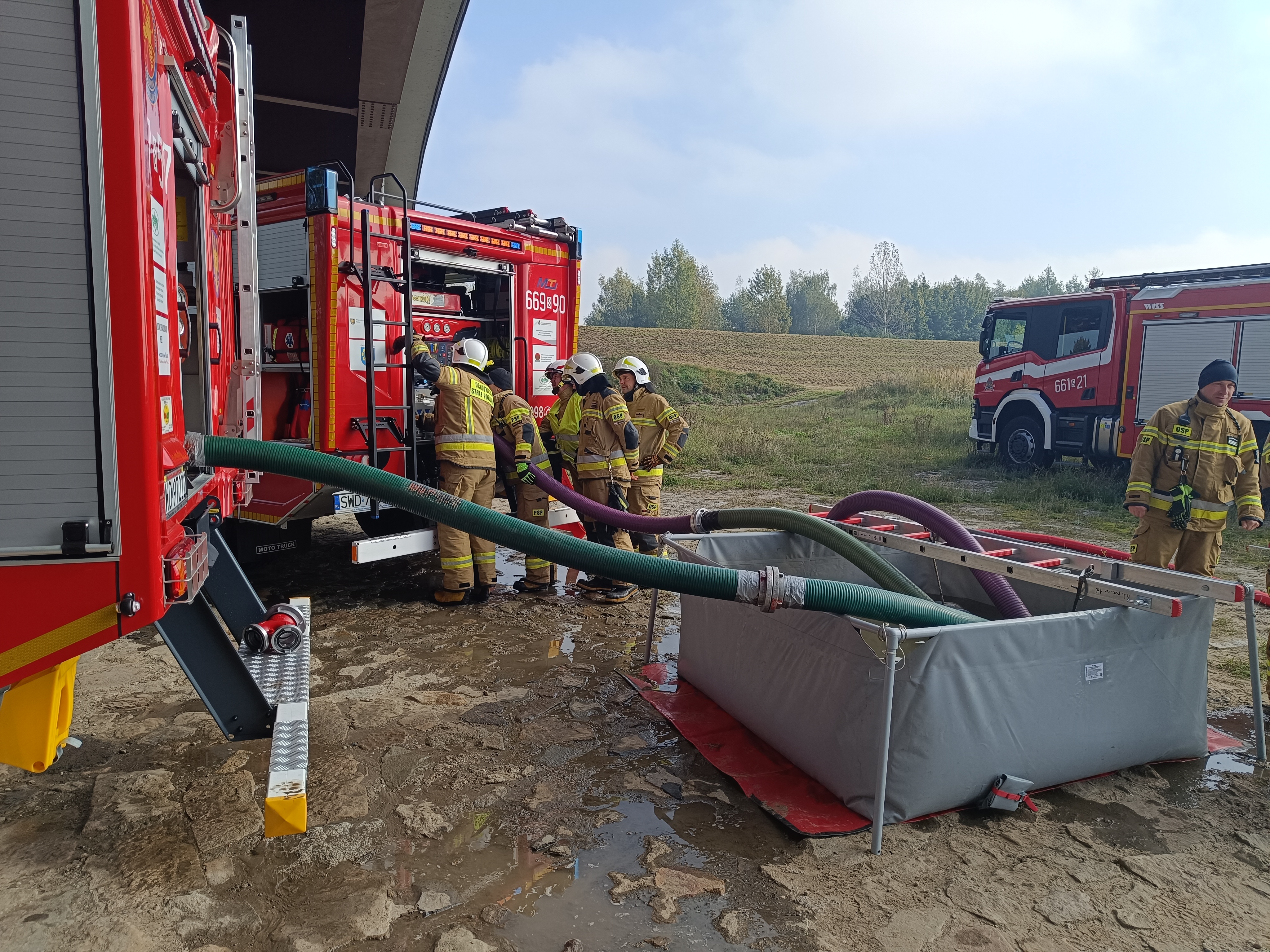 W dniach 4,11,18 i 25 października 2025 roku zostały przeprowadzone warsztaty doskonalące dla wszystkich jednostek OSP powiatu wodzisławskiego w zakresie zaopatrzenia wodnego i metod dostarczania wody na duże odległości. Celem ćwiczeń było wskazanie prawidłowych praktyk w oparciu optymalne wykorzystanie sprzętu, jaki znajduje się na wyposażeniu jednostek OSP. Poza standardowym wyposażeniem samochodów bojowych, jednostki dysponują również mobilnymi zestawami w skład których wchodzą zbiorniki dużej pojemności, pompy wysokiej wydajności oraz zapas węży tłocznych, umożliwiających transport wody.