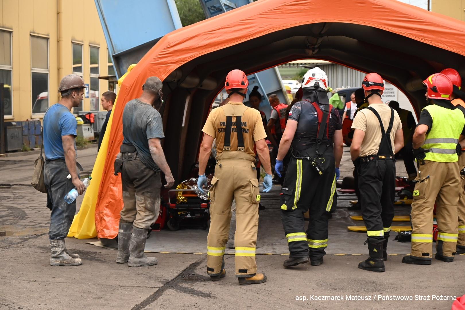 W chwili obecnej akcja ratownicza jest kontynuowana przez służby ratownictwa górniczego.
