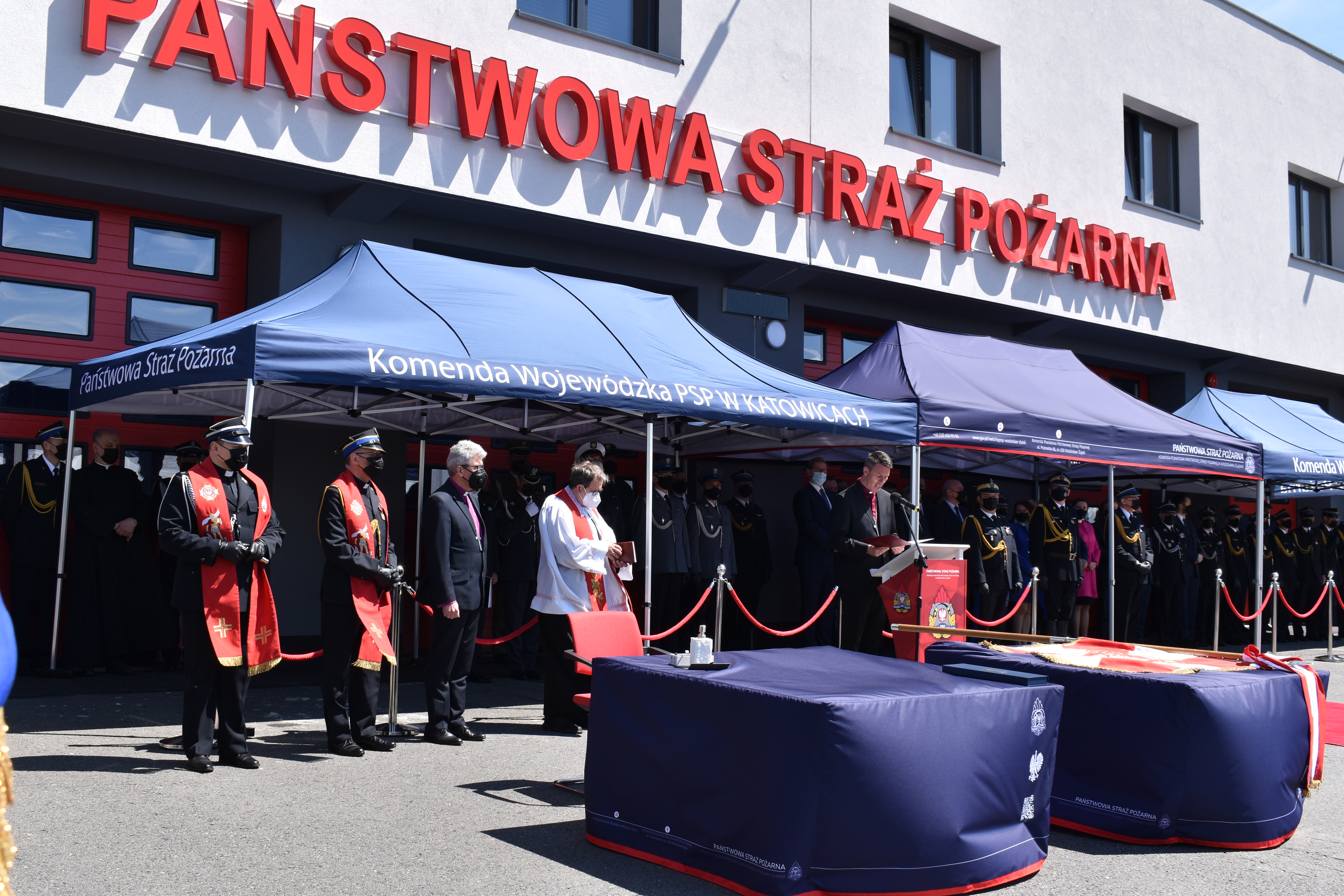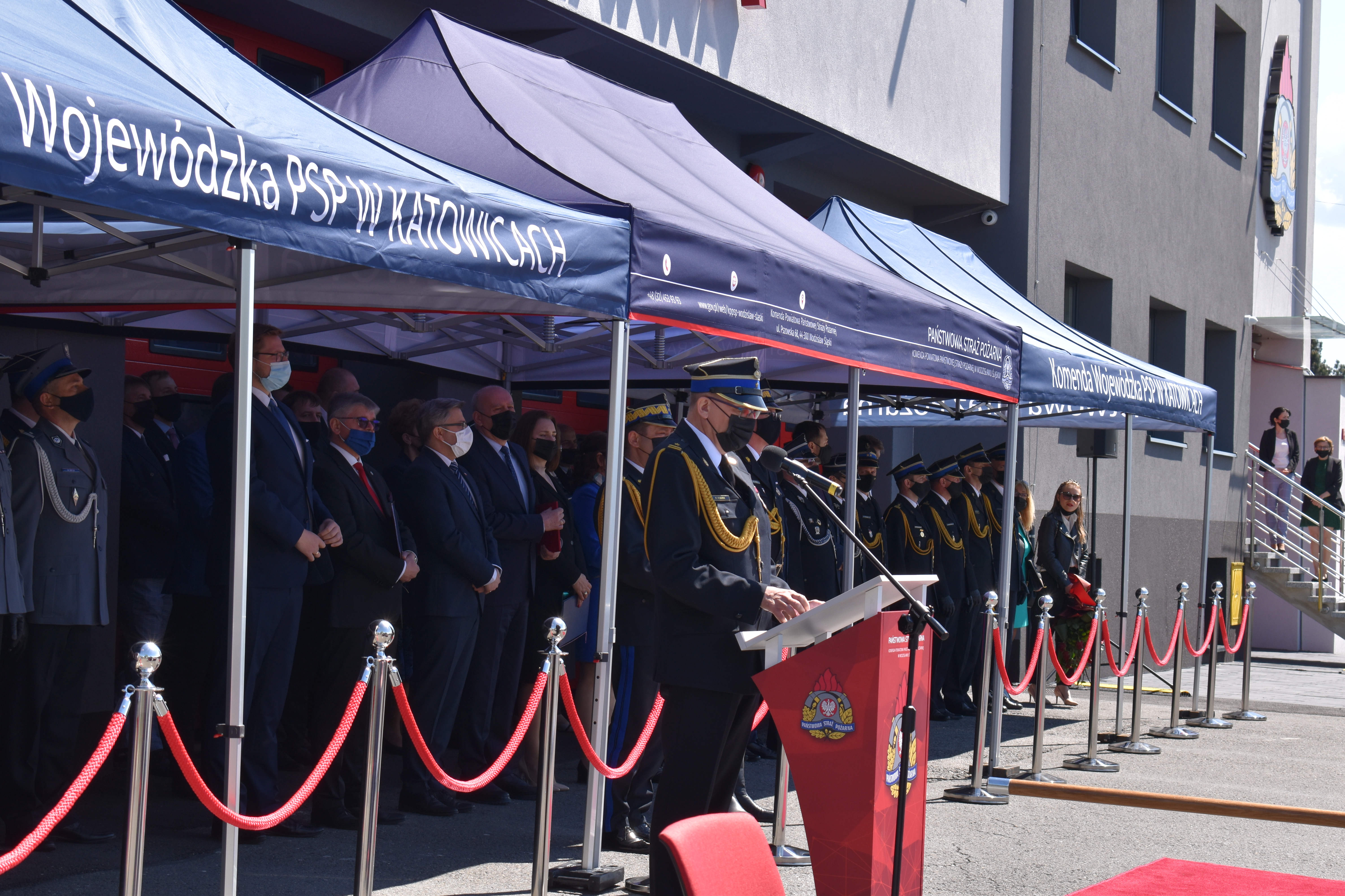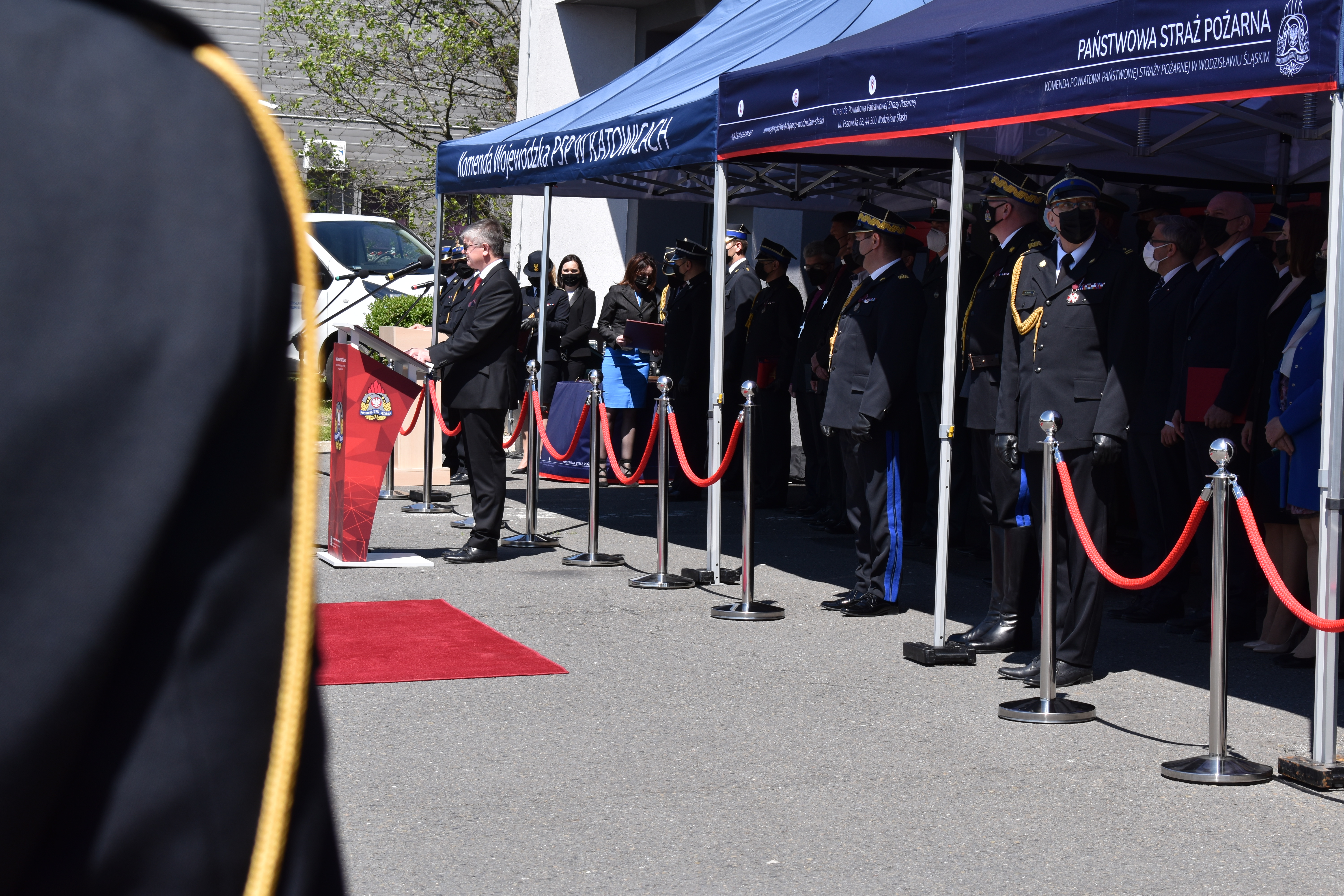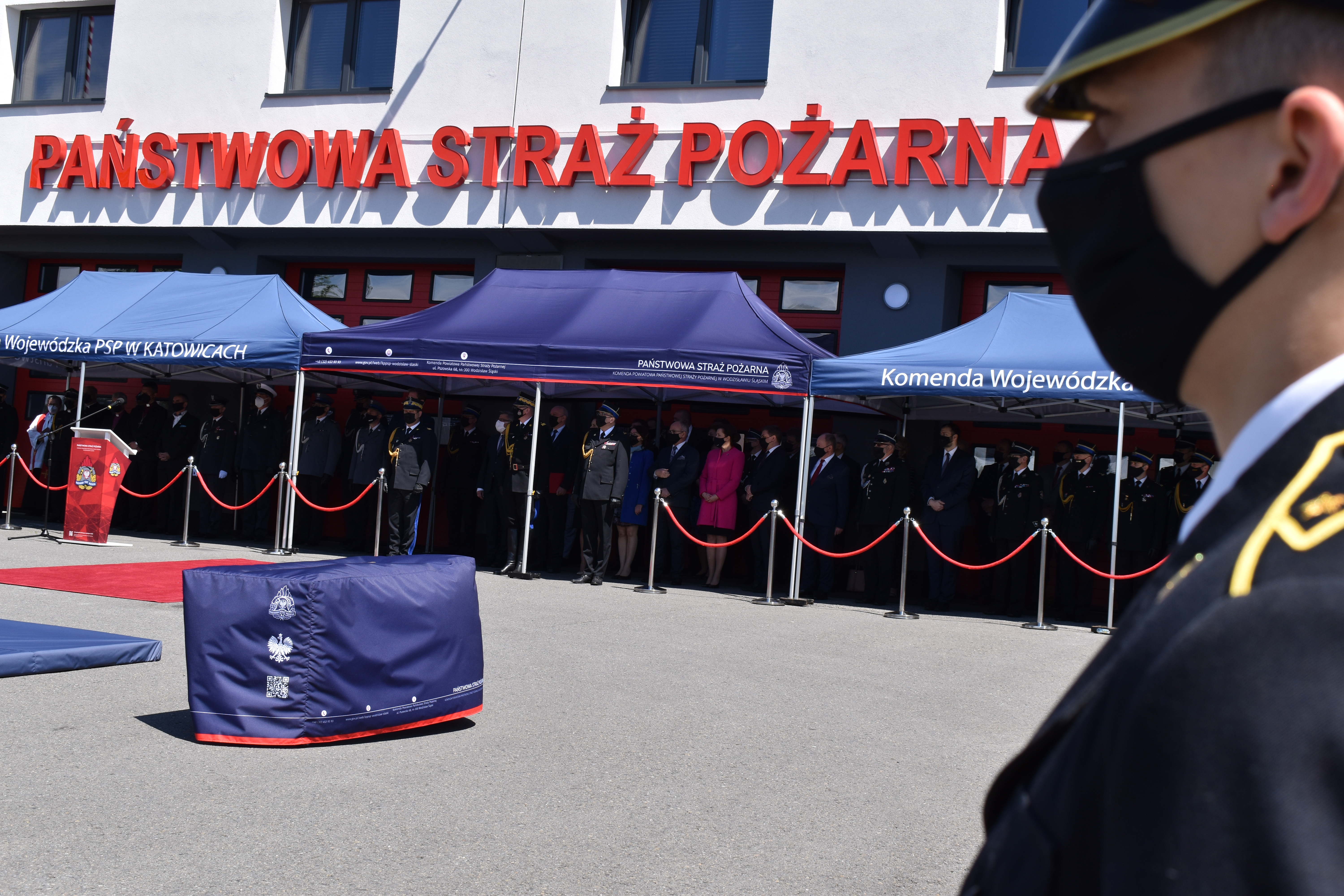 21 maja br. na terenie Komendy Powiatowej Państwowej Straży Pożarnej w Wodzisławiu Śląskim odbyły się Wojewódzkie Obchody Dnia Strażaka, połączone z uroczystym wręczeniem sztandaru Komendzie PSP w Wodzisławiu Śląskim oraz promocją na pierwszy stopień oficerski. W uroczystości wzięli udział: Michał Woś - sekretarz stanu w Ministerstwie Srpawiedliwości, Posłowie na Sejm Rzeczypospolitej Polskiej Pan Adam Gawęda, Pani Teresa Glenc, Pan Krzysztof Gadowski, Pani Senator Ewa Gawęda, Jarosław Wieczorek - wojewoda ślaski, Zastępca Komendanta Głównego PSP nadbryg. Krysztof Hejduk, Śląski Komendant Wojewódzki PSP nadbryg. Jacek Kleszczewski oraz pozostali zaproszeni goście. Ceremonia wręczenia sztandaru poprzedziła wręczenie dwóm naszym funkcjonariuszom Dyplomów Komendanta Głównego PSP za wzorową postawę i wysokie osiągnięcia w realizacji zadań służbowych, jak również promowanie na pierwszy stopień oficerski jednego funkcjonariusza KP PSP w Wodzisławiu Śląskim.