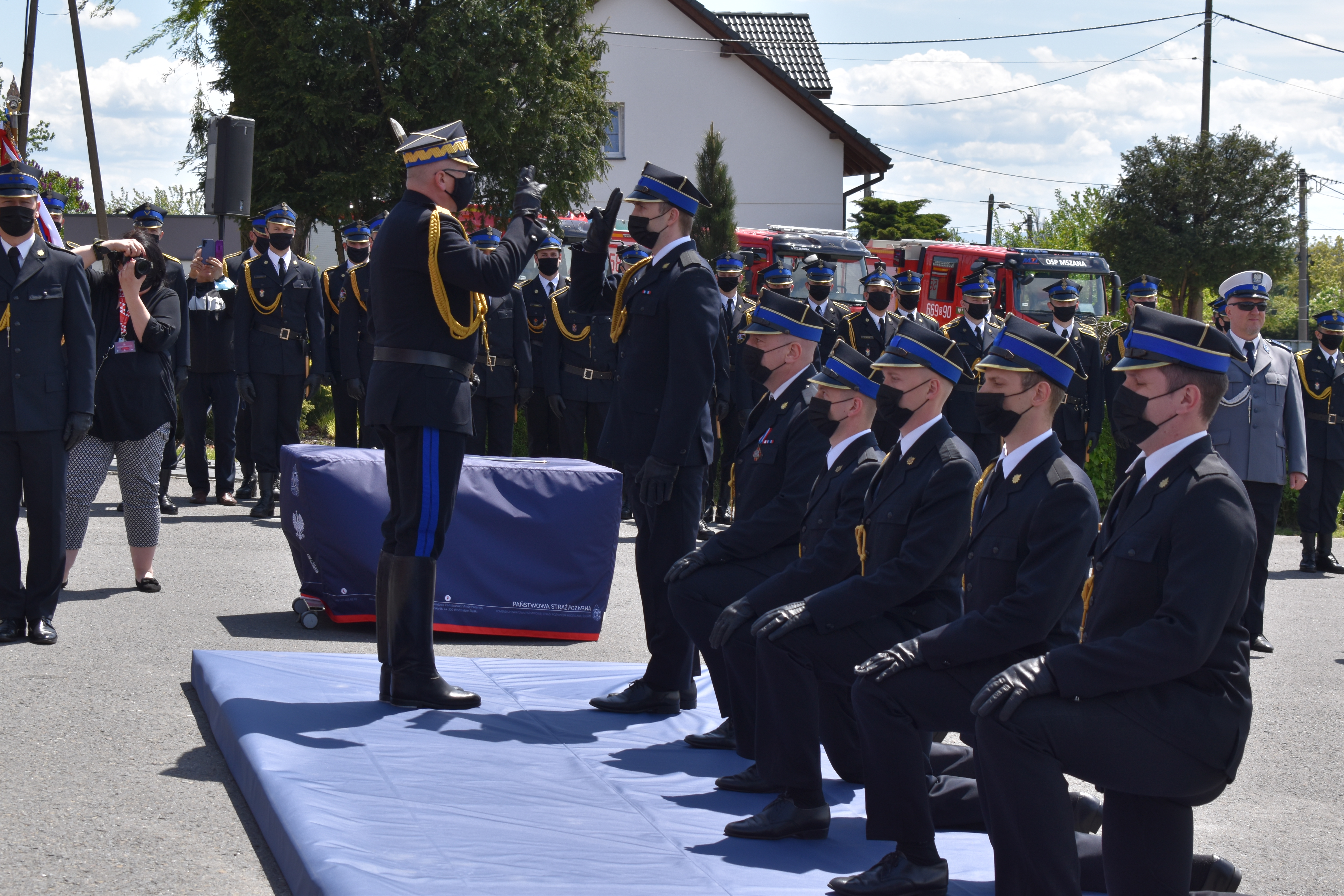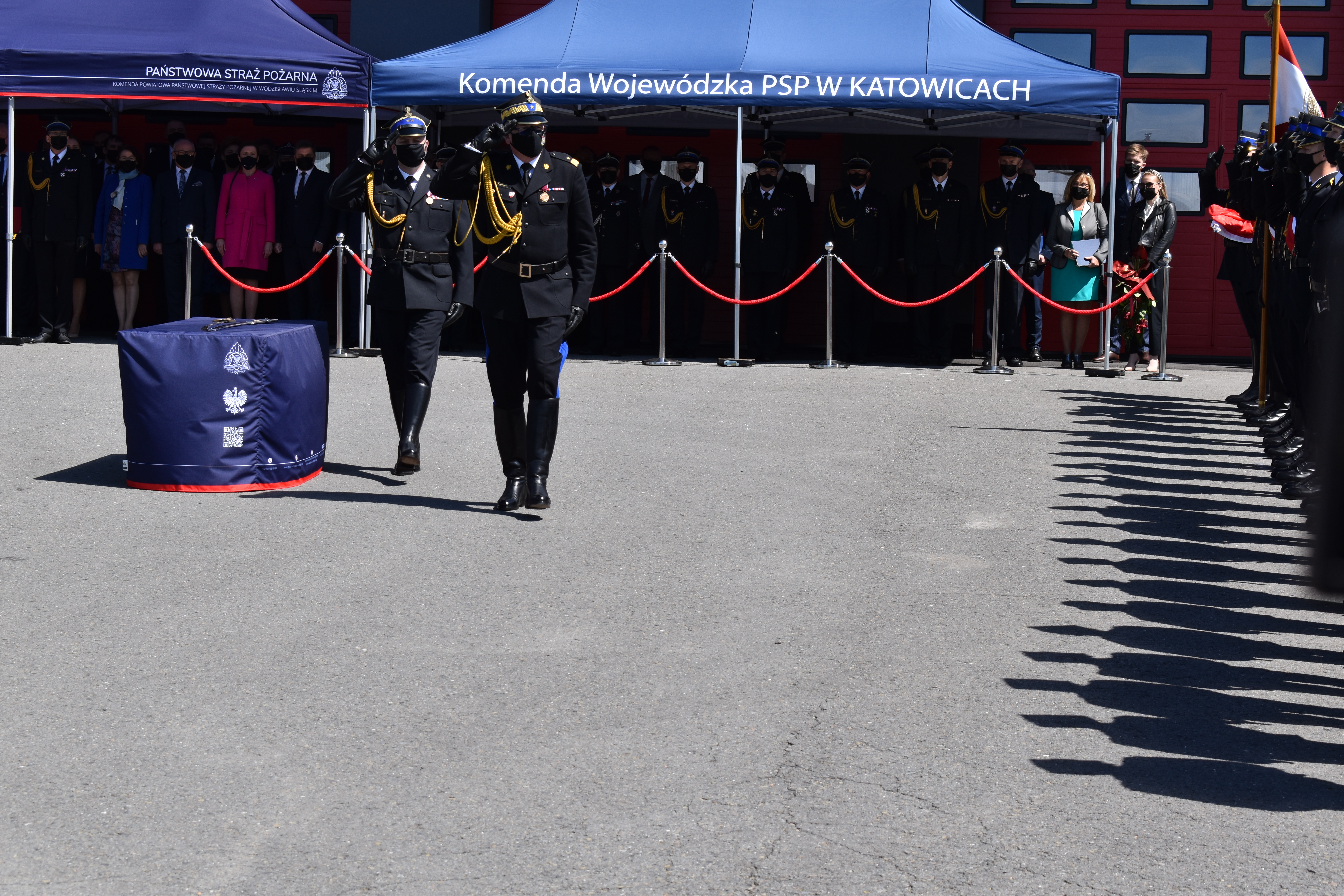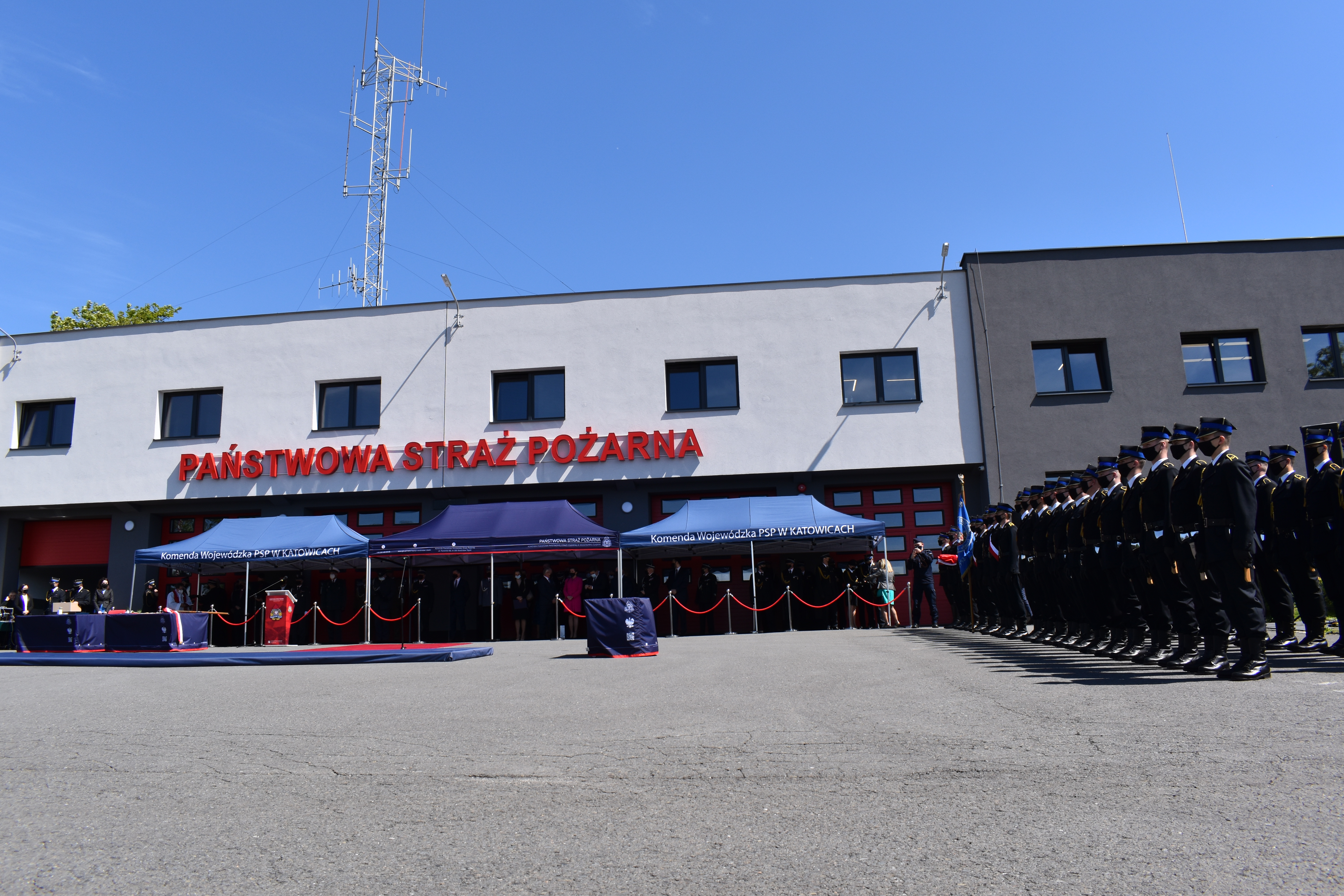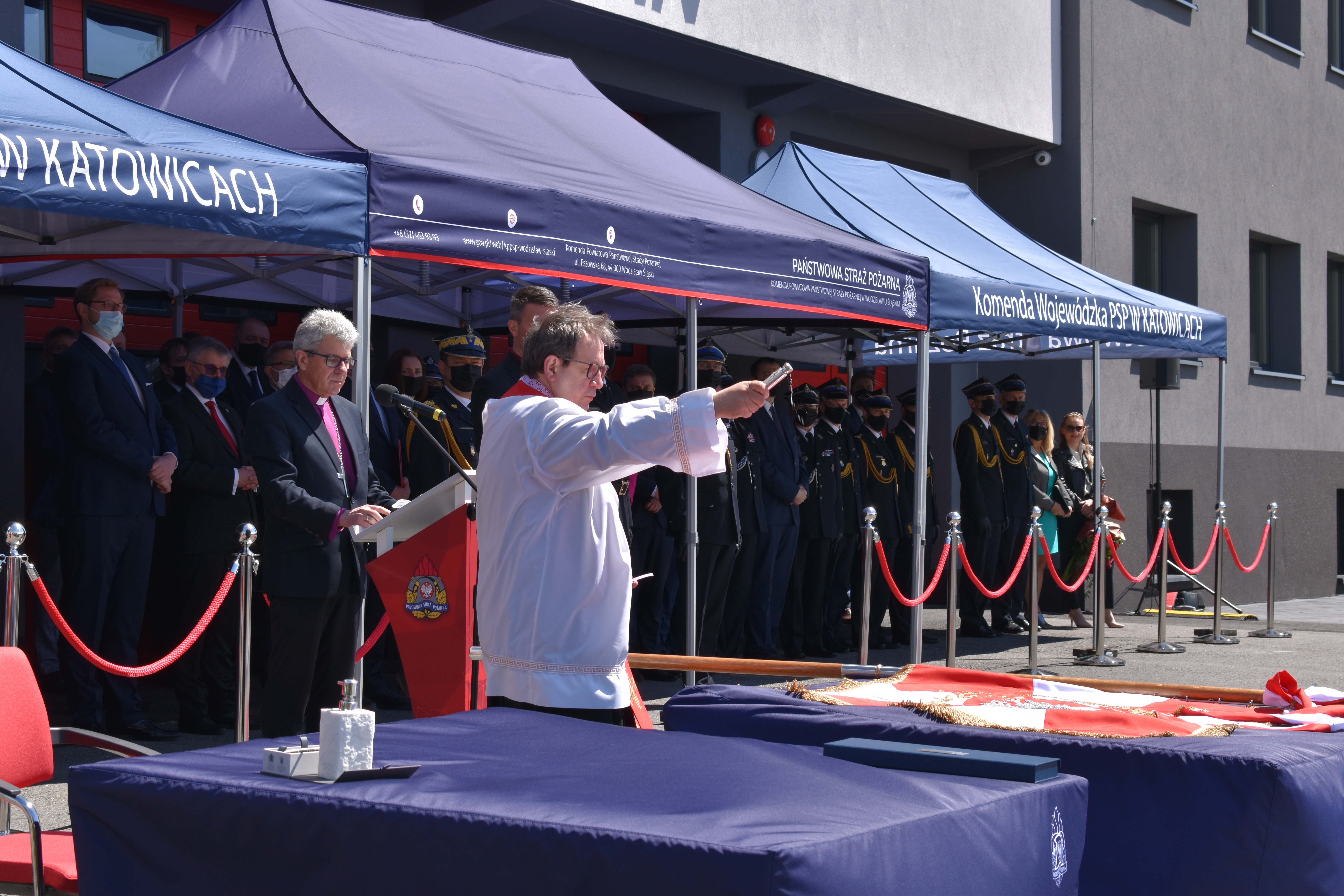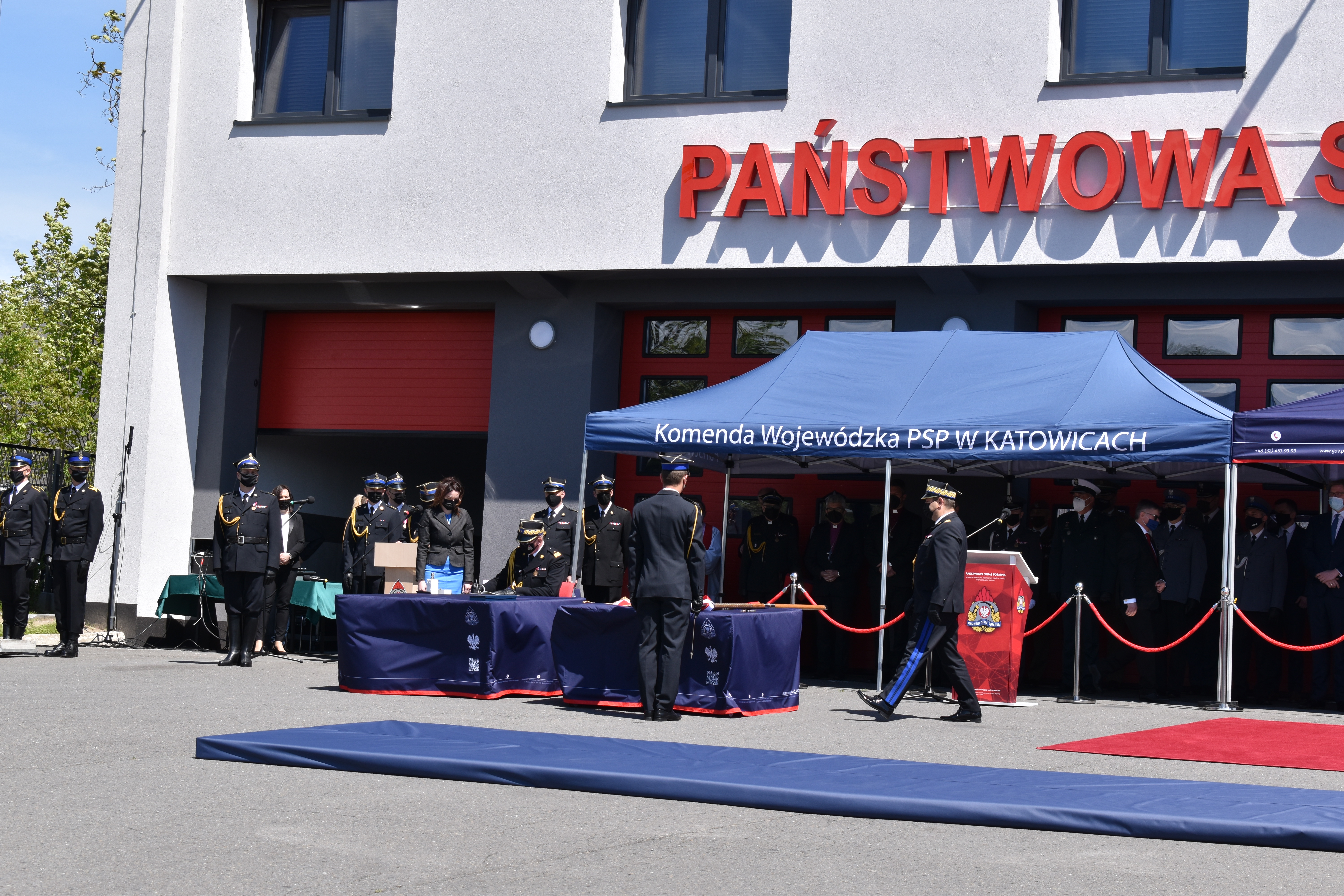 21 maja br. na terenie Komendy Powiatowej Państwowej Straży Pożarnej w Wodzisławiu Śląskim odbyły się Wojewódzkie Obchody Dnia Strażaka, połączone z uroczystym wręczeniem sztandaru Komendzie PSP w Wodzisławiu Śląskim oraz promocją na pierwszy stopień oficerski. W uroczystości wzięli udział: Michał Woś - sekretarz stanu w Ministerstwie Srpawiedliwości, Posłowie na Sejm Rzeczypospolitej Polskiej Pan Adam Gawęda, Pani Teresa Glenc, Pan Krzysztof Gadowski, Pani Senator Ewa Gawęda, Jarosław Wieczorek - wojewoda ślaski, Zastępca Komendanta Głównego PSP nadbryg. Krysztof Hejduk, Śląski Komendant Wojewódzki PSP nadbryg. Jacek Kleszczewski oraz pozostali zaproszeni goście. Ceremonia wręczenia sztandaru poprzedziła wręczenie dwóm naszym funkcjonariuszom Dyplomów Komendanta Głównego PSP za wzorową postawę i wysokie osiągnięcia w realizacji zadań służbowych, jak również promowanie na pierwszy stopień oficerski jednego funkcjonariusza KP PSP w Wodzisławiu Śląskim.