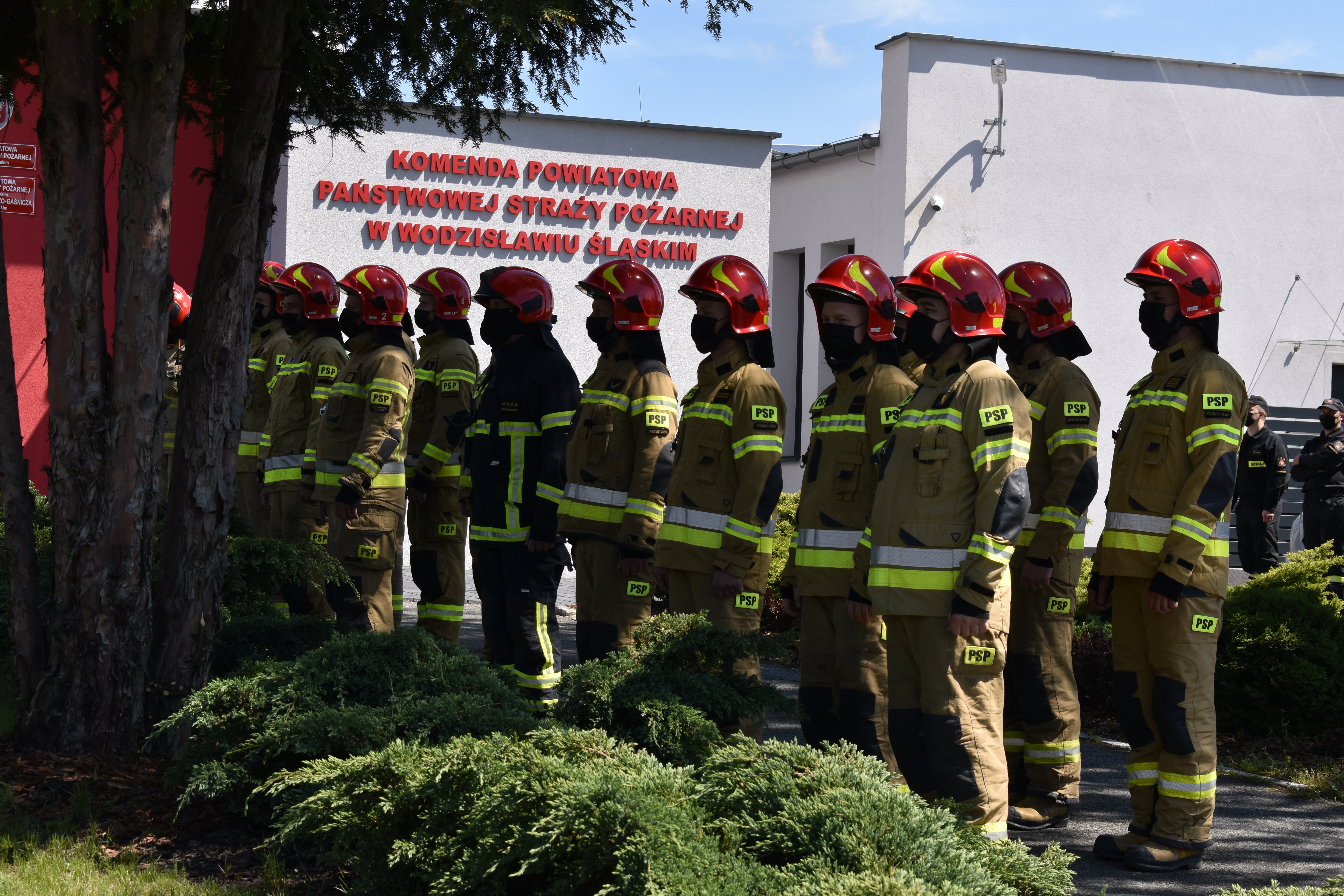 17 maja br. Komendant Wojewódzki PSP w Katowicach nadbryg. Jacek Kleszczewski wziął udział w uroczystej zbiórce zorganizowanej w budynku Komendy z okazji Powiatowych Obchodów Dnia Strażaka, podczas której awanse na wyższe stopnie służbowe otrzymało 31 funkcjonariuszy KP PSP w Wodzisławiu Śląskim, w tym na wyższy stopień w korpusie oficerskim – 3 funkcjonariuszy, aspiranckim – 4 funkcjonariuszy, podoficerskim – 23 funkcjonariuszy. Awans w stopniu starszego strażaka otrzymał jeden funkcjonariusz. Wręczono również odznaczenia resortowe: Odznaki „Zasłużony dla ochrony przeciwpożarowej” oraz Medale „Za zasługi dla pożarnictwa”. Tegoroczna uroczystość rozpoczęła się minutą ciszy w celu uczczenia pamięci zmarłych strażaków oraz ofiar pandemii Covid-19. W uroczystości udział wzięli również starosta wodzisławski Leszek Bizoń oraz Prezes Powiatowego Zarządu ZOSP RP dh Piotr Mikołajczyk.