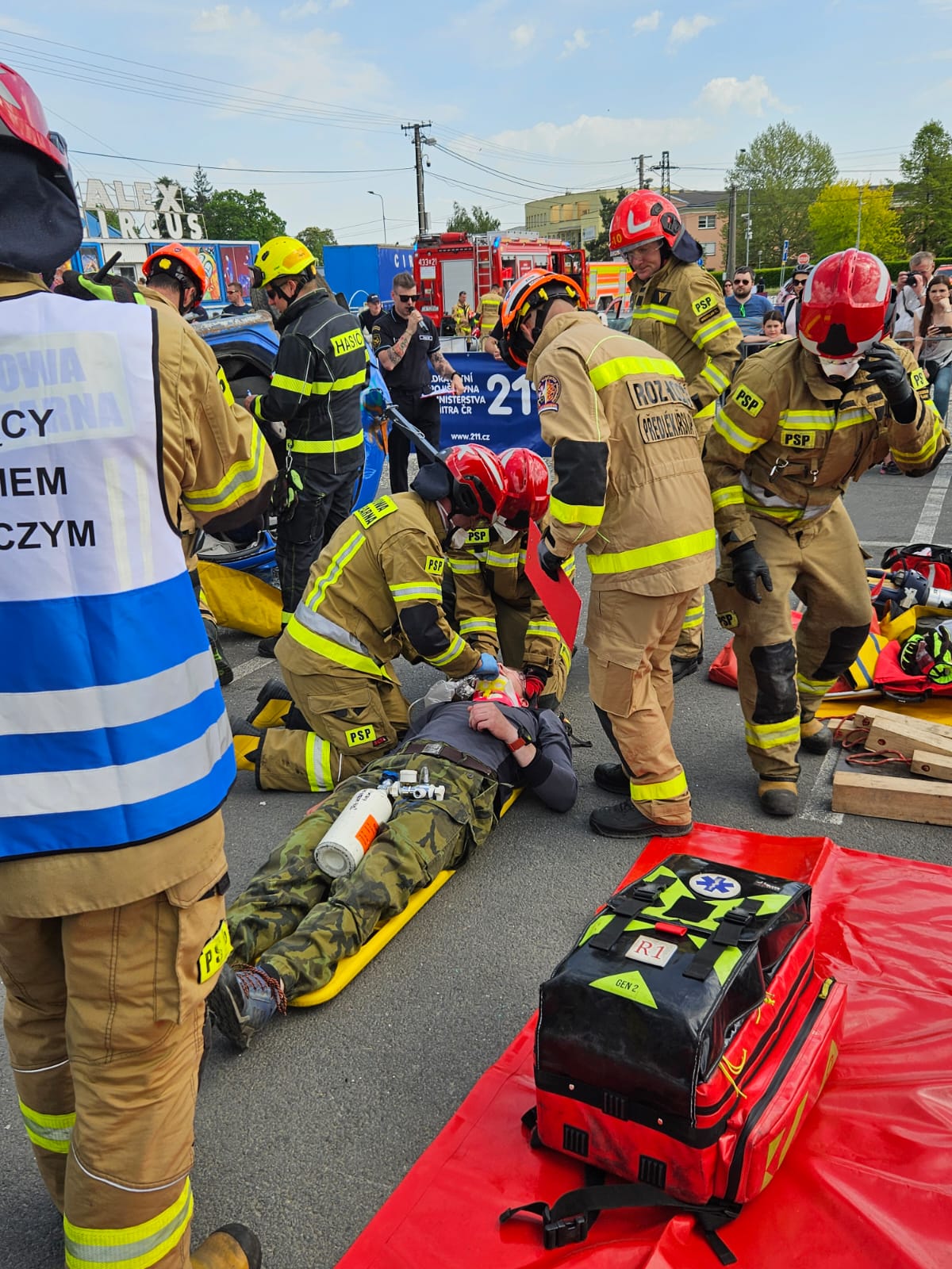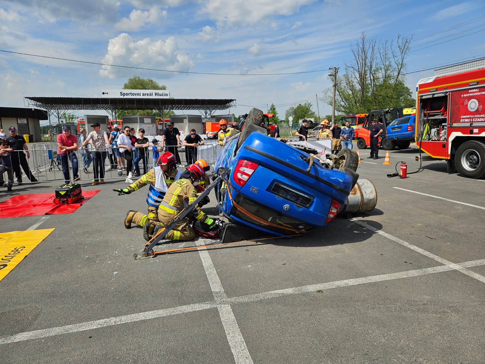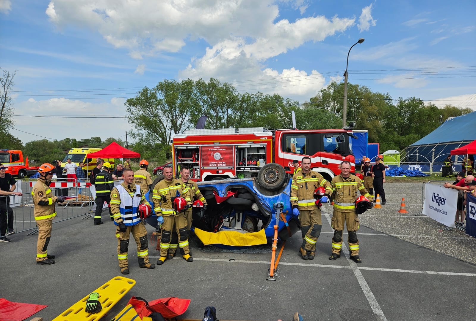 3 maja br. w czeskim Hlučinie odbyły się zawody ratownictwa drogowego, w których udział wzięła także reprezentacja Komendy Powiatowej Państwowej Straży Pożarnej w Wodzisławiu Śląskim. Formuła zawodów polegała na przeprowadzeniu działań ratowniczych w sytuacji symulowanego wypadku drogowego z zastosowaniem odpowiednich technik i sprzętu, gdzie kluczowym zadaniem jest ewakuacja osoby poszkodowanej z pojazdu w czasie nie przekraczającym 20 minut. Zastęp wodzisławskiej Komendy mierzył się z założeniem, w którym samochód osobowy wywrócony był na lewym boku, a osoba poszkodowana znajdowała się w jego tylnej części.