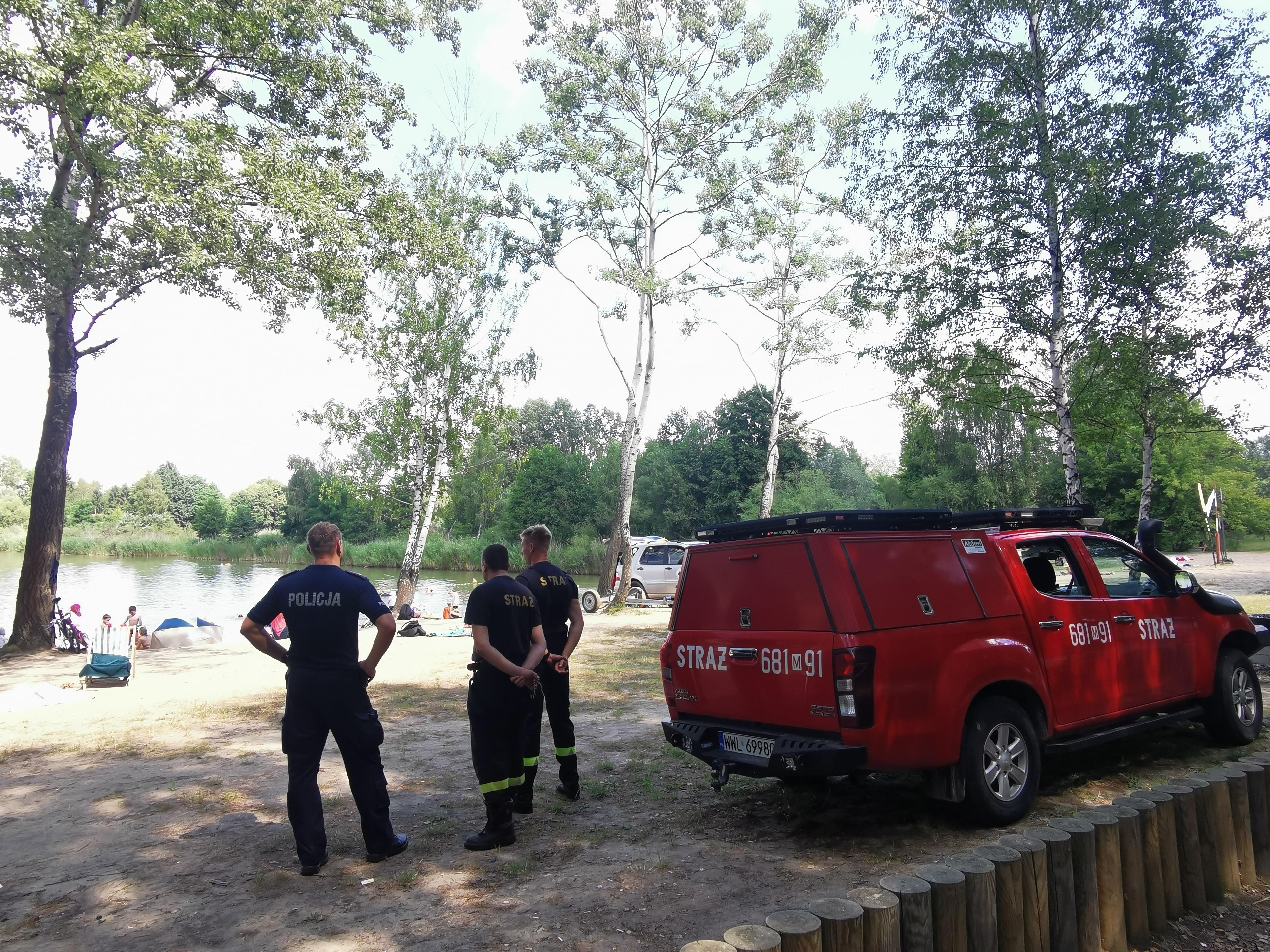 W dniu 09.07.2024 strażacy JRG w Wołominie wspólnie z funkcjonariuszem KPP Wołomin odbyli wspólny patrol na plaży przy Zielonkowskich Gliniankach.