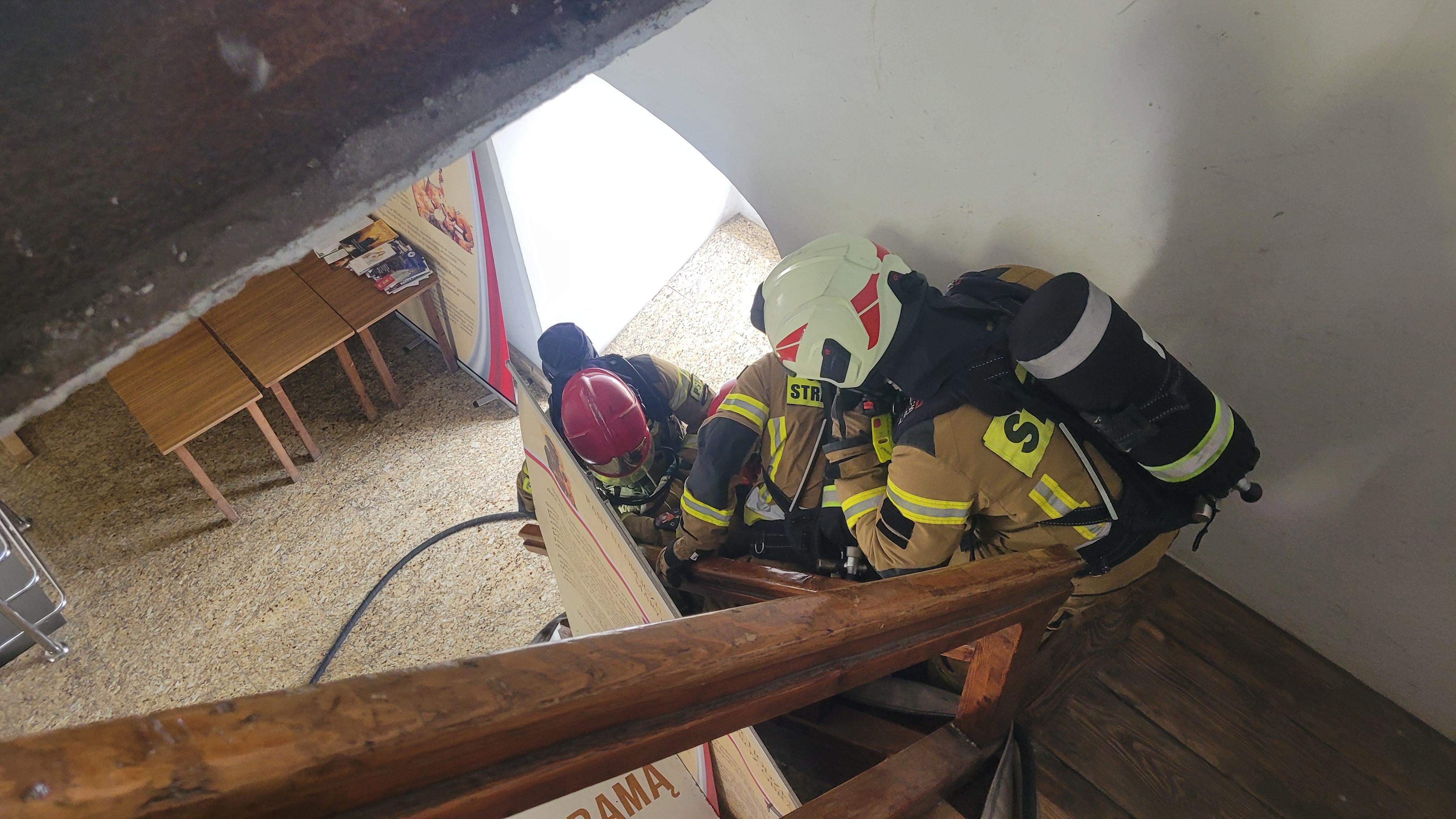 Epizod ćwiczeń zakładał rozwijający się pożar kościelnej wieży. Zadaniem strażaków było wprowadzenie linii gaśniczej do wnętrza oraz podanie wody z kosza podnośnika. Dodatkowym elementem była symulacja urazu strażaka prowadzącego działania wewnątrz co skutkowało wejściem do działania roty asekuracyjnej oraz uszkodzenie podnośnika i konieczność ewakuacji strażaków z wysokości przy pomocy technik linowych.