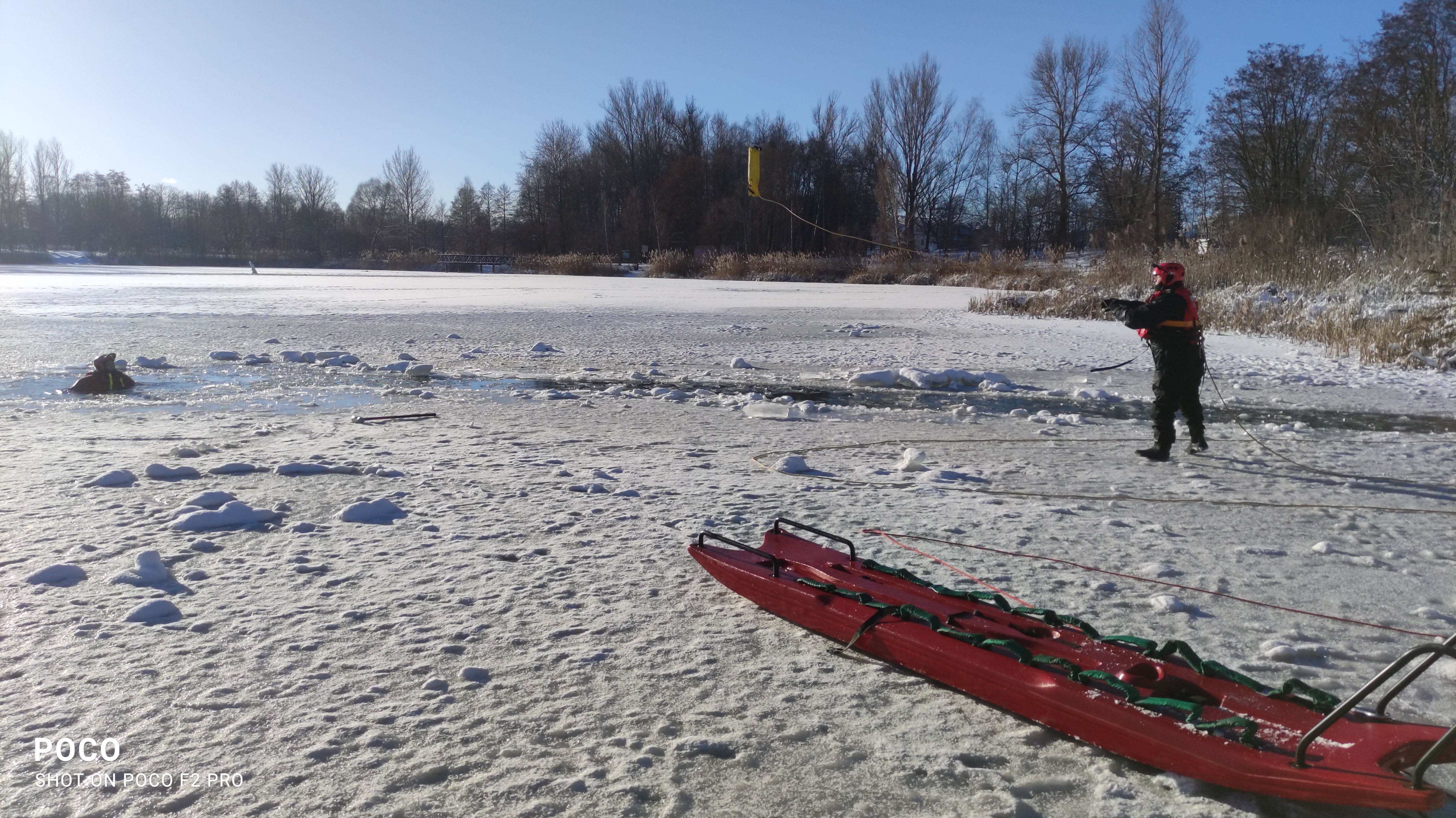 W dniach 15,16,17 stycznia 2024 roku zmiany służbowe JRG Wołomin zrealizowały zajęcia doskonalenia zawodowego z ratownictwa lodowego na zbiorniku wodnym Glinianki Zielonka.