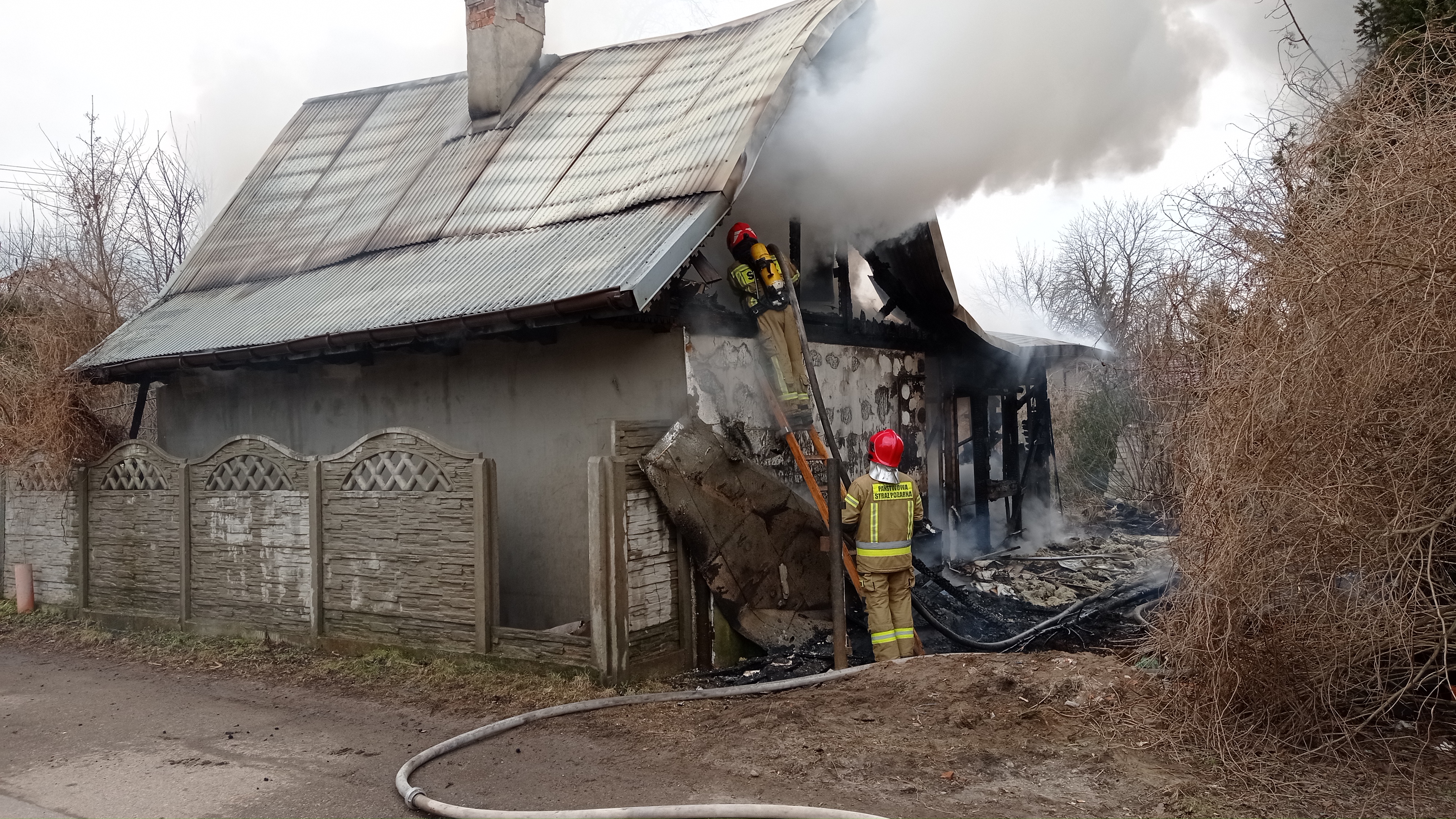 Po przybyciu na miejsce zdarzenia pierwszych zastępów straży pożarnej stwierdzono, że budynek w całości objęty jest pożarem. Działania strażaków polegały na zabezpieczeniu miejsca zdarzenia, następnie podano dwa prądy gaśnicze wody do całkowitego ugaszenia. Po lokalizacji pożaru przeszukano pomieszczenia, nie stwierdzono osób poszkodowanych. Niezbędne było dokonanie prac rozbiórkowych drewnianej konstrukcji w celu dotarcia do ukrytych zarzewi ognia.