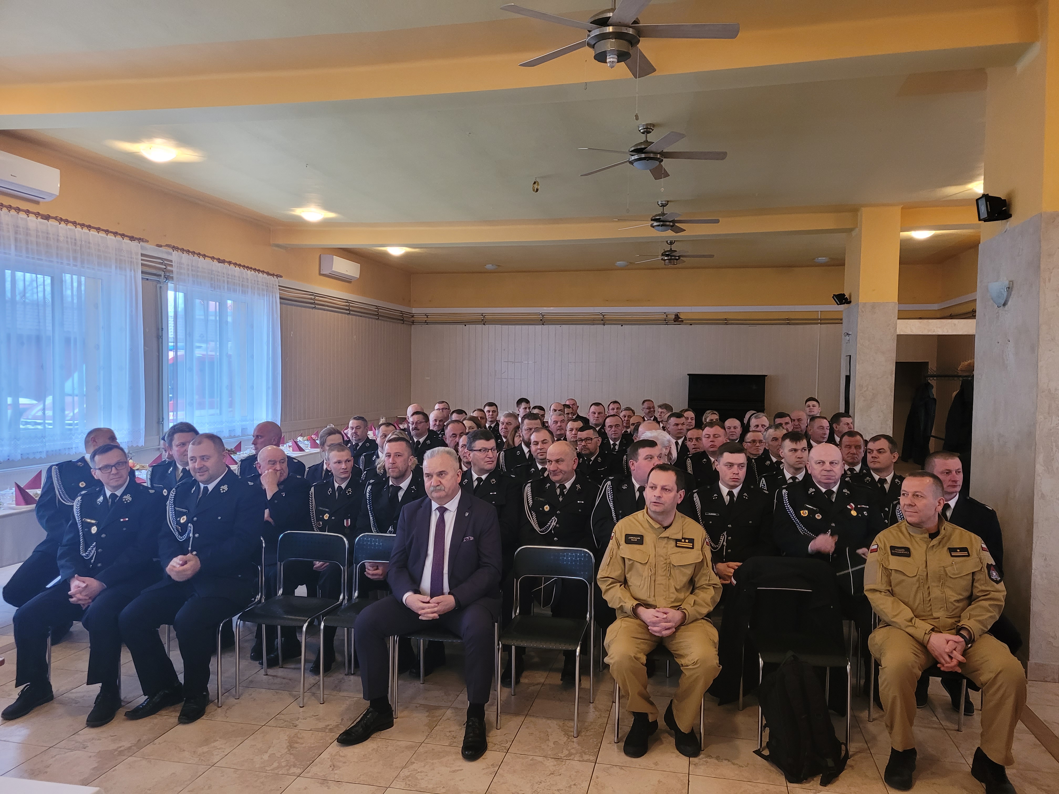 Narada roczna kadry kierowniczej KP PSP Wołomin ze strażakami z Ochotniczych Straży Pożarnych powiatu wołomińskiego.