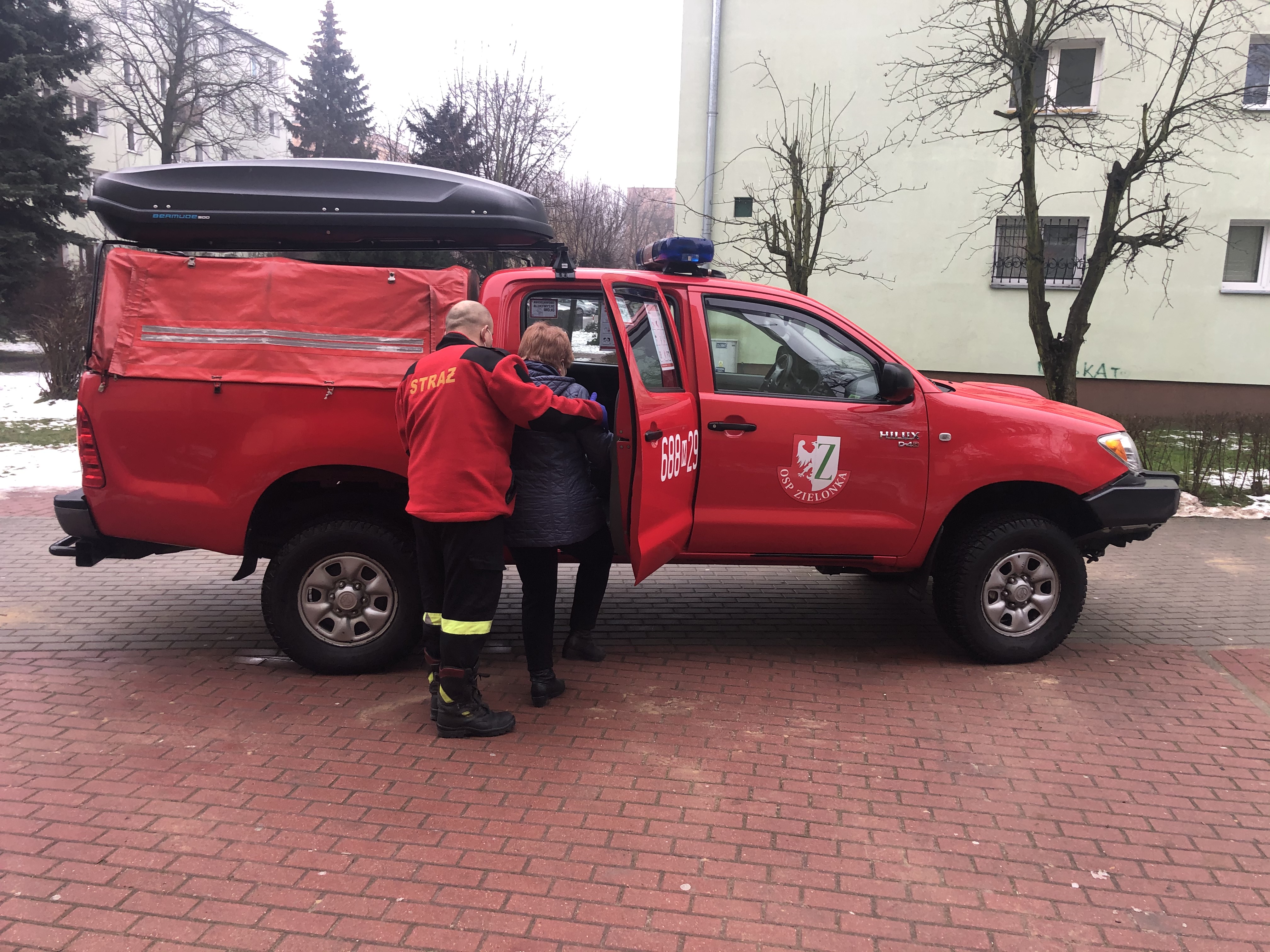 W ramach ogólnopolskiej akcji szczepień przeciw COVID-19 już od wtorku 26 stycznia pierwsze osoby, które nie mogły dojechać na szczepienie we własnym zakresie korzystały z możliwości transportu realizowanego przez straż pożarną z powiatu wołomińskiego.