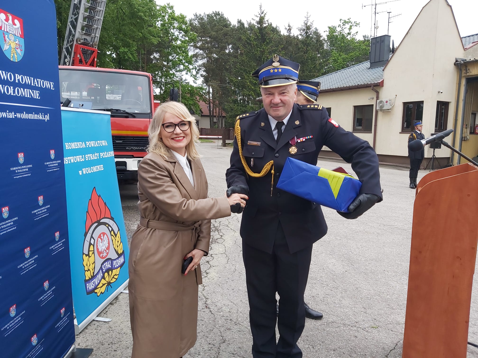 W dniu 19 maja 2023 roku o godzinie 14 na terenie Komendy Powiatowej PSP w Wołominie odbyły się obchody Dnia Strażaka. Podczas uroczystości funkcjonariusze KP PSP Wołomin oraz samorządowcy odebrali odznaczenia, odznaki oraz akty mianowania na wyższe stopnie służbowe