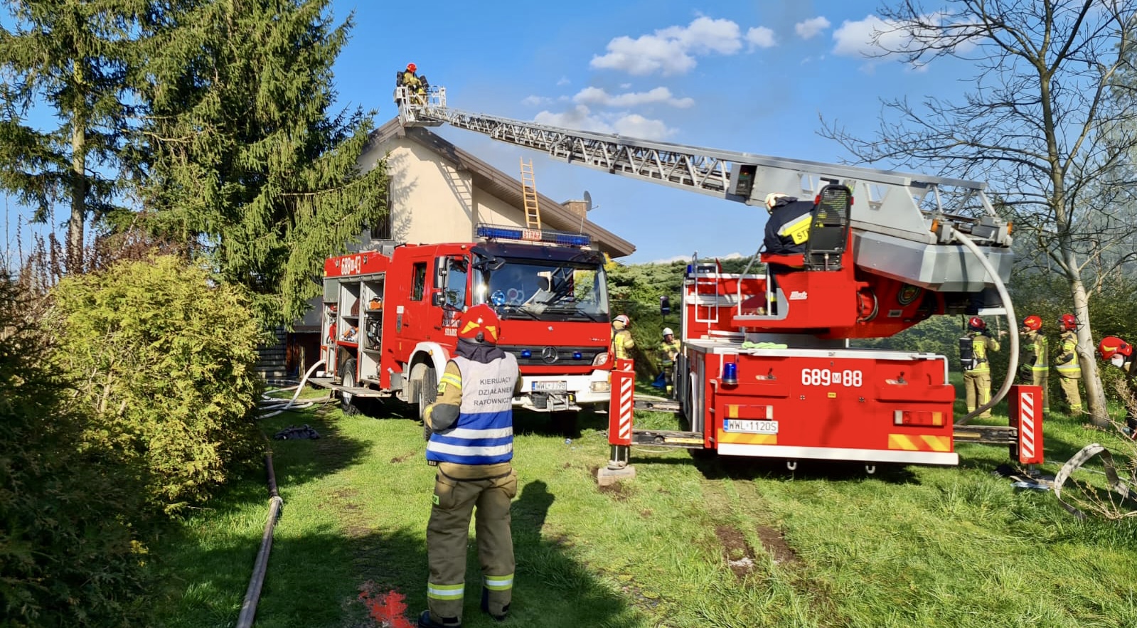 W chwili przybycia strażaków pożarem objęte było poddasze w budynku jednorodzinnym. Działania straży polegały na zabezpieczeniu miejsca zdarzenia, następnie zabezpieczeni ratownicy weszli do budynku i ugasili pożar. W celu szybszego opanowania żywiołu dokonano niezbędnych prac rozbiórkowych konstrukcji dachu.