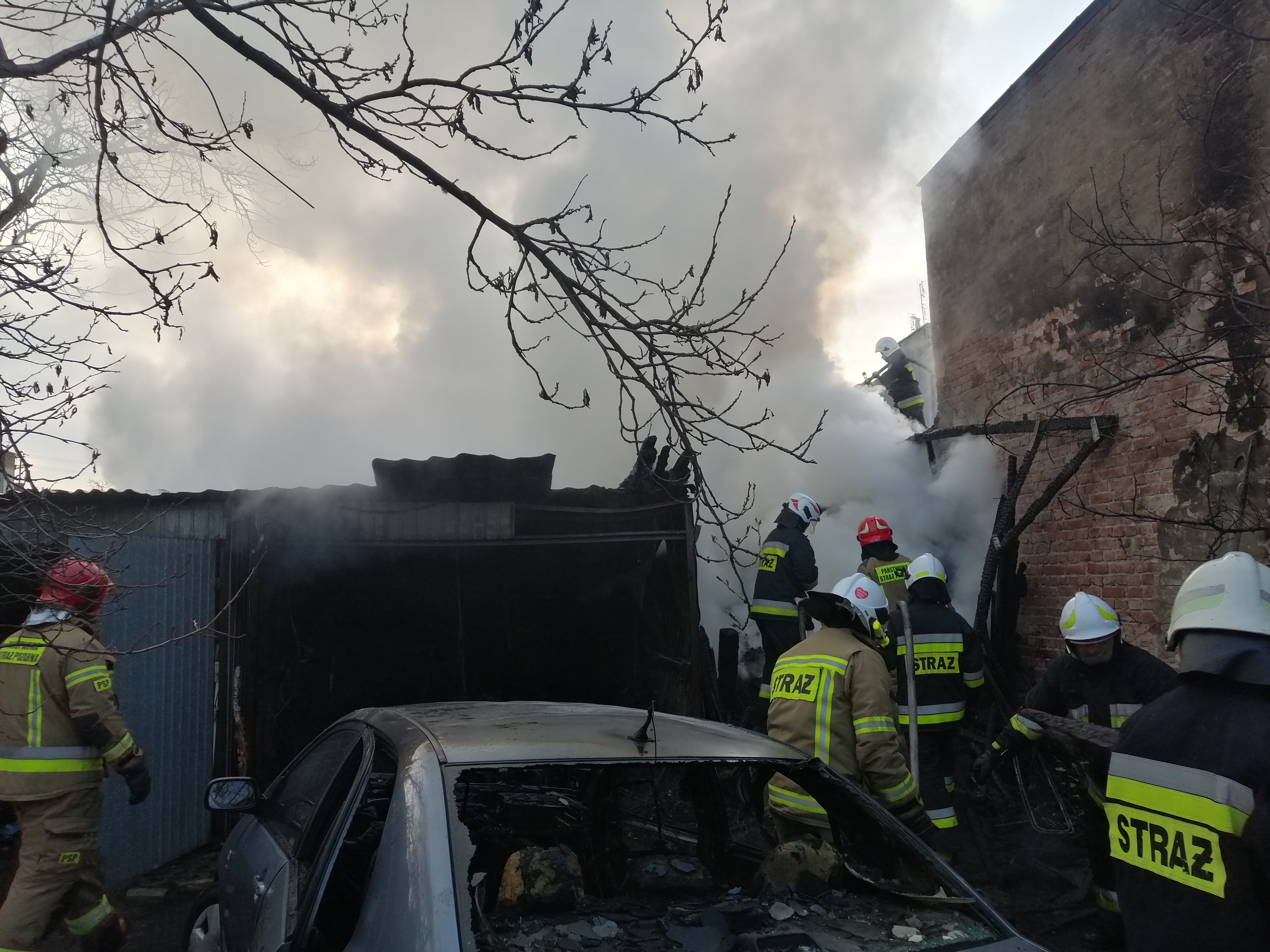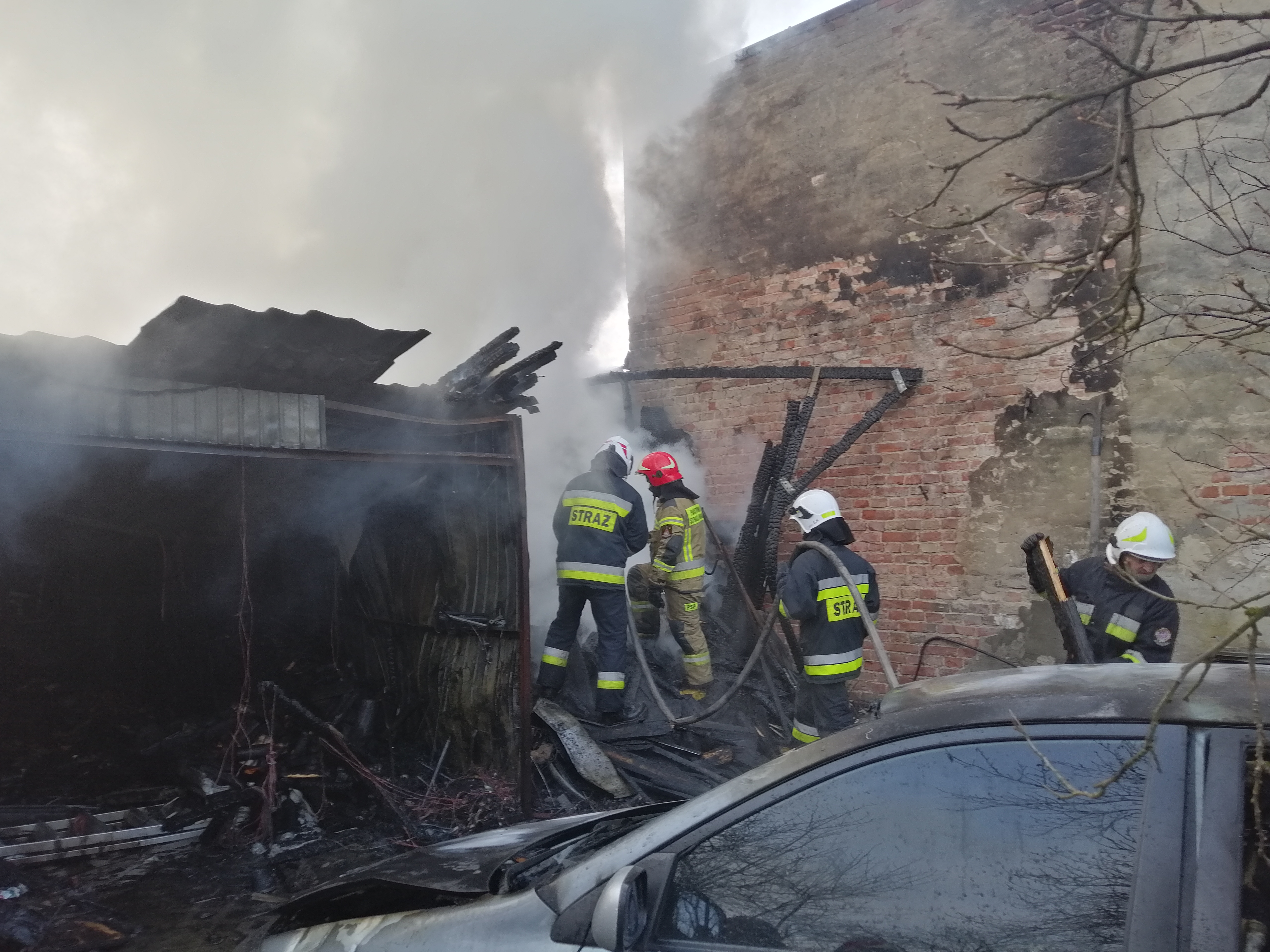 W chwili przybycia straży pożarnej na miejsce zdarzenia pożarem objęty był drewniany garaż oraz stojący w jego pobliżu samochód osobowy. Pożar rozprzestrzeniał się na sąsiedni budynek. W pierwszej chwili działania strażaków polegały na podaniu wody na zagrożony pożarem budynek zlokalizowany na sąsiedniej działce. Następnie przystąpiono do natarcia na pożar i jego ugaszenia. Aby zlikwidować ukryte zarzewia ognia wymagane były prace rozbiórkowe konstrukcji garażu oraz składowanego w nim drewna.