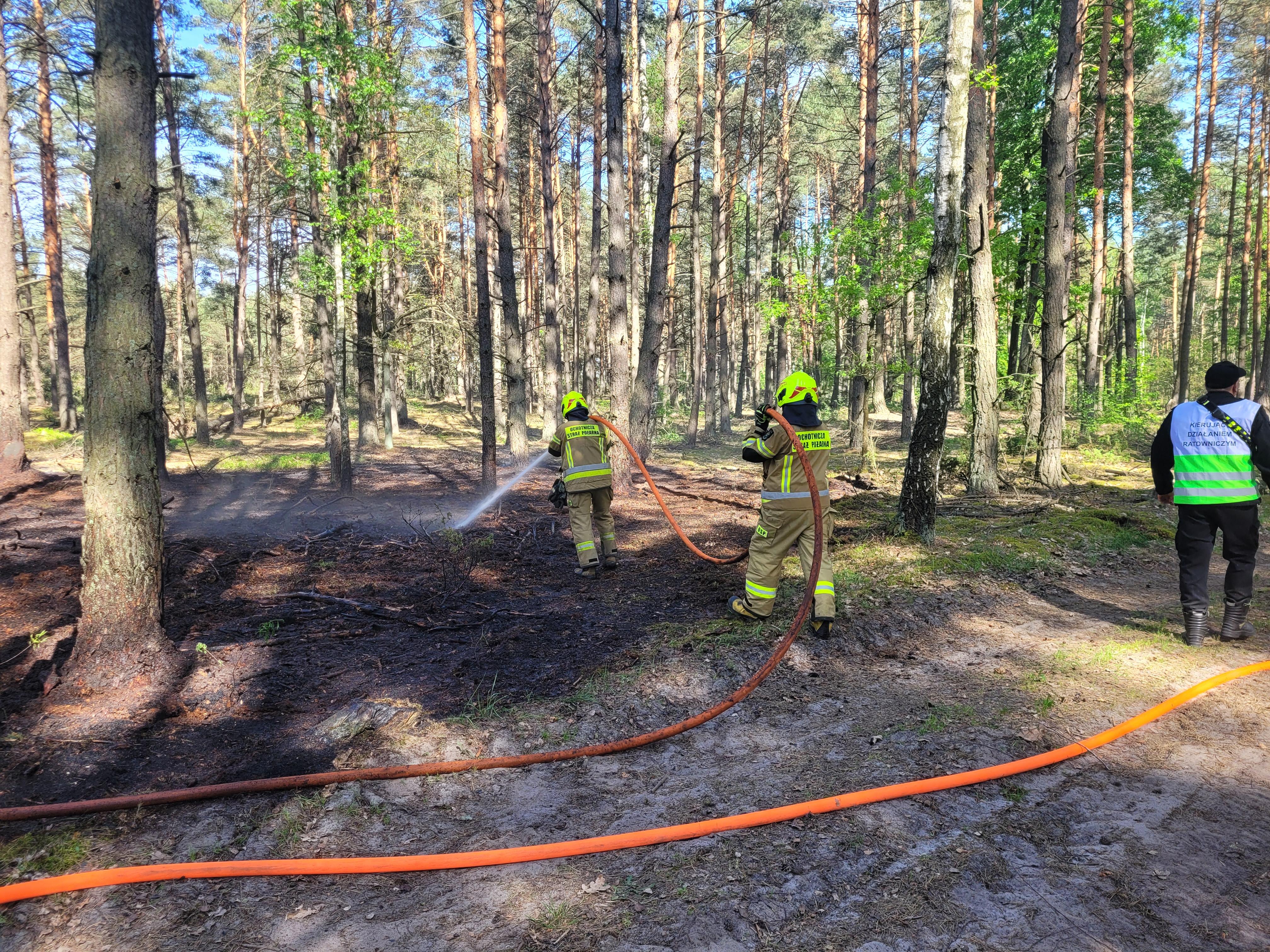 Kilkanaście minut po godzinie 12 do stanowiska kierowania PSP w Wołominie wpłynęło zgłoszenie z dostrzegalni ppoż. Lasów Państwowych o kilku miejscach na terenie poligonu w Zielonce z których wydobywa się dym. Przybyli na miejsce strażacy zastali rozwijający się pożar pokrywy gleby w kilku miejscach oddalonych od siebie. W związku z dużą powierzchnią zdarzenia i dynamicznym rozwojem zadysponowano dodatkowe siły strażackie oraz samolot gaśniczy Lasów Państwowych. Po kilkudziesięciu minutach walki z żywiołem udało się zatrzymać rozwój i można było przystąpić do przelewania pogorzeliska. Ta czynność trwała do godziny 20. Aby sprawnie i skutecznie prowadzić działania Komendant Powiatowy PSP w Wołominie polecił zawiązać sztab akcji oraz zadysponować bezzałogowy statek powietrzny oraz quada. Następnie Kierujący Działaniem Ratowniczym polecił zastępom OSP dozór pogorzeliska do rana dnia następnego. Łącznie spaleniu uległo ok. 3 hektarów pokrywy gleby w lesie.