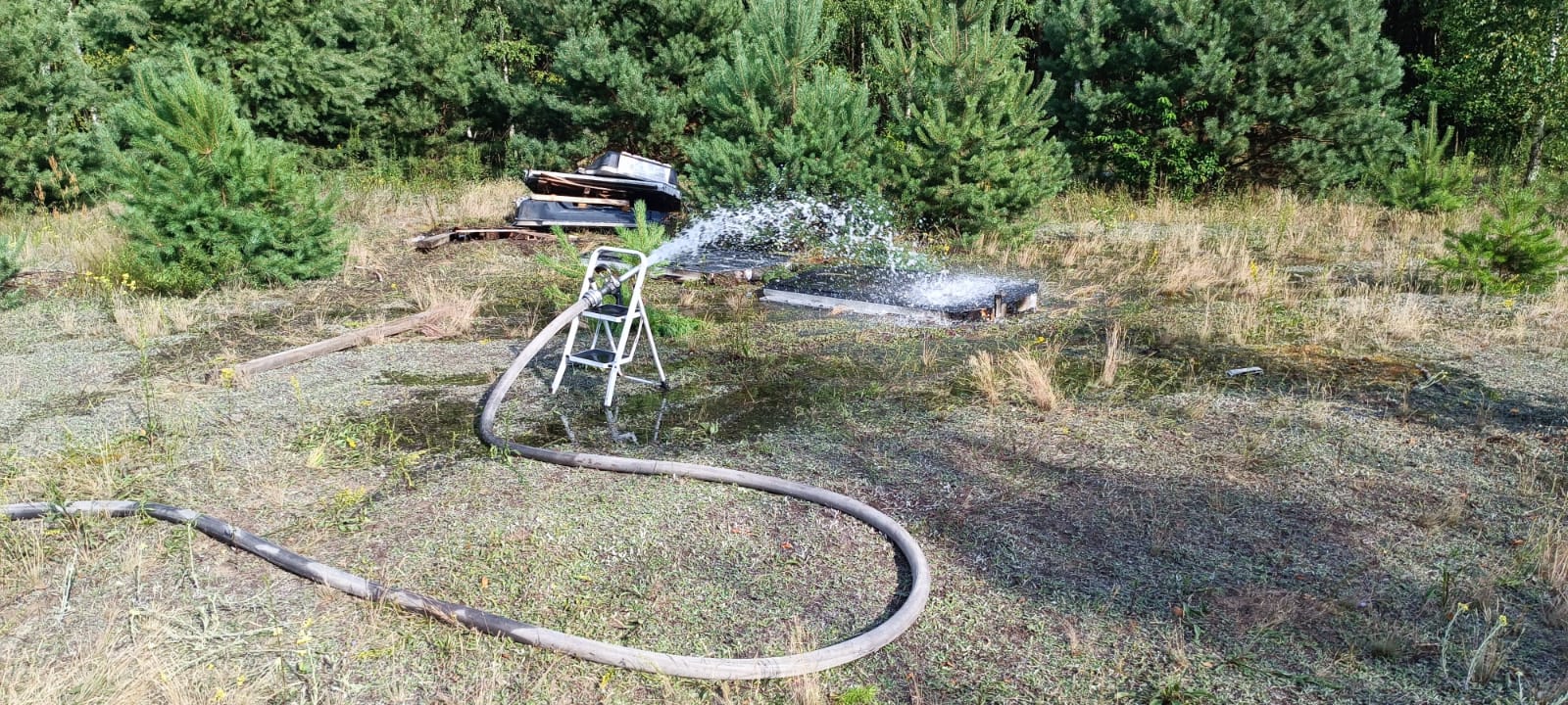 Na łące pozostawiono pięć takich akumulatorów, jeden z nich uległ spaleniu. Strażacy zabezpieczyli miejsce zdarzenia następnie zbudowali nieruchome stanowisko gaśnicze aby podać wodę na pożar. Na bieżąco kontrolowali temperaturę baterii przy pomocy kamery termowizyjnej. Po ugaszeniu umieszczono akumulator w przygotowanym dole wyłożonym folią i zalano go wodą. Miejsce działań wraz z akumulatorami zostało przekazane pracownikom Urzędu Gminy Tłuszcz do utylizacji.