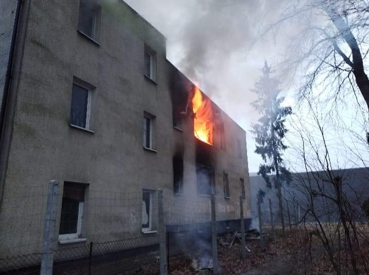 W chwili przybycia straży pożarnej na miejsce zdarzenia pożarem objęte były dwa pomieszczenia na pierwszym piętrze budynku wielorodzinnego, w pozostałych pomieszczeniach panowało silne zadymienie. Działania strażaków polegały na zabezpieczeniu miejsca zdarzenia, rozwinięciu linii gaśniczych i podaniu prądów wody na pożar oraz przeszukaniu wszystkich pomieszczeń. W związku z silnym zadymieniem strażacy pracowali w sprzęcie ochrony dróg oddechowych. Spaleniu uległy znajdujące się wewnątrz pomieszczeń meble.