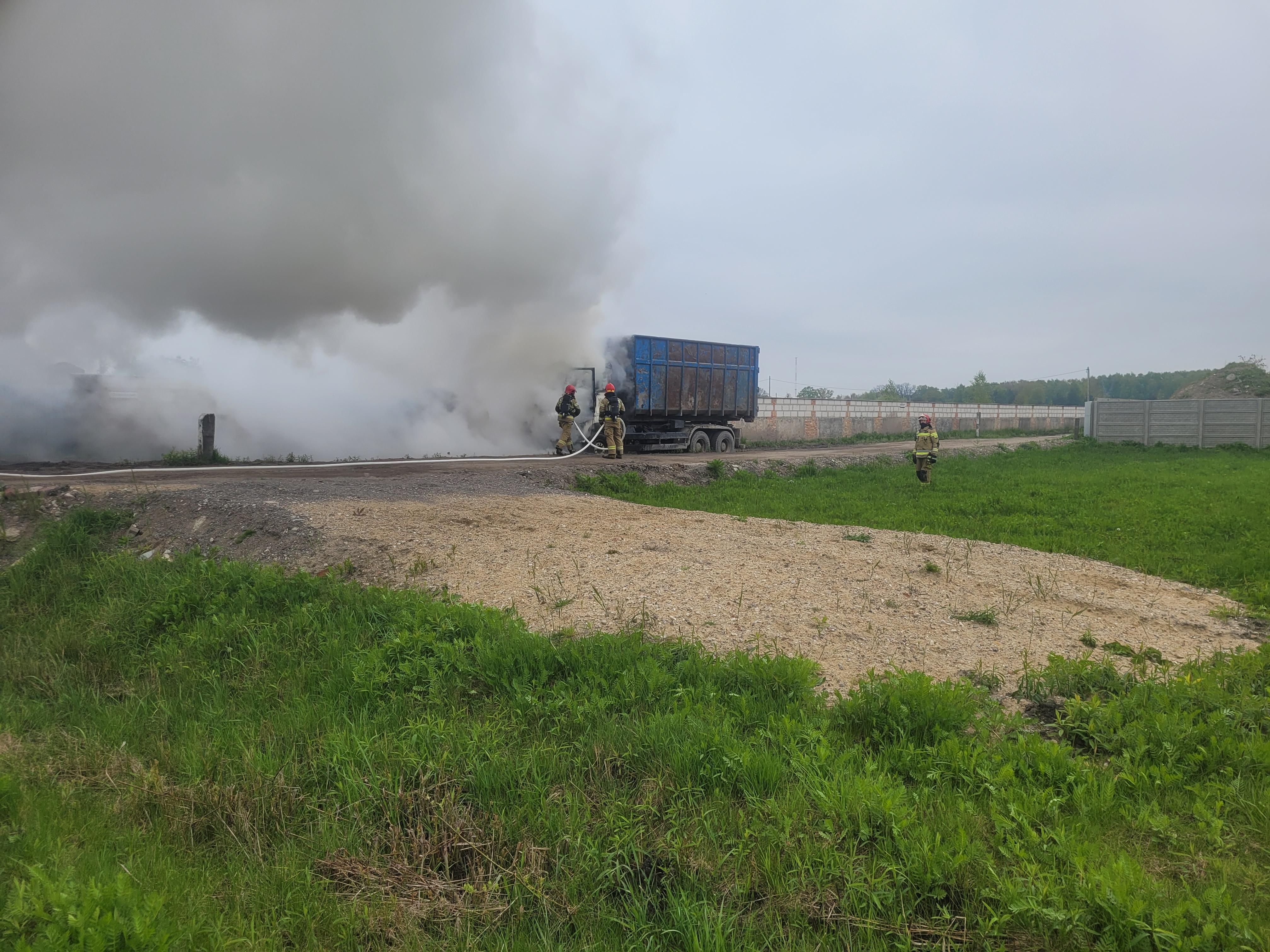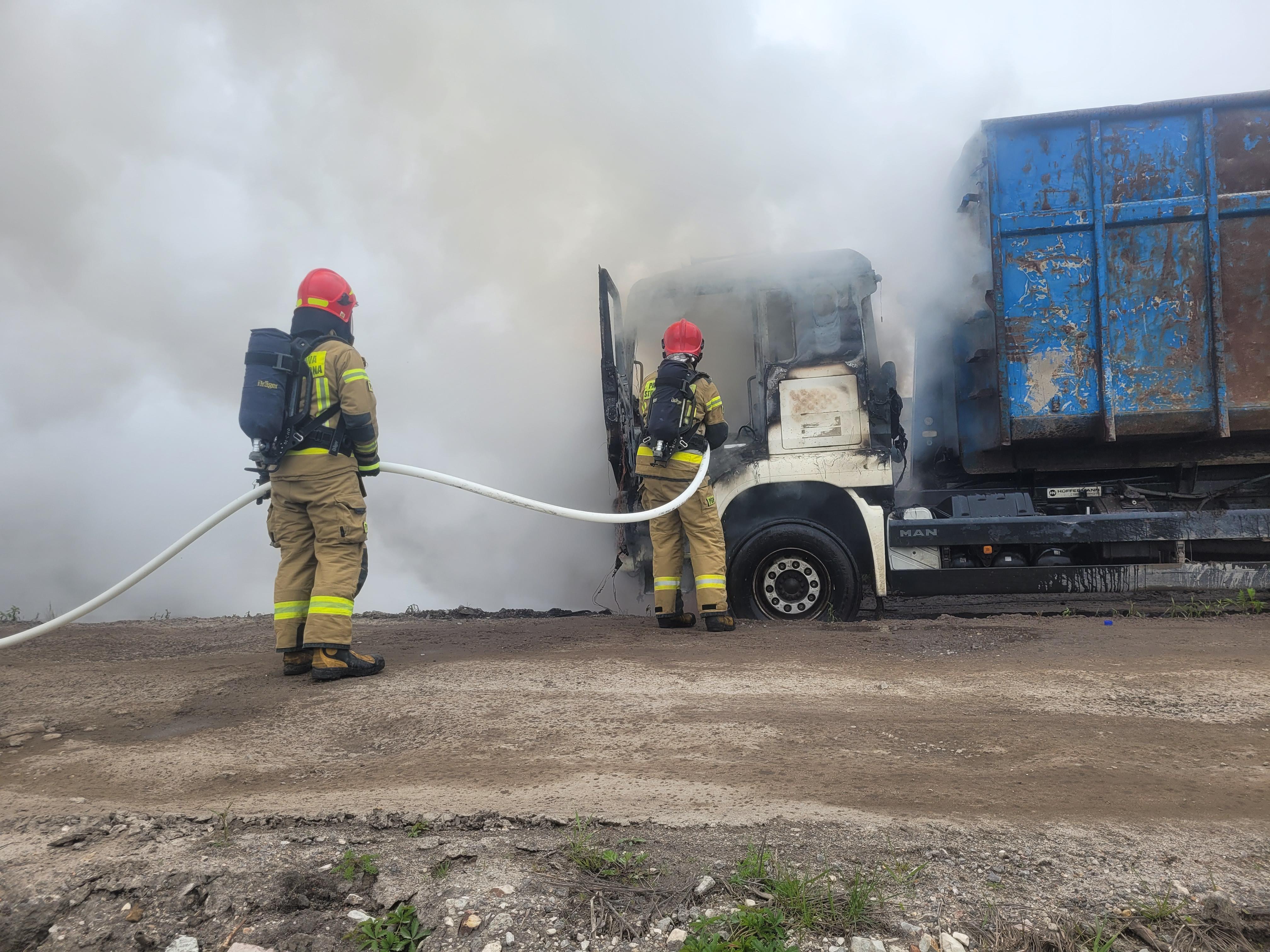 Pożar samochodu ciężarowego w Kobyłce