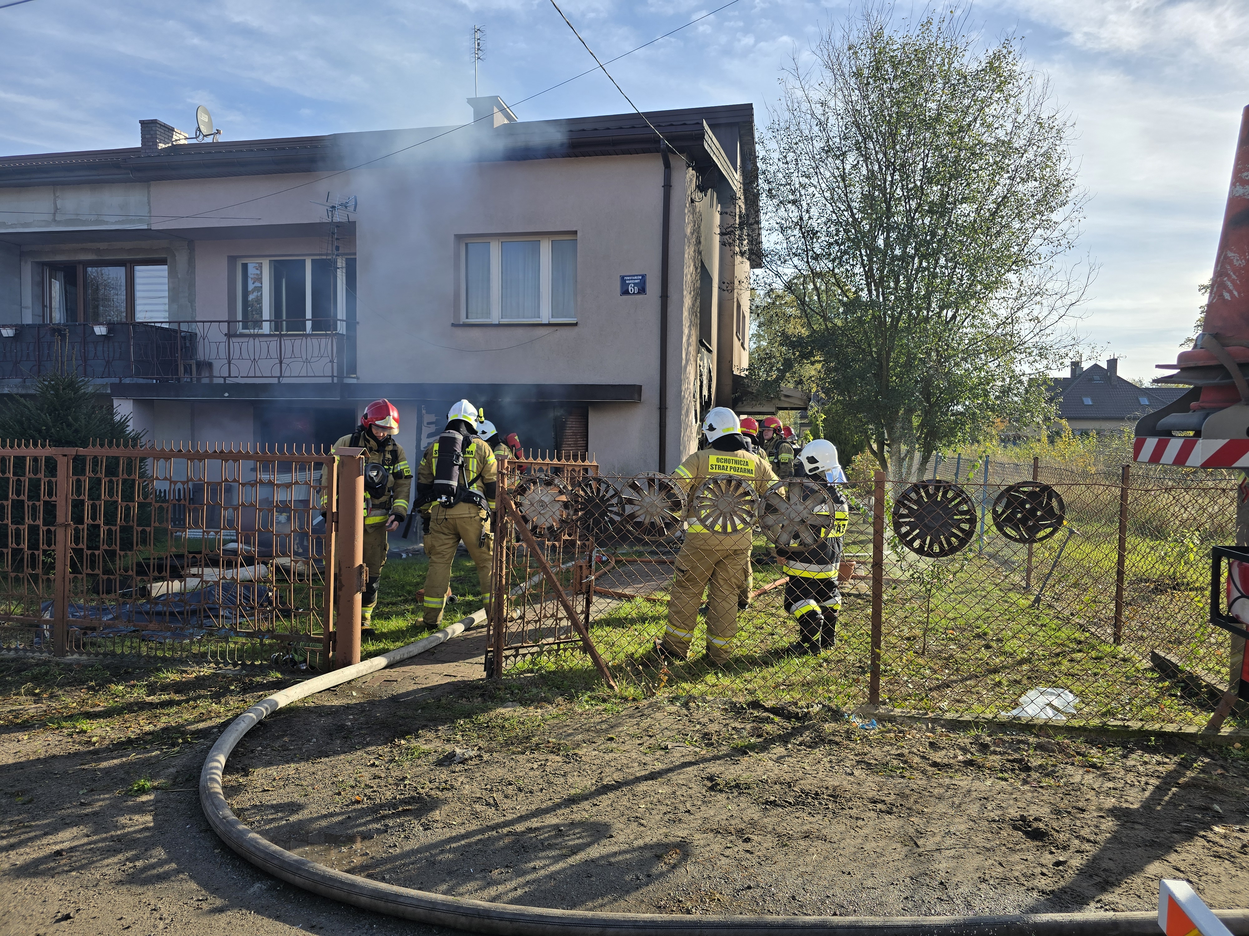 Po dojeździe strażaków, osoby postronne przekazały informację, że w budynku mieszkalnym może znajdować się mężczyzna. W trakcie rozpoznania stwierdzono rozwinięty pożar na parterze oraz płomienie wydobywające się z okien. W pierwszej fazie działań stłumiono wodą płomienie, następnie ratownicy w sprzęcie ochrony dróg oddechowych weszli do wnętrza obiektu. Podczas przeszukania zlokalizowali osobe poszkodowaną, ewakuowali ją na zewnątrz i przekazali ratownikom ZRM. Po przebadaniu ratownicy rozpoznali oznaki zgonu i odstąpili od udzielania pomocy.