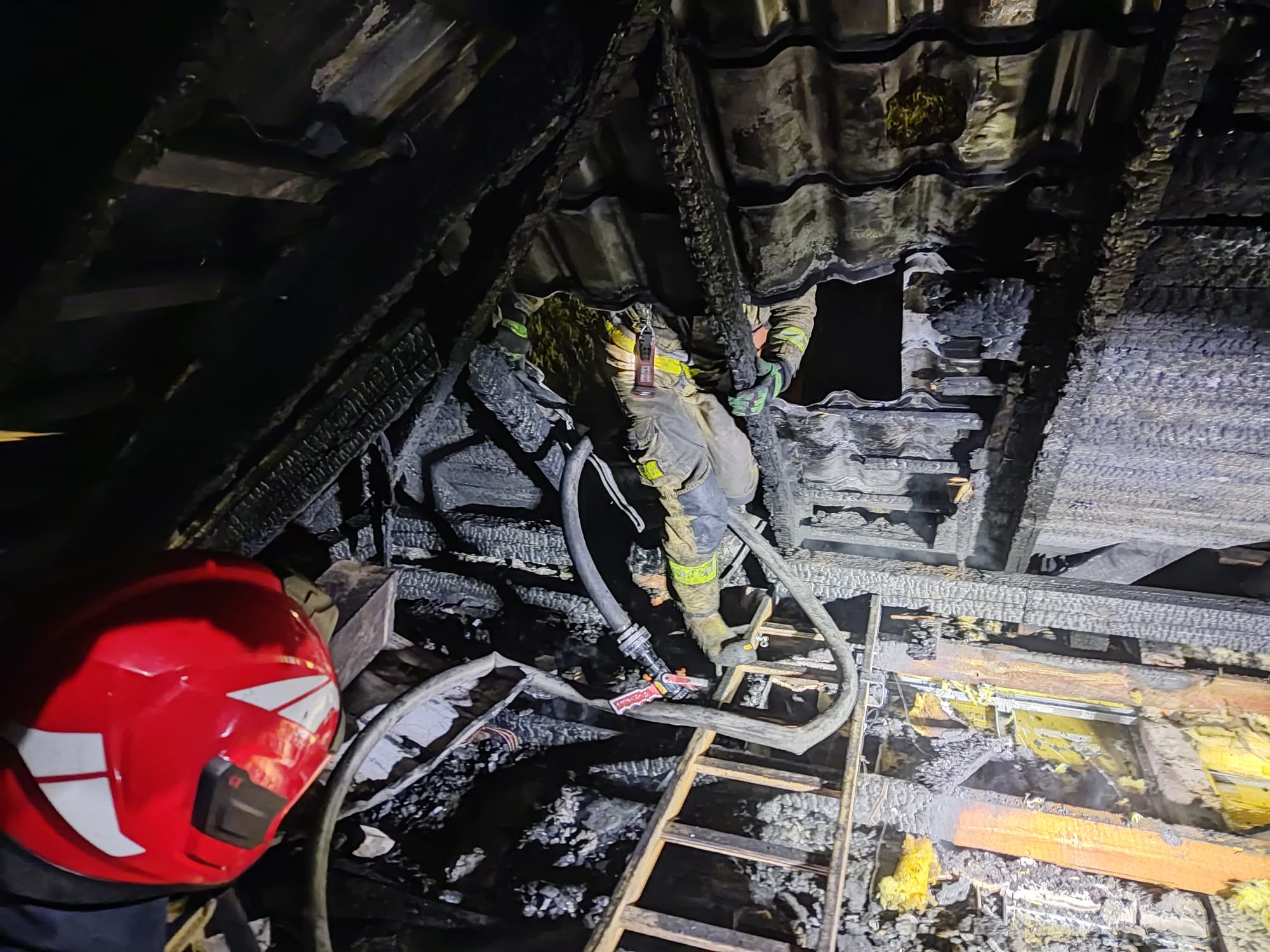 Działania straży w pierwszym etapie polegały na zabezpieczeniu miejsca zdarzenia, odłączeniu energii elektrycznej w budynku oraz podaniu przez rotę ratowników wody w natarciu na pożar z zewnątrz. Następnie ratownicy zabezpieczeni w sprzęt chroniący drogi oddechowe przeszukali budynek oraz podali kolejny prąd wody od wewnątrz. Po lokalizacji zagrożenia przystąpiono do oddymienia oraz częściowej rozbiórki celem dotarcia do pozostałych zarzewi ognia. Cały budynek skontrolowano sprzętem pomiarowym.