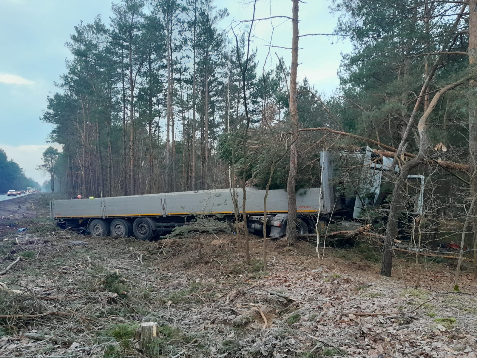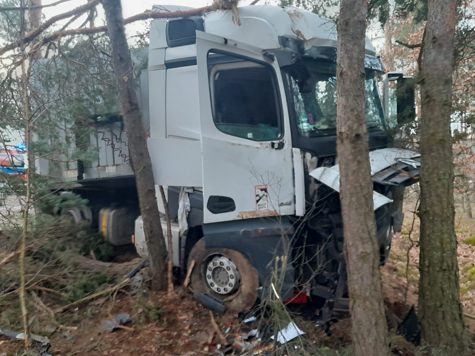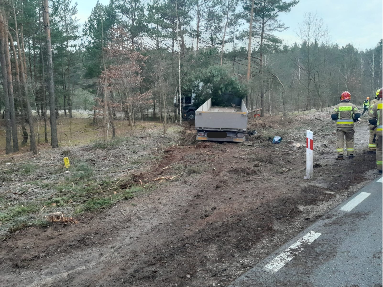 z drogi do lasu. Kierujący ciężarówką znajdował się pod opieką ZRM. Działania straży