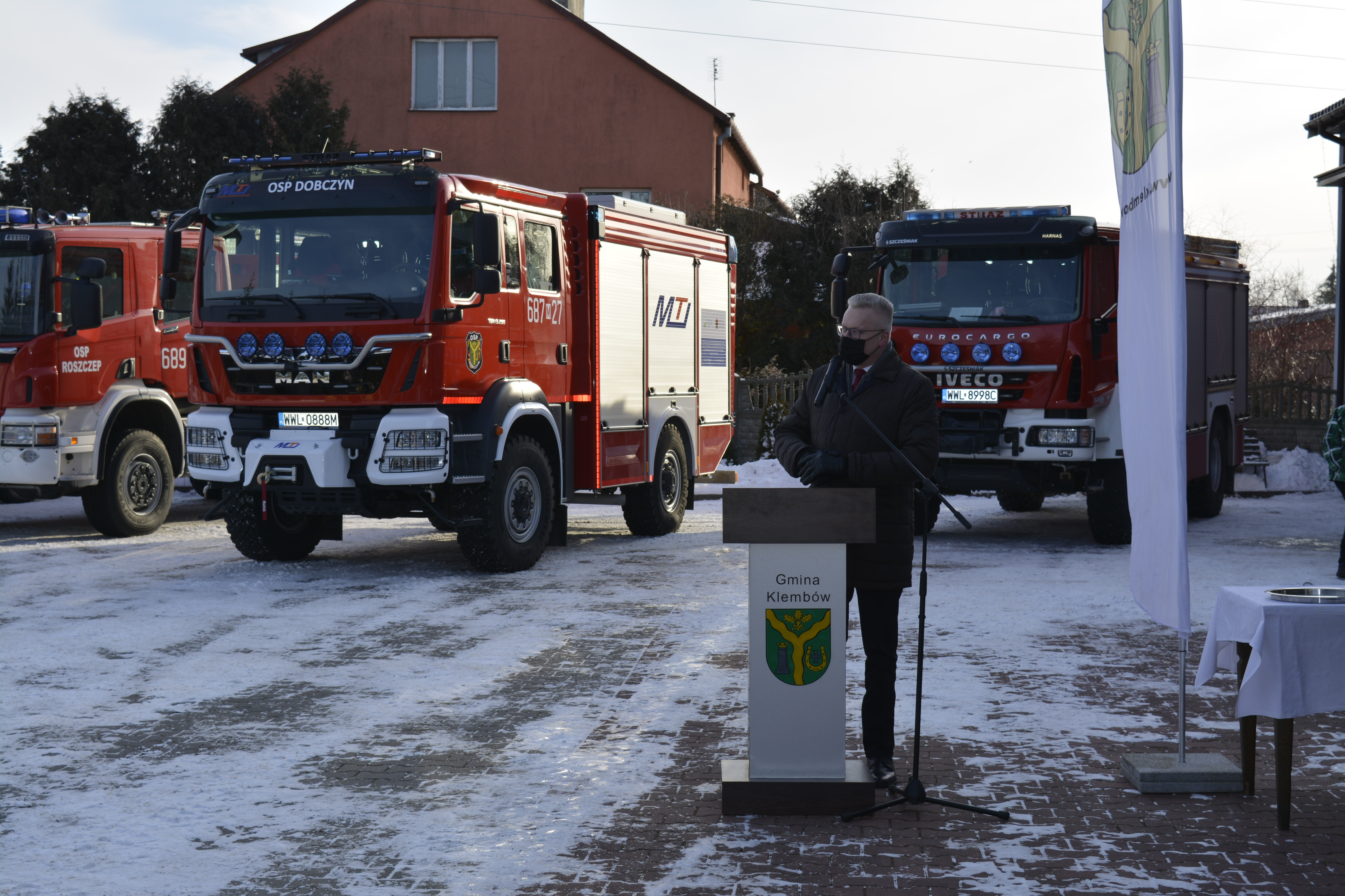 Wręczenia dokumentów i kluczyków do średniego samochodu ratowniczo-gaśniczego dokonali wspólnie st. bryg. Wisław Drosio Z-ca Komendanta Powiatowego PSP w Wołominie oraz Rafał Mathiak Wójt Gminy Klembów. Kluczyki do nowego samochodu wręczono Prezesowi OSP, po czym nastąpiła prezentacja nowego pojazdu, a następnie jego poświęcenie, którego dokonał Kapelan Powiatowy - ks. Piotr Połomski.