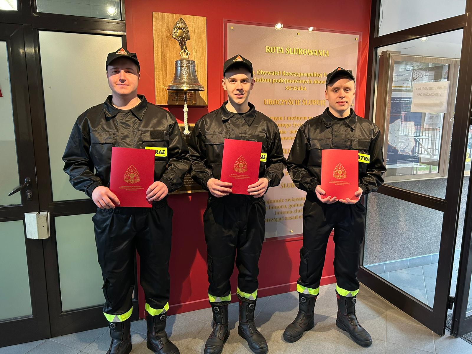 Nowi strażacy będą pełnić służbę w Jednostce Ratowniczo-Gaśniczej PSP w Wołominie.