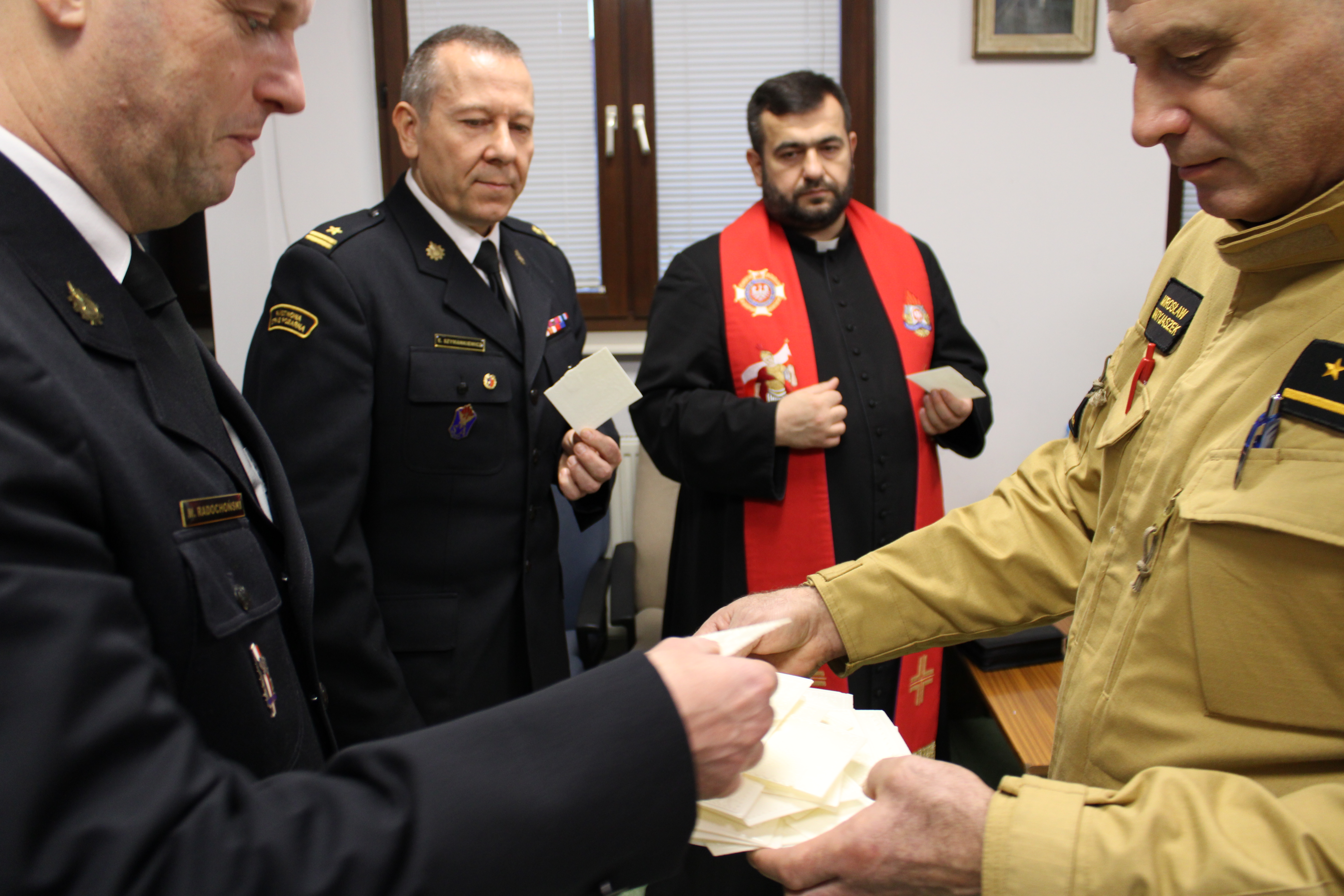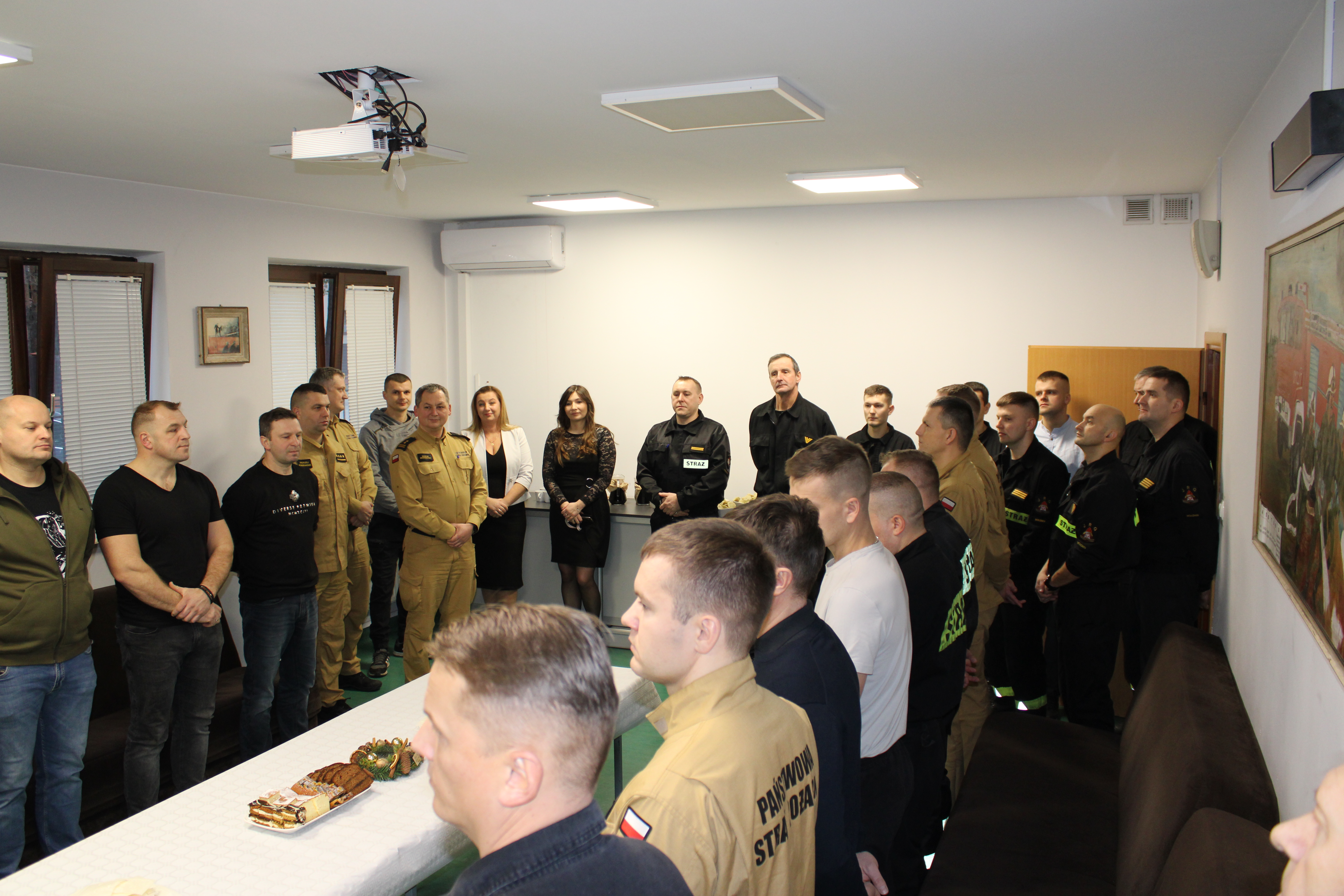 Na wstępie Komendant Powiatowy PSP w Wołominie mł. bryg Edward Szymankiewicz wraz ze swoim zastępcą podziękowali strażakom JRG Wołomin oraz KP PSP za całoroczny trud niesienia pomocy bliźniemu. Ponadto Komendanci złożyli życzenia świąteczne i noworoczne dla wszystkich, ze szczególnym uwzględnieniem strażaków pełniących służbę w nadchodzące święta i "Sylwestra". Ksiądz kapelan wraz ze strażakami odmówił modlitwę oraz wspólnie odśpiewano kolędę. Następnie strażacy przełamali się opłatkiem i spożyli przygotowany posiłek.