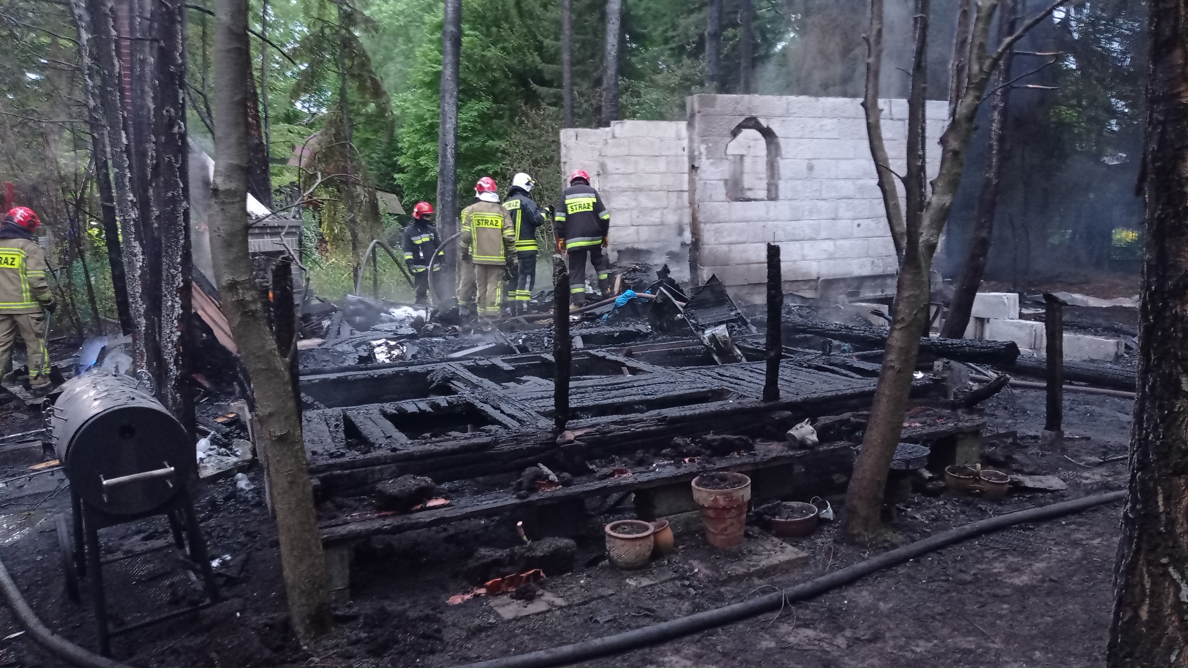 W chwili przybycia pierwszych zastępów pożarem objęty był cały budynek letniskowy. Działania strażaków polegały na zabezpieczeniu miejsca zdarzenia, następnie podano dwa prądy gaśnicze w celu ugaszenia pożaru. Po stłumieniu płomieni strażacy znaleźli wewnątrz budynku poszkodowana kobietą. Niestety, obecny na miejscu zdarzenia ratownik medyczny ZRM rozpoznał zgon.