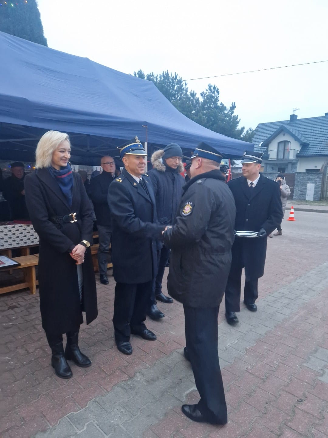 Razem z Komendantem Powiatowym na uroczystości obecni byli przedstawiciele władz samorządowych oraz Prezes Zarządu Oddziału Powiatowego ZOSP RP w Wołominie dh Paweł Bednarczyk.