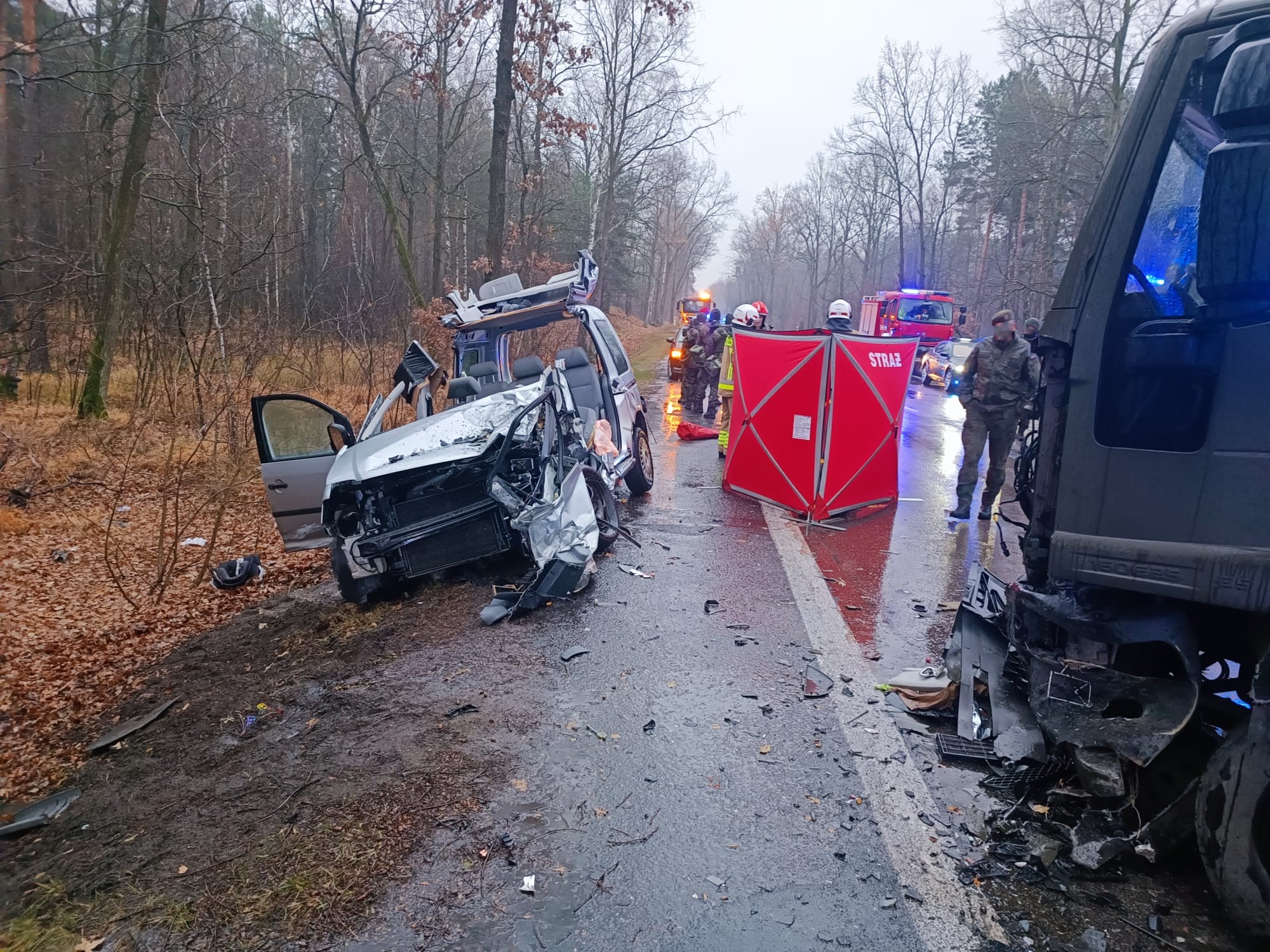 Po przybyciu na miejsce zdarzenia pierwszych zastępów ustalono, że w wypadku brały udział trzy samochody osobowe oraz ciężarówka. W jednym pojeździe przebywał nieprzytomny mężczyzna, dostęp do którego strażacy musieli wykonać narzędziami hydraulicznymi. Ciężarówką podróżowało 25 żołnierzy, 8 z nich zostało rannych. Podróżujący pozostałymi pojazdami nie zgłaszali żadnych dolegliwości. Pomocy medycznej poszkodowanym udzielali ratownicy medyczni z LPR oraz ZRM.