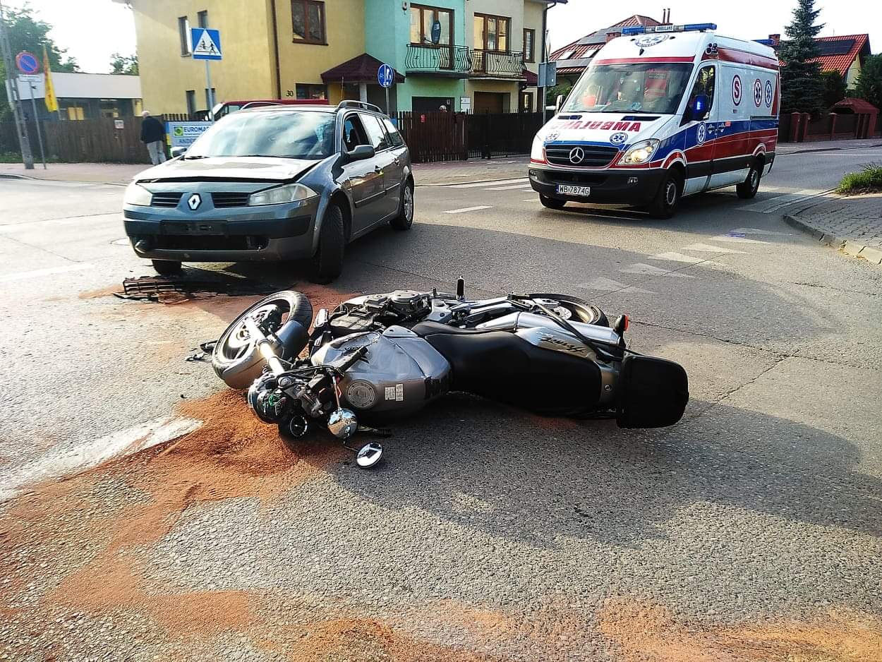 Na miejscu strażacy zastali samochód osobowy i motocykl po zderzeniu w obrębie skrzyżowania dróg. Działania straży pożarnej poległy na zabezpieczeniu miejsca zdarzenia i kierowaniu ruchem na drodze do czasu przybycia policji. W wyniku tego zdarzenia został poszkodowany motocyklista, który z lekkimi obrażeniami ciała został zabrany do szpitala. Po zakończeniu czynności przez policję usunięto z jezdni pozostałości po zderzeniu.