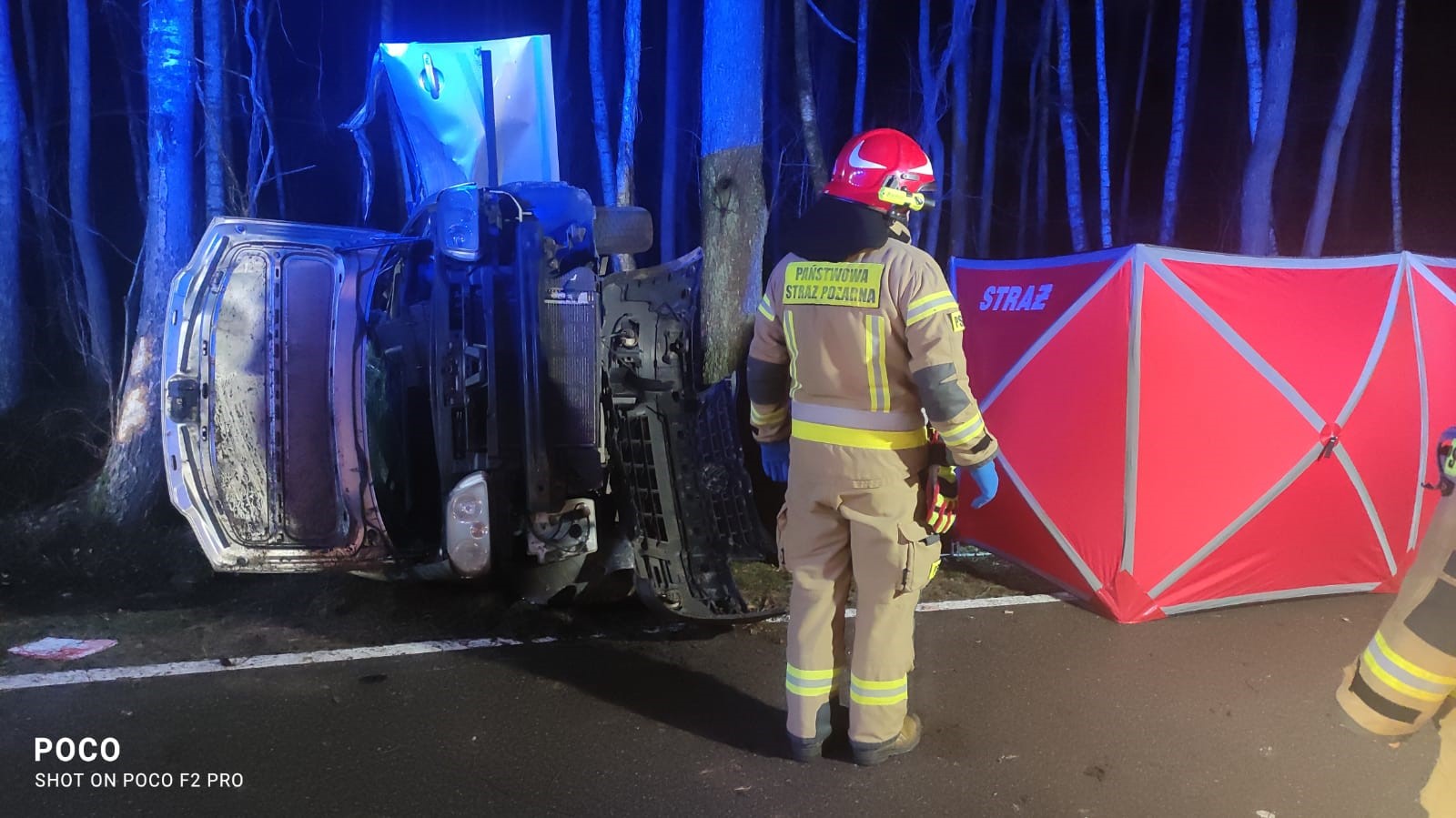 Do zdarzenia doszło ok. godz. 17:10. Przybyłe na miejsce jednostki straży pożarnej zastały zdarzenie drogowe z udziałem jednego samochodu osobowego, który uderzył w przydrożne drzewo. Pojazdem podróżowały dwie osoby dorosłe (kobieta i mężczyzna) oraz jedno dziecko. W skutek zdarzenia kierujący pojazdem 36-letni mężczyzna poniósł śmierć na miejscu. Pozostałe osoby podróżujące samochodem zostały zabrane do szpitali na obserwację. Droga powiatowa na kilka godzin została całkowicie zablokowana. Po zakończeniu przez policję czynności dochodzeniowo-śledczych pojazd został usunięty i przywrócono ruch na drodze.