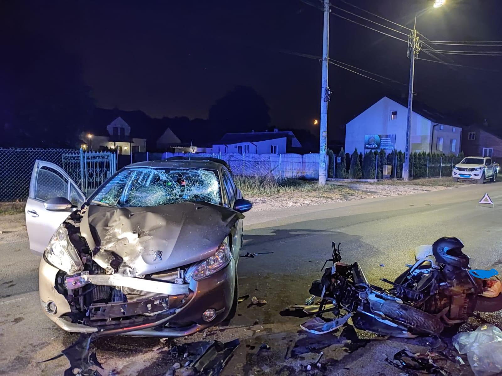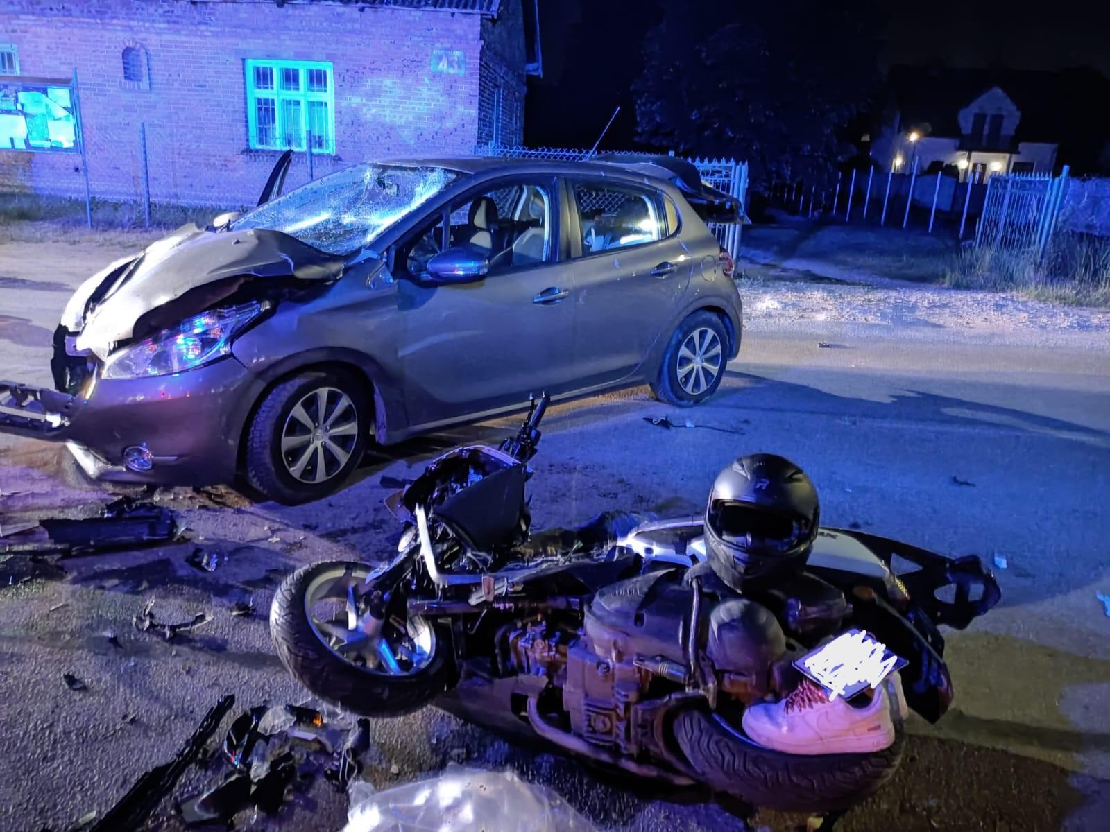Po przybyciu na miejsce zdarzenia zastępów straży stwierdzono, że doszło do zderzenia czołowego skutera oraz samochodu osobowego, jedna osoba została poszkodowana. ZRM przybyły przed jednostkami straży pożarnej udzielał pomocy medycznej kierowcy jednośladu.
