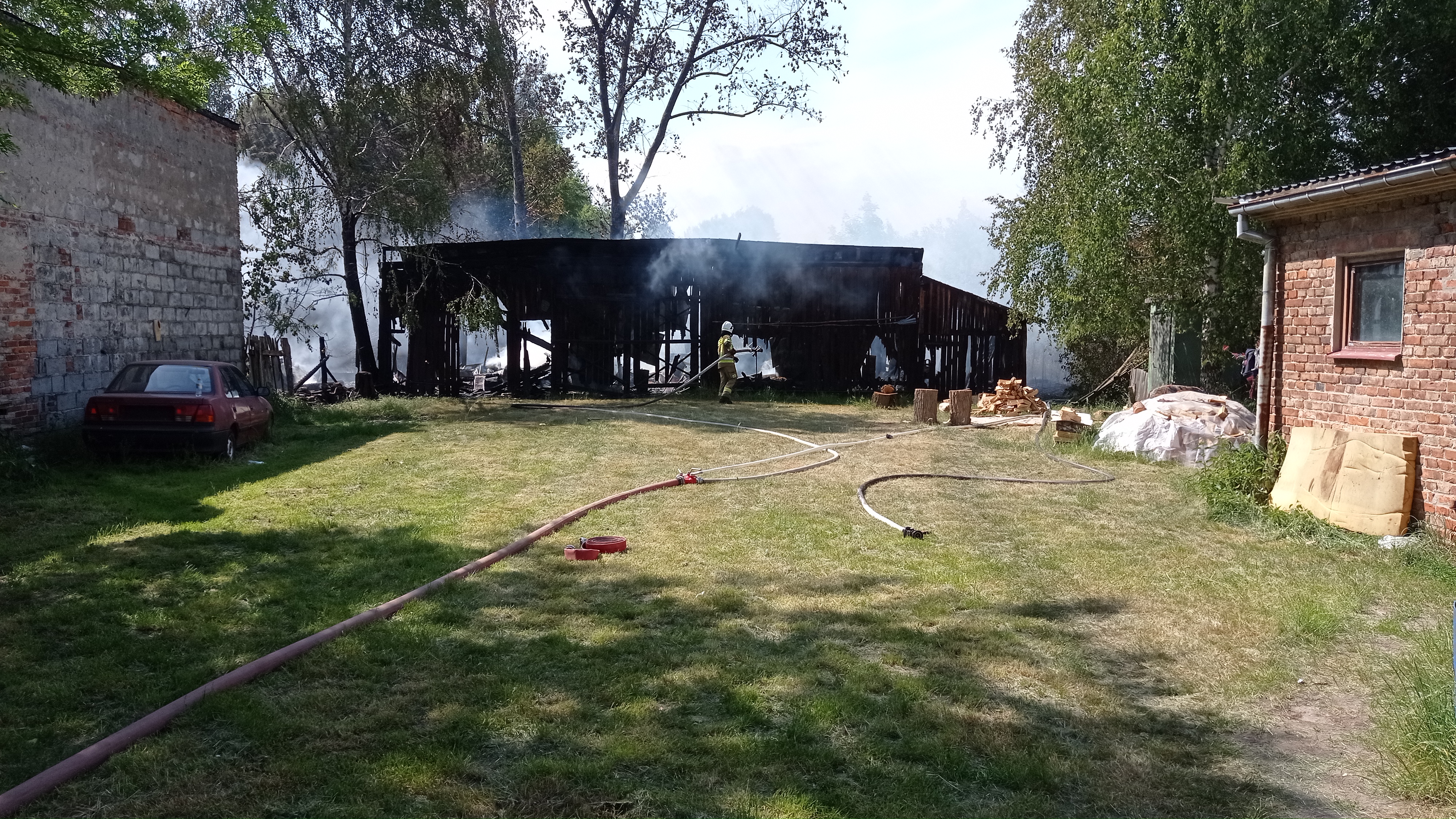 W dniach 5-7 czerwca 2023 roku wołomińscy strażacy 23 razy gasili pożary lasów oraz traw na nieużytkach. W wyniku jednego z takich pożarów spaleniu uległy dwa budynki gospodarcze w m. Helenów gm. Wołomin.
