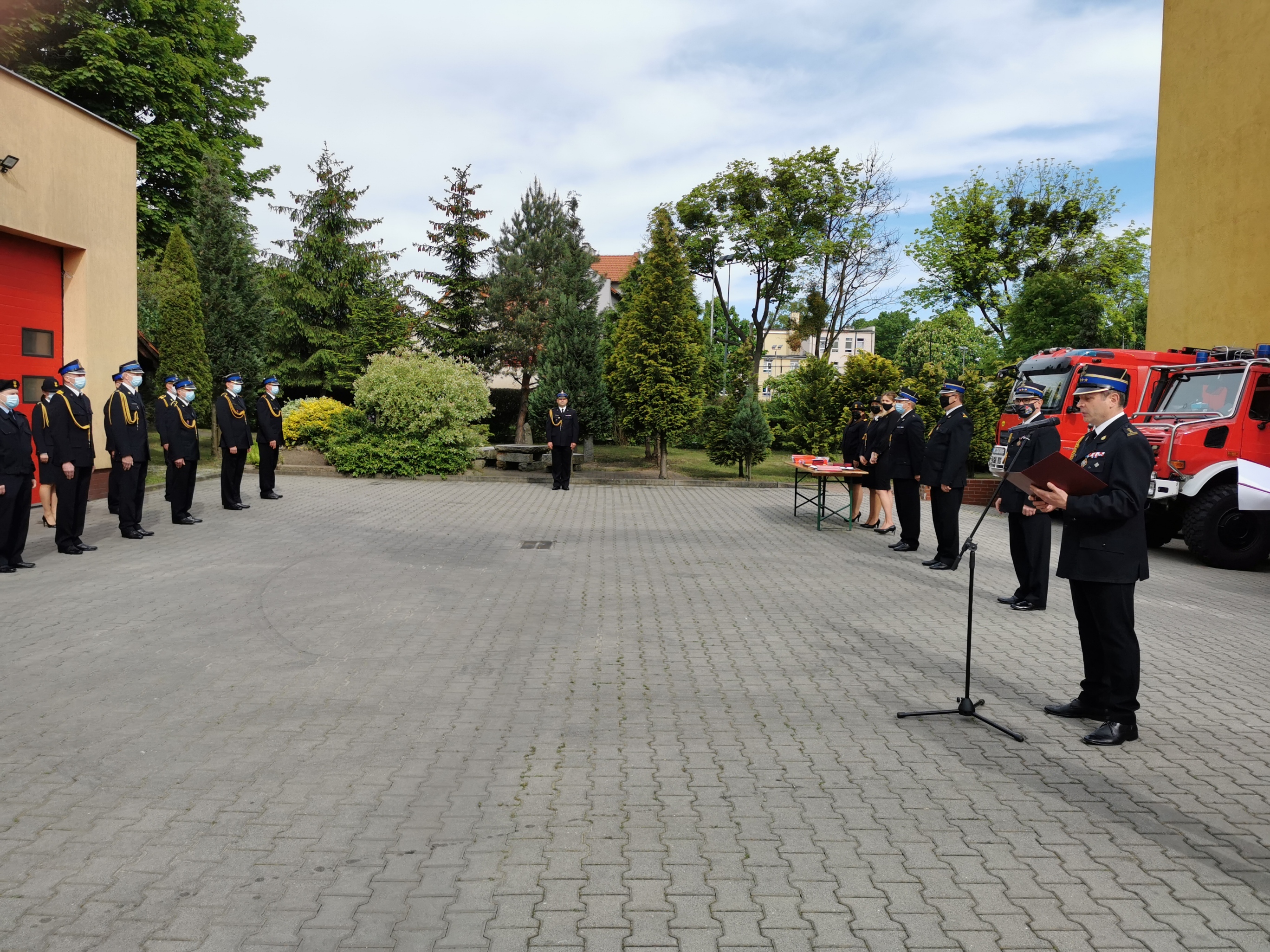 Po wręczeniu awansów, odznaczeń oraz wyróżnień zastępca dolnośląskiego komendanta wojewódzkiego PSP we Wrocławiu st. bryg. Piotr Grzyb w swoim wystąpieniu pogratulował odznaczonym, awansowanym i nagrodzonym, a także podziękował wszystkim strażakom z powiatu wołowskiego za włożony trud i poświęcenie podczas prowadzenia działań ratowniczo-gaśniczych oraz za bardzo duże zaangażowanie na rzecz walki z pandemią wirusa SARS-CoV-2.