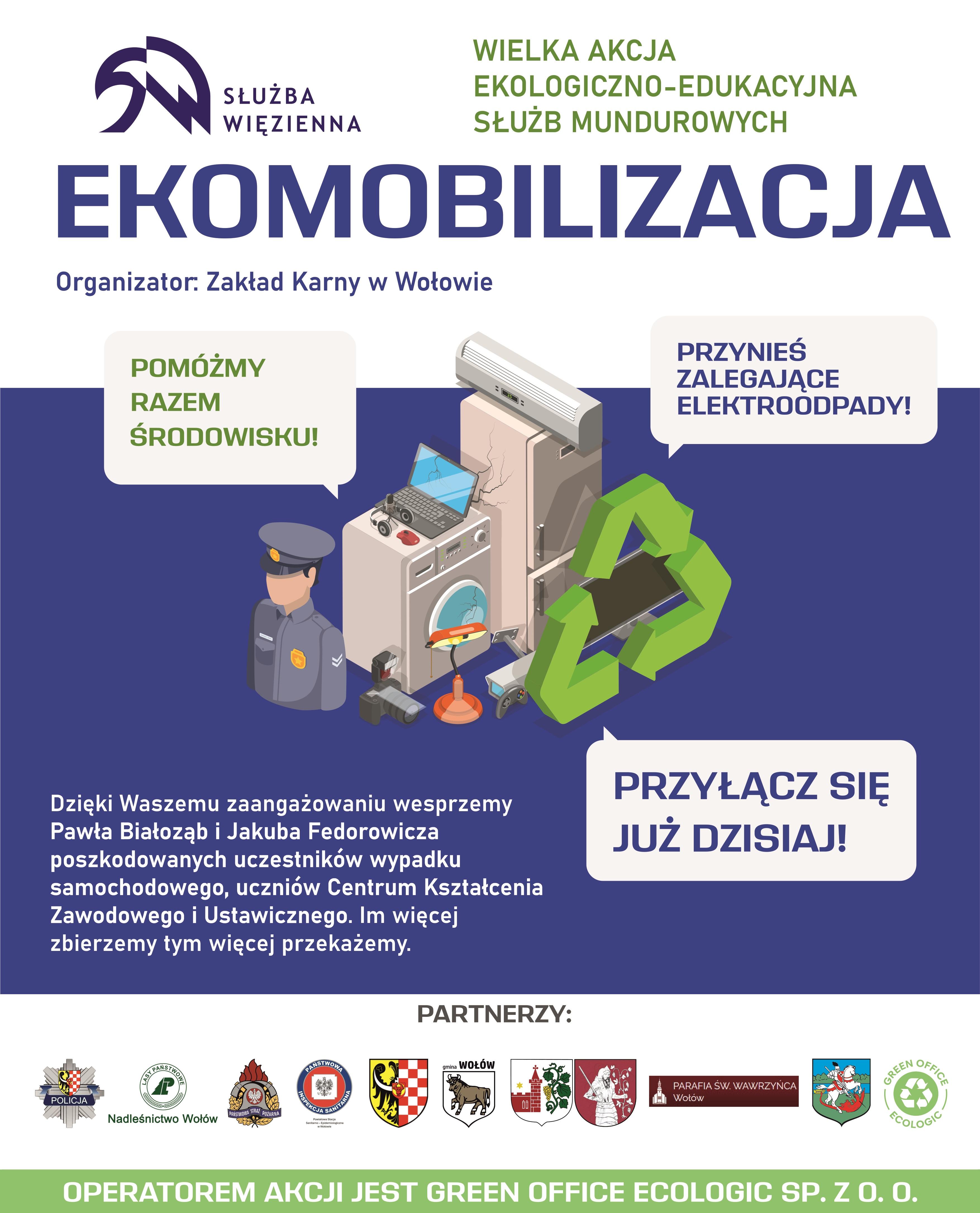 Komenda Powiatowa PSP w Wołowie dołączyła do zbiórki elektroodpadów, którą zorganizował Zakład Karny w Wołowie. Celem zbiórki jest nie tylko troska o środowisko, ale również wsparcie finansowe w leczeniu oraz rehabilitacji dwóch uczniów Centrum Kształcenia Zawodowego i Ustawicznego w Wołowie, którzy zostali poszkodowani w wyniku wypadku drogowego. Zebrane elektrośmieci zostaną odebrane przez firmę Green Office Ecologic Sp. z o. o., która w zamian przekaże środki finansowe na rzecz poszkodowanych.