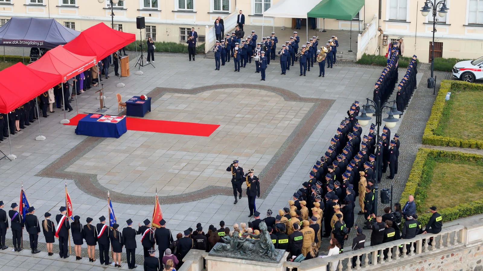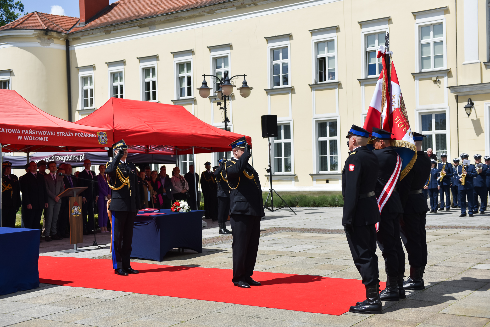 Zgromadzonych na uroczystym apelu w imieniu własnym i współgospodarzy powitał st. bryg. Jarosław Nadwodny, Komendant Powiatowy Państwowej Straży Pożarnej w Wołowie oraz Burmistrz Gminy Brzeg Dolny Ireneusz Fura.